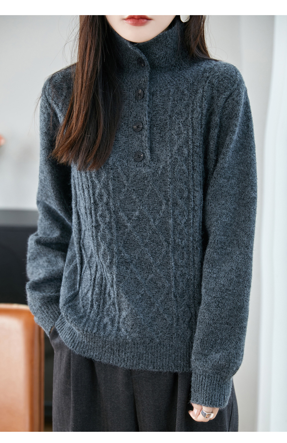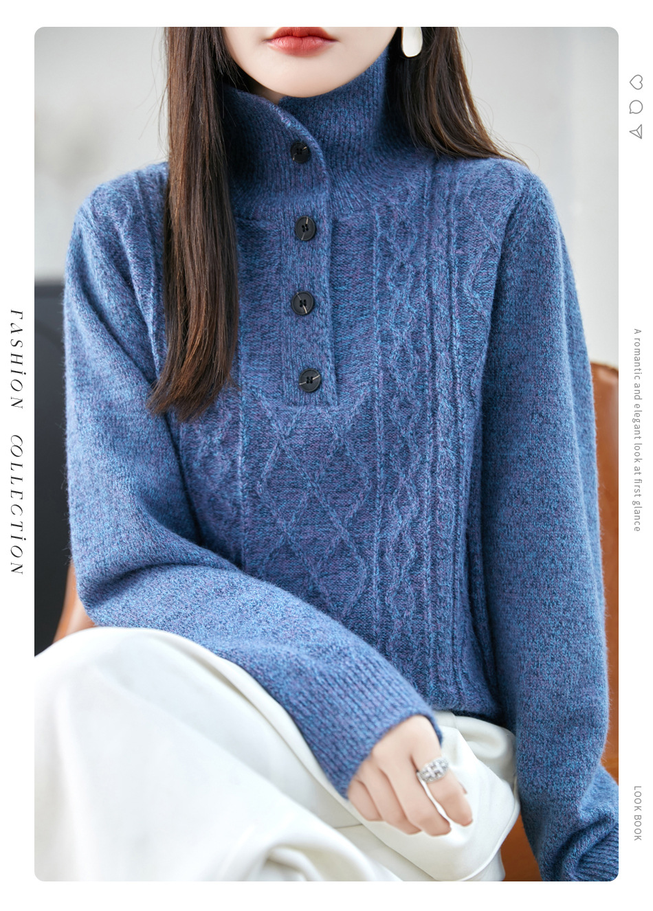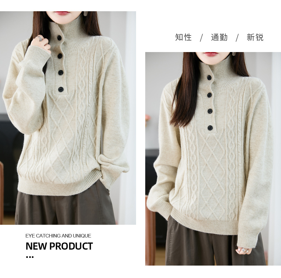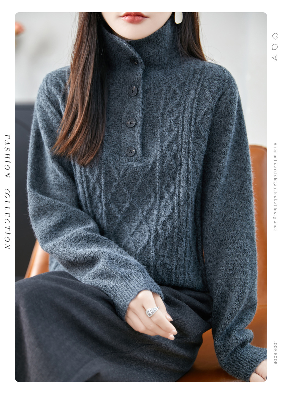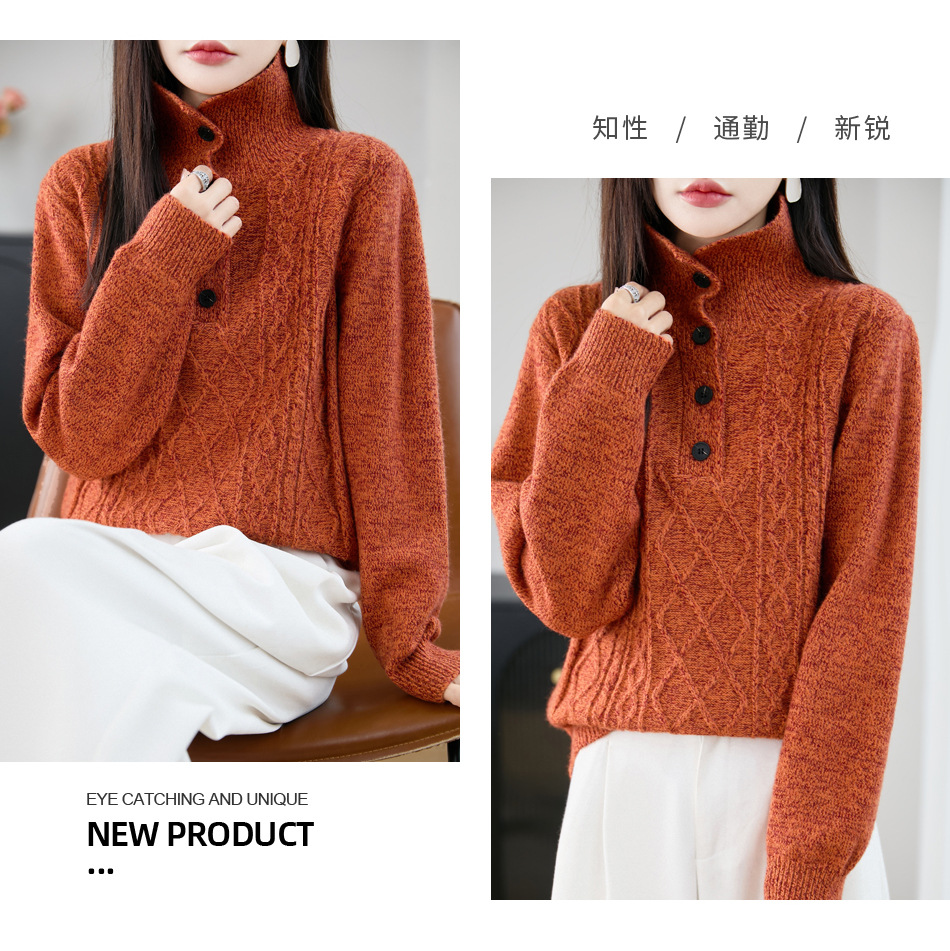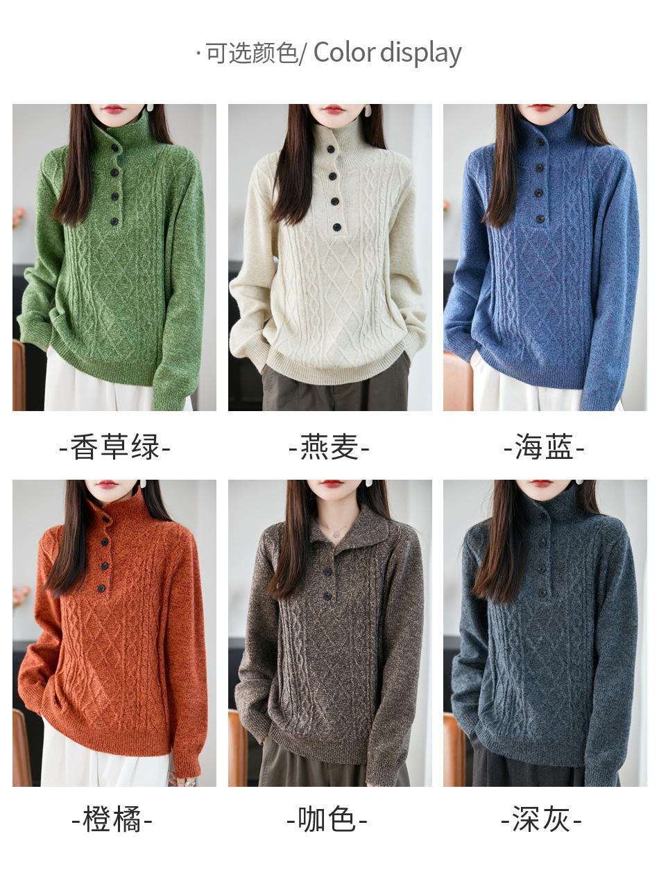 设计感纽扣高领加厚毛衣,外穿复古绞花打底针织衫上衣NJR-2130-52