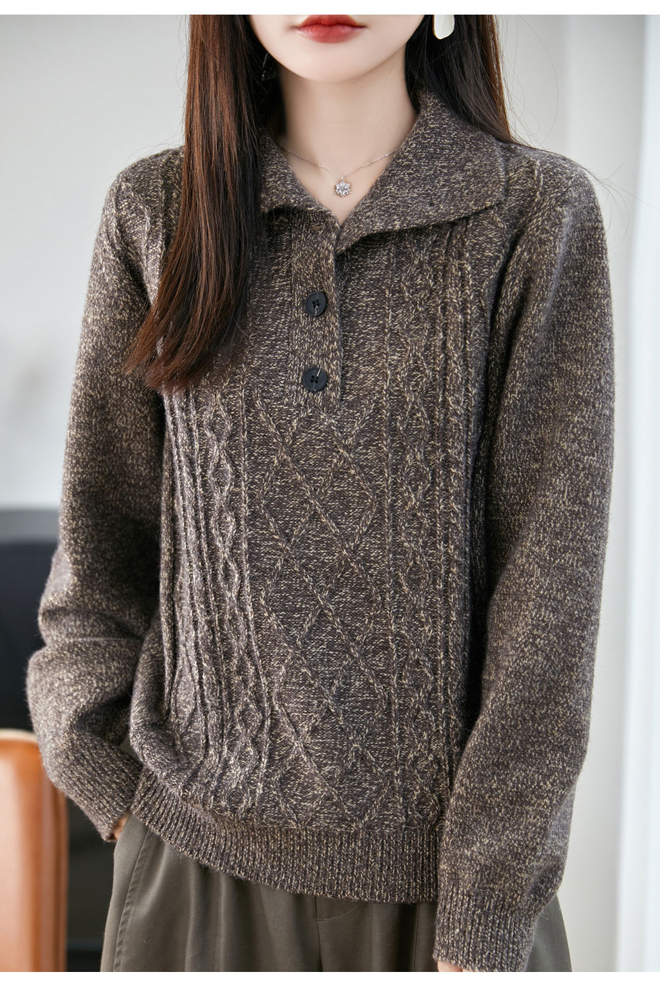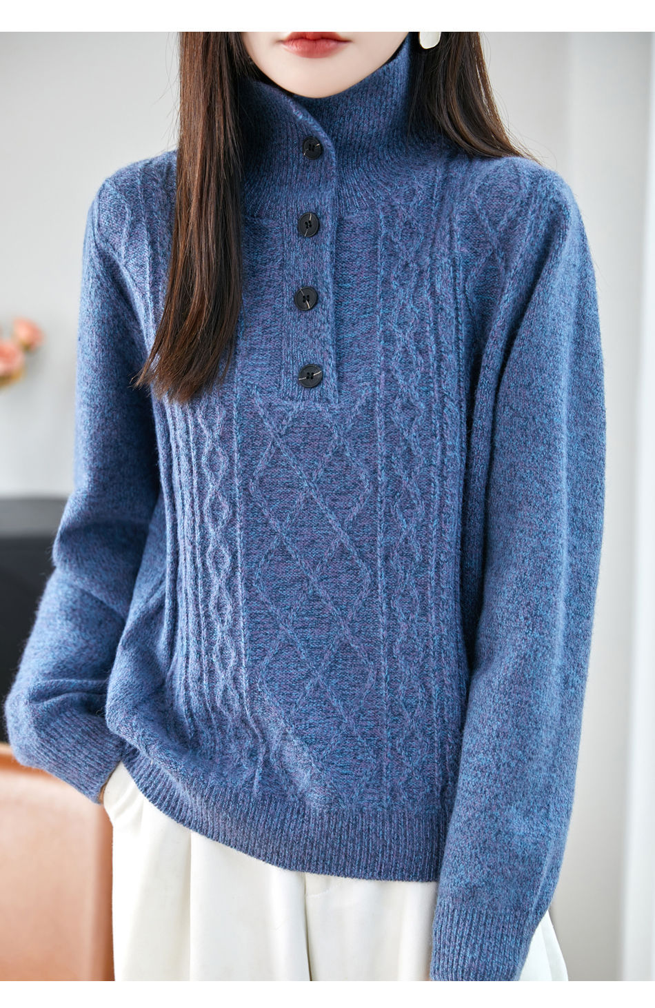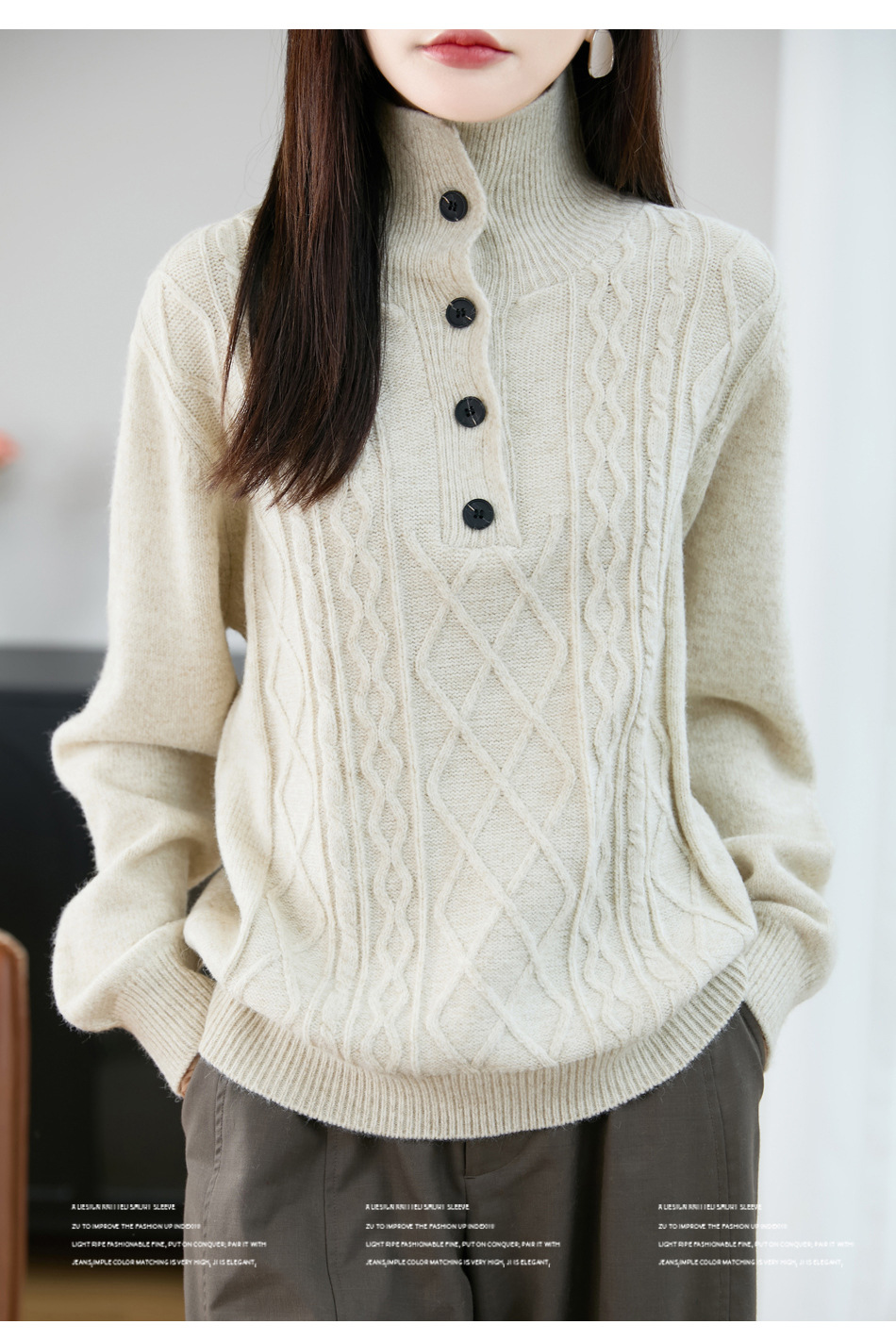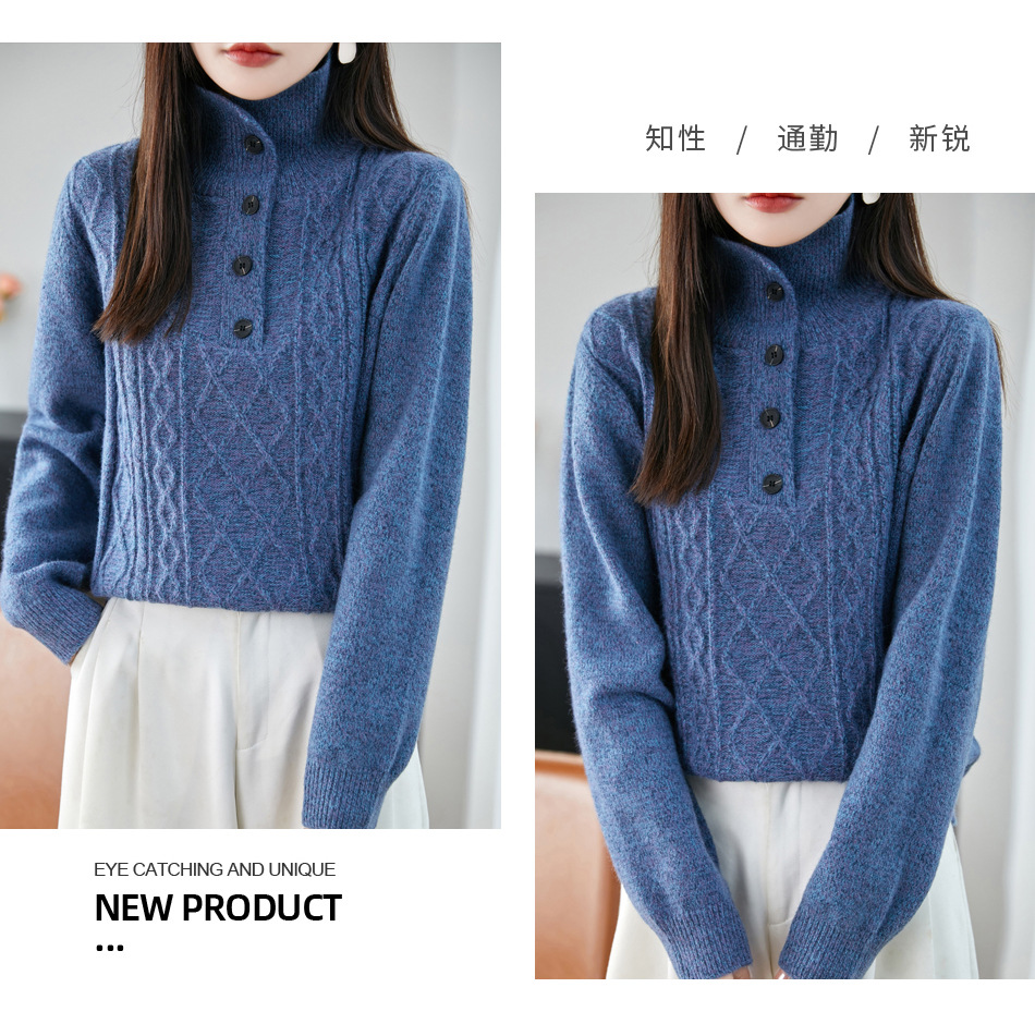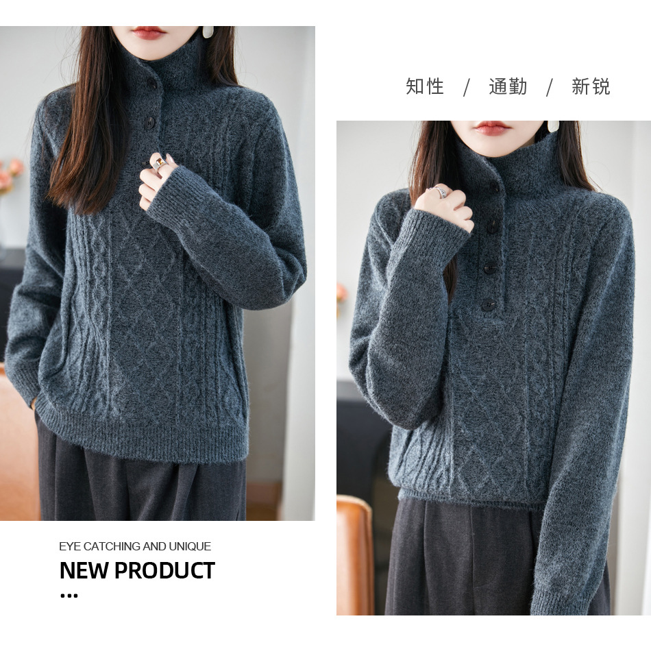设计感纽扣高领加厚毛衣,外穿复古绞花打底针织衫上衣NJR-2130-52