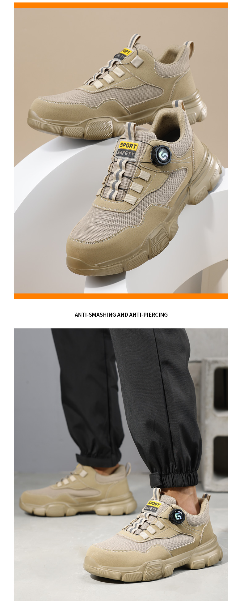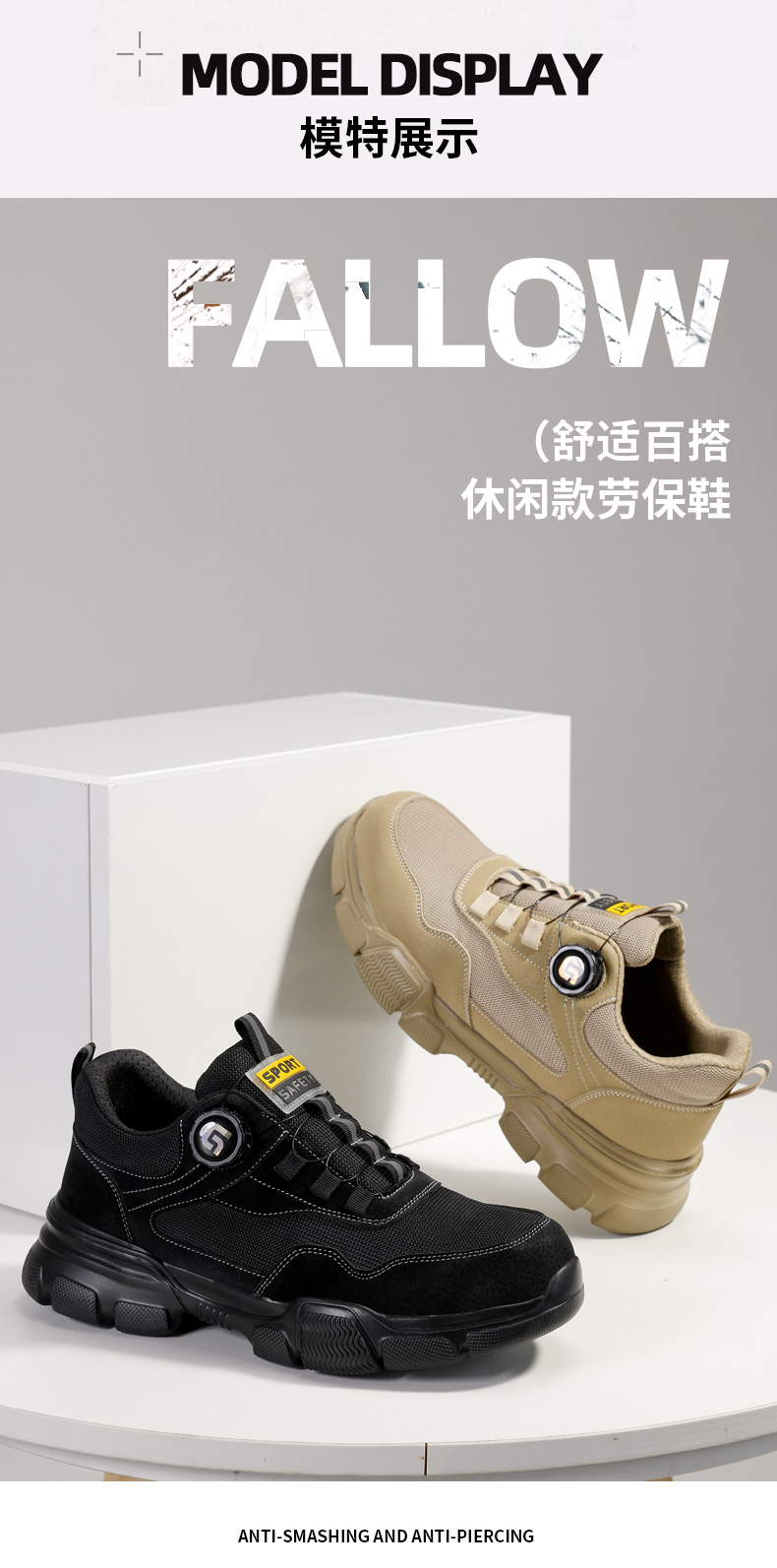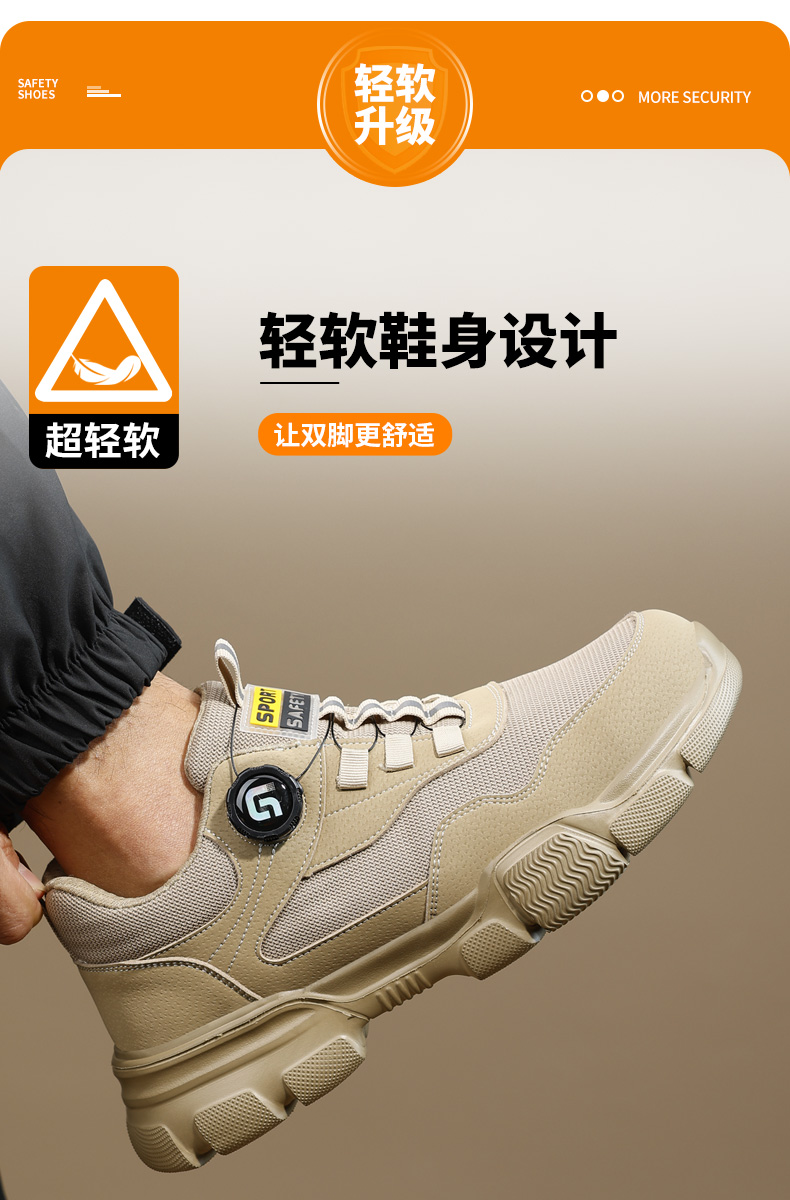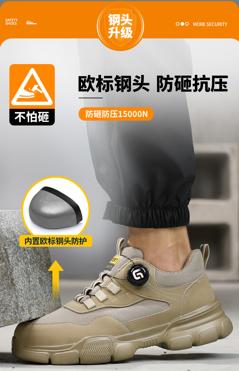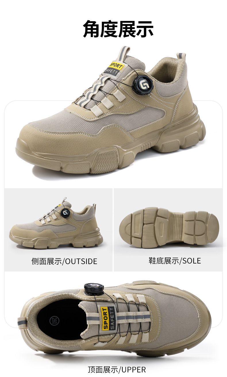 2025新款四季款劳保鞋防砸防刺穿欧标钢包头凯夫拉底橡塑底卡其低帮安全鞋