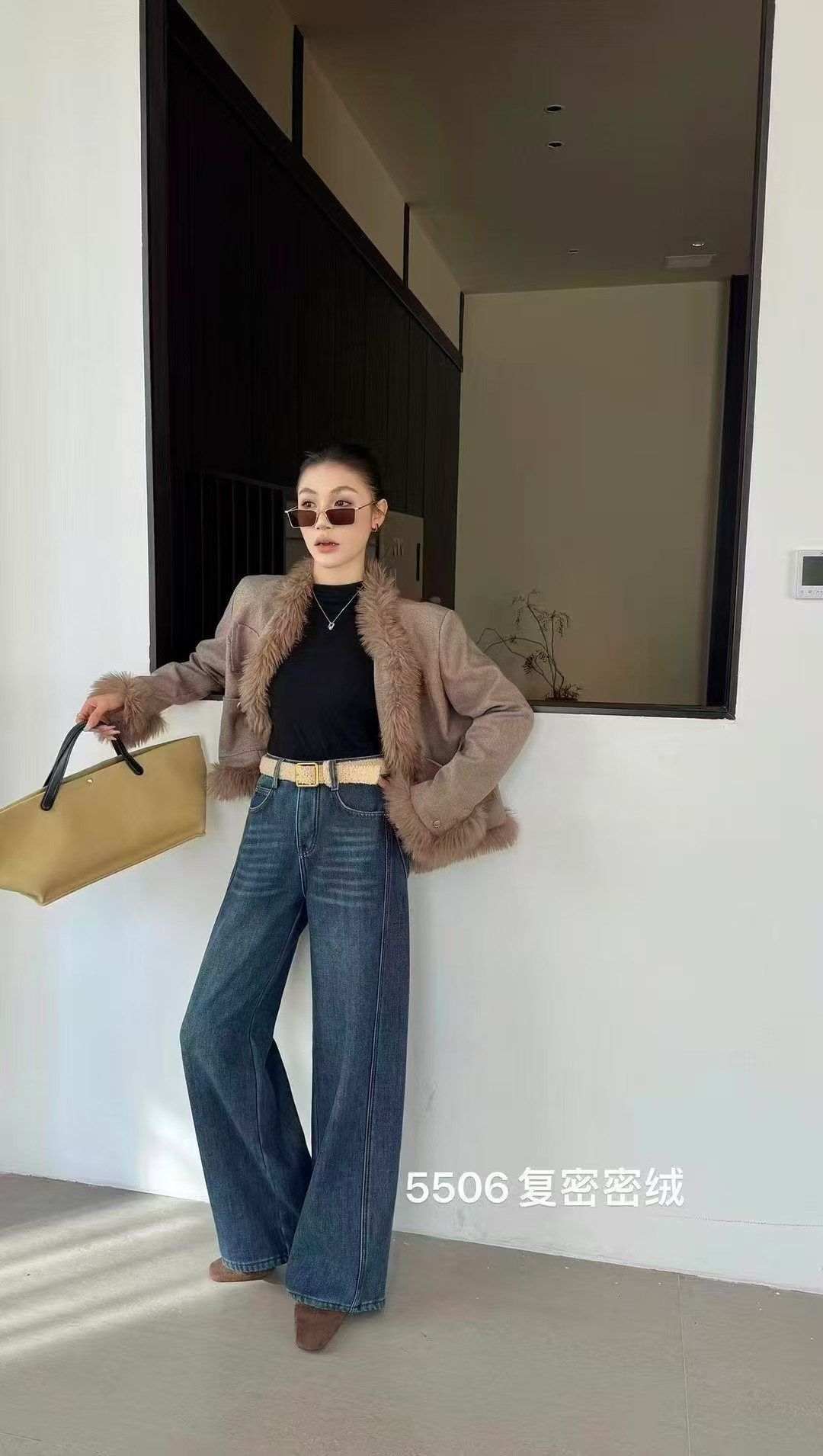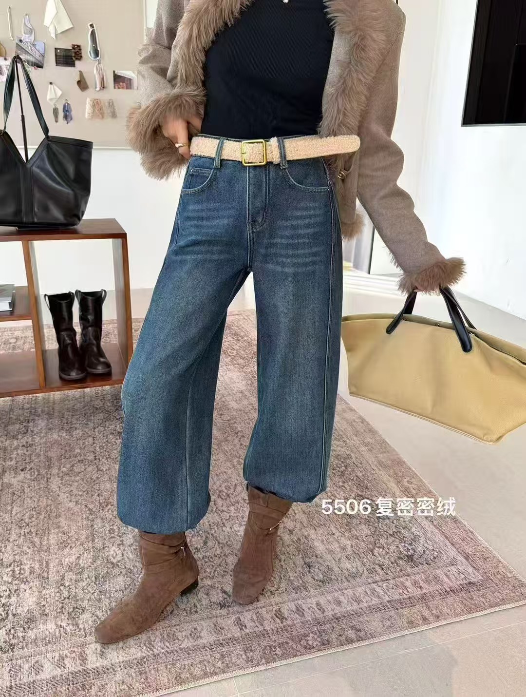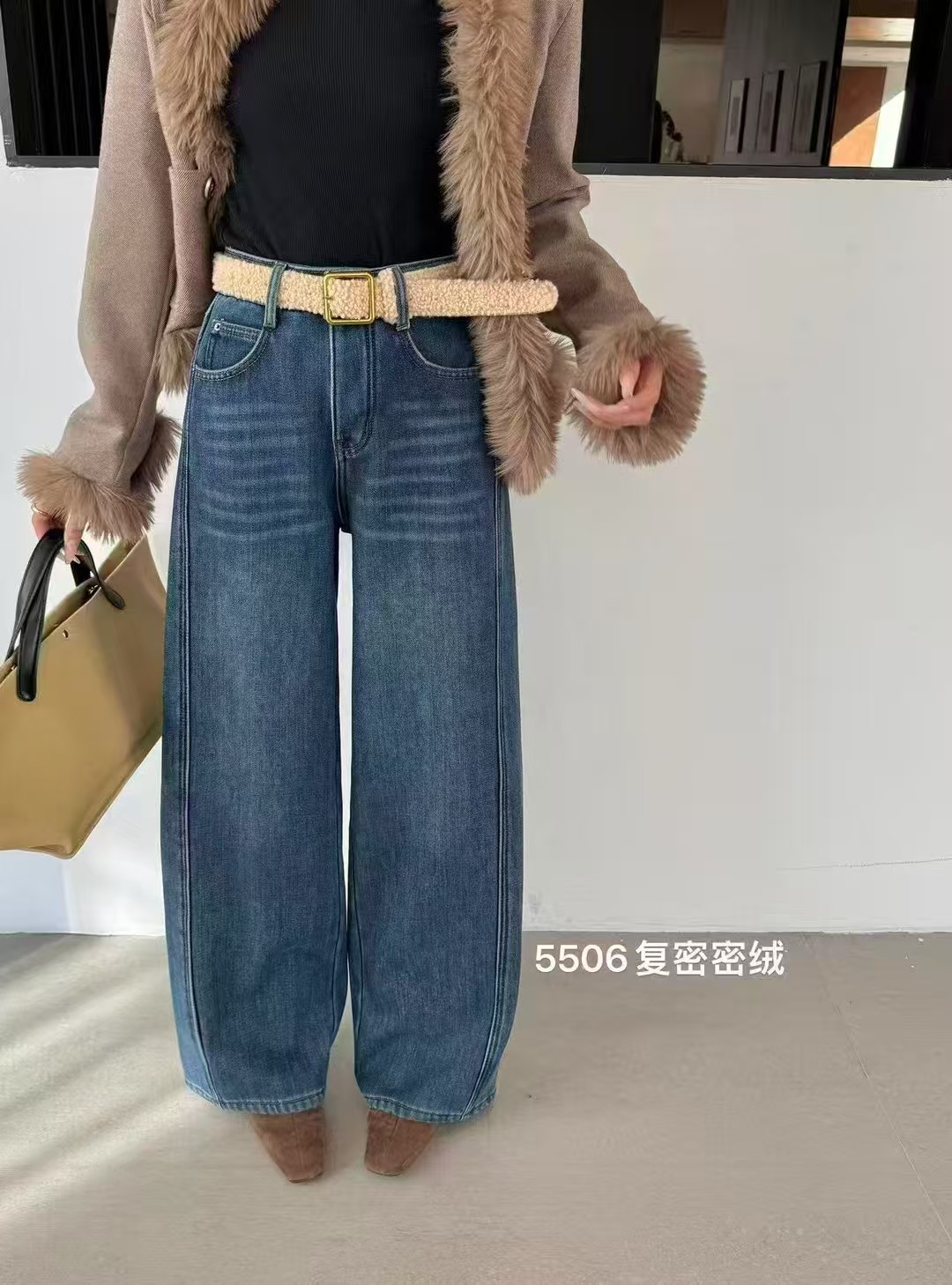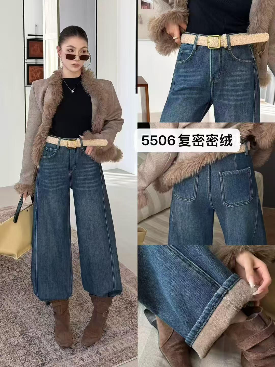 抢购价-不支持退【自营】加绒🔥🔥🔥【爆款牛仔裤】密密绒~5506 欧货蓝色加绒加厚阔腿冬季高腰宽松百搭显瘦弯刀拖地长裤-喜出