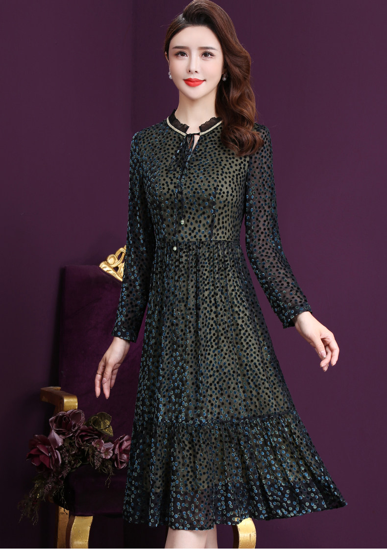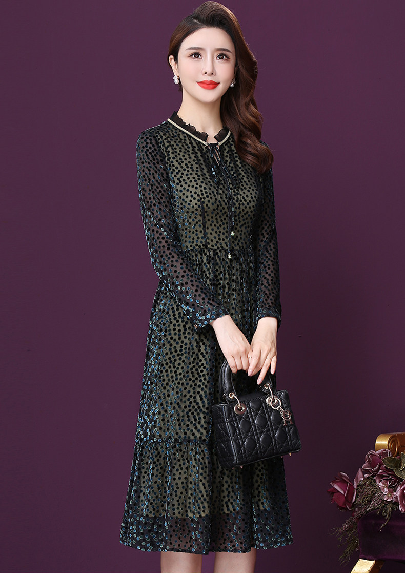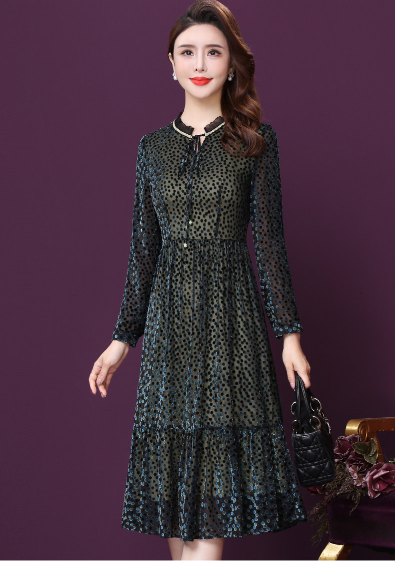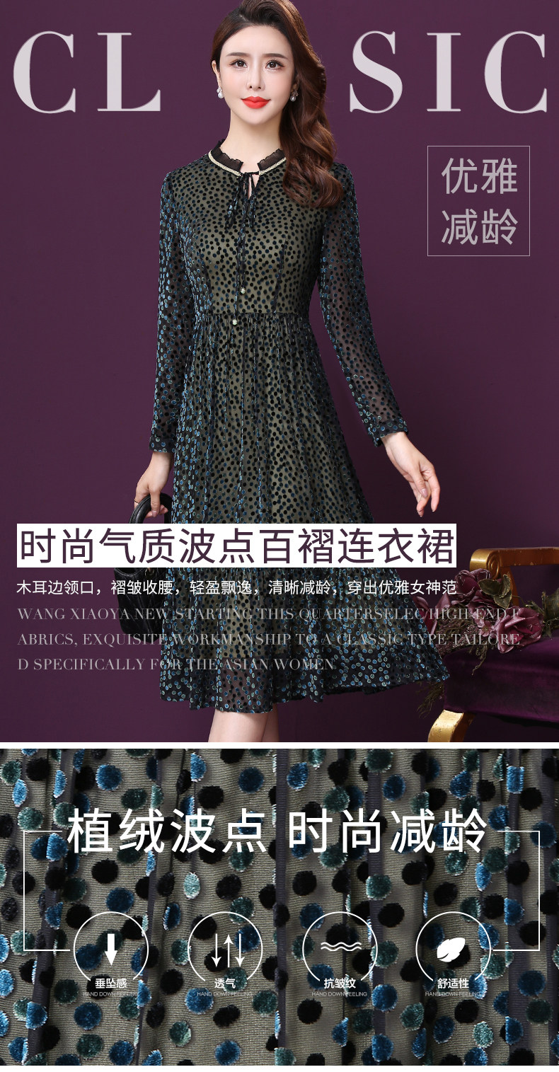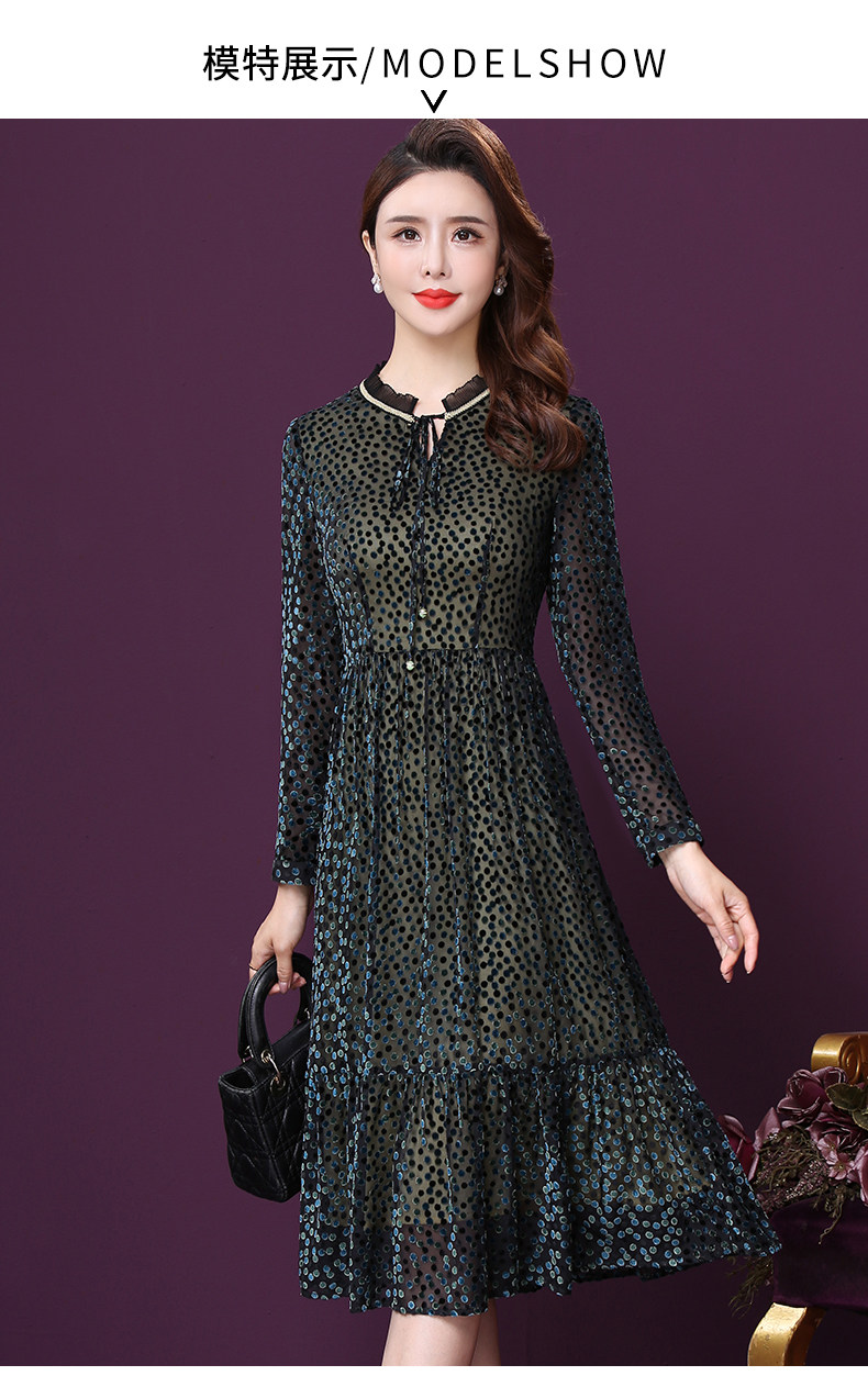WXY-W-JR-1897新款中年妈妈丝绒网纱中长款真丝A字裙