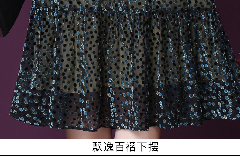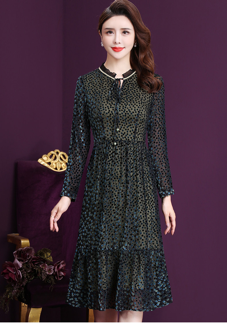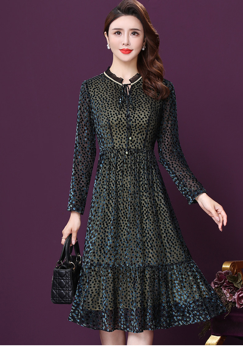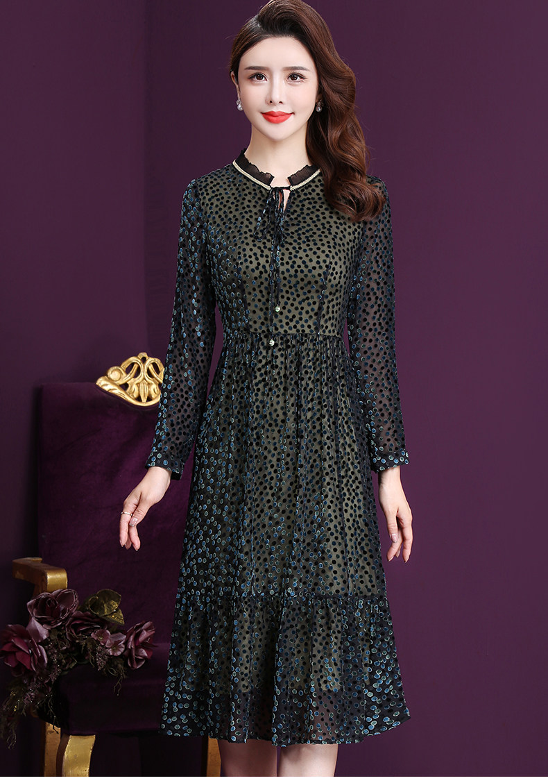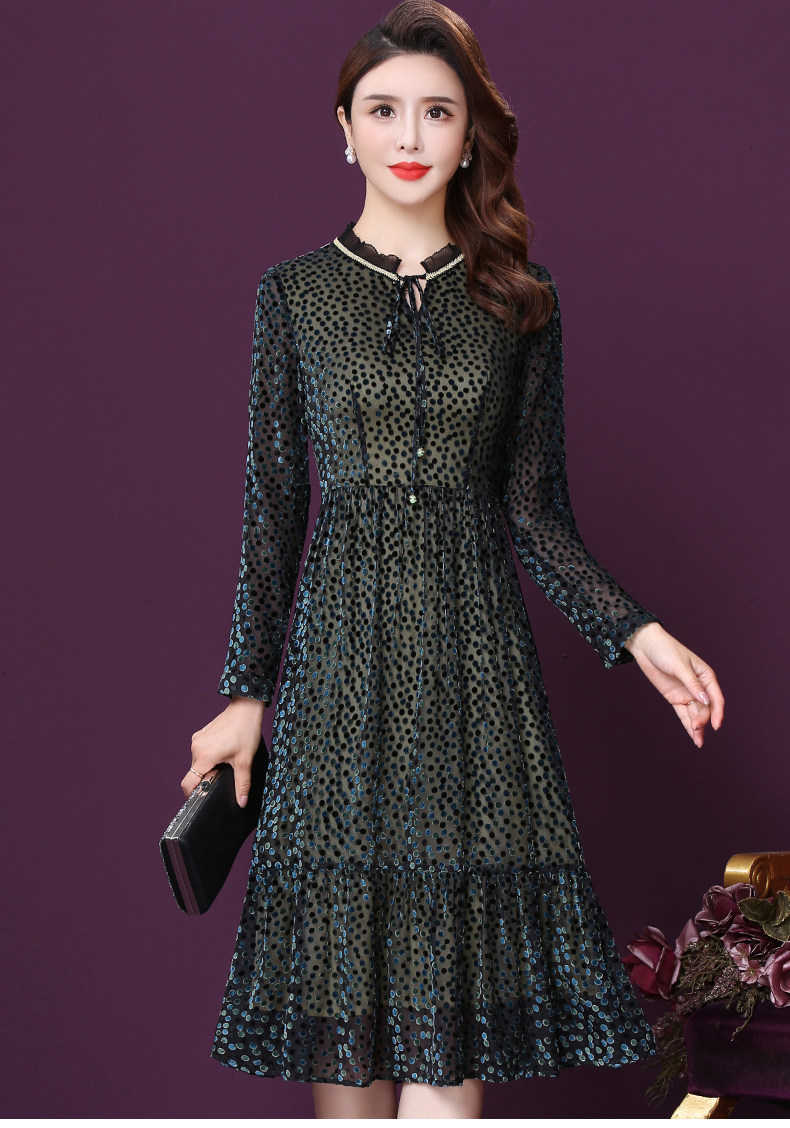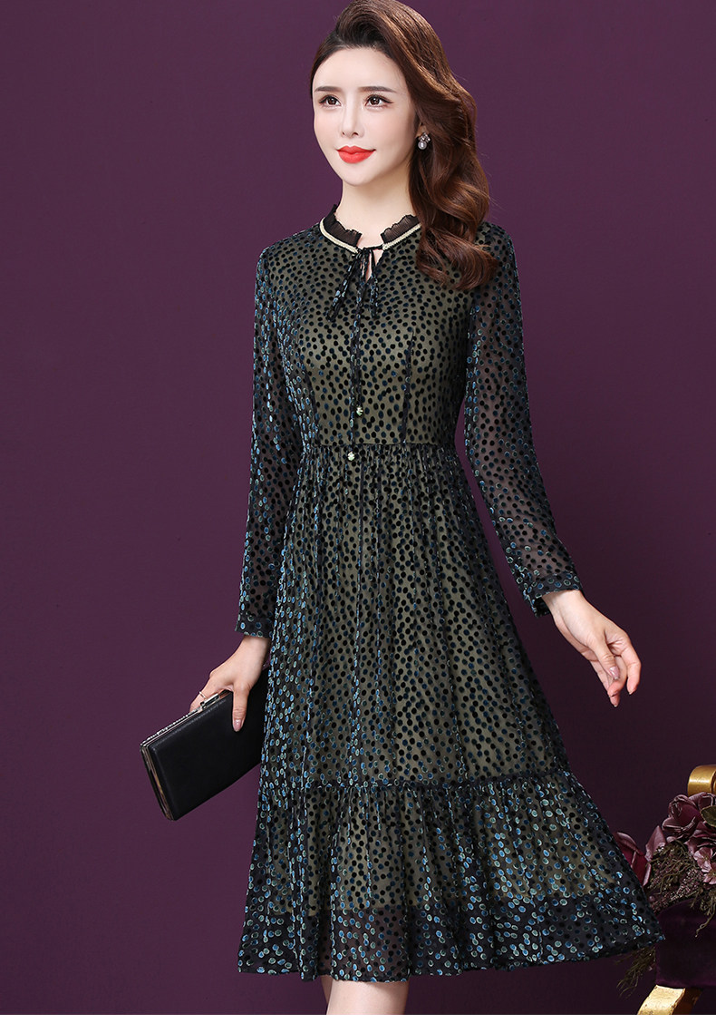 WXY-W-JR-1897新款中年妈妈丝绒网纱中长款真丝A字裙