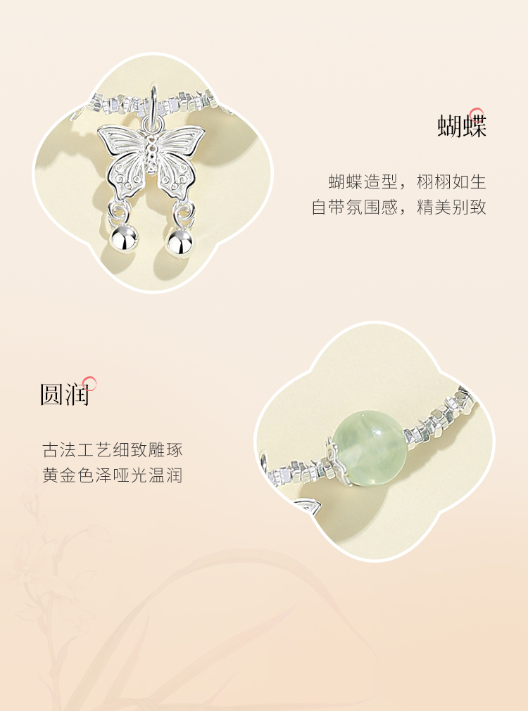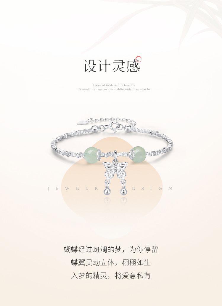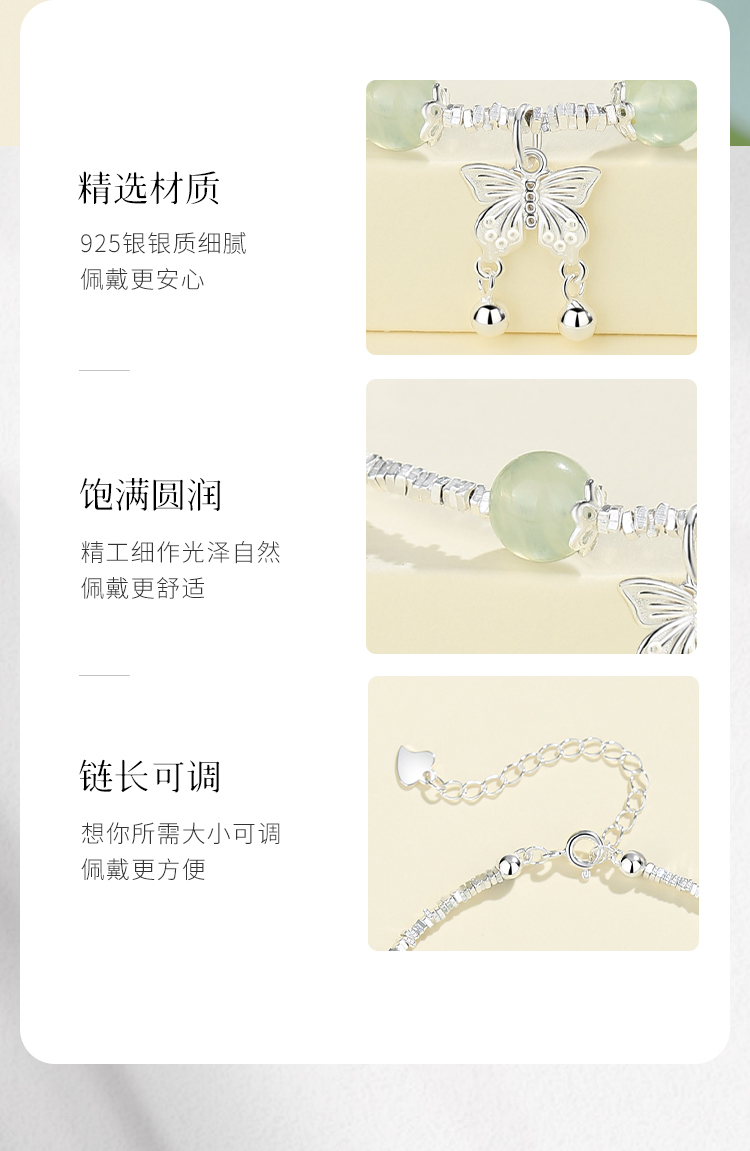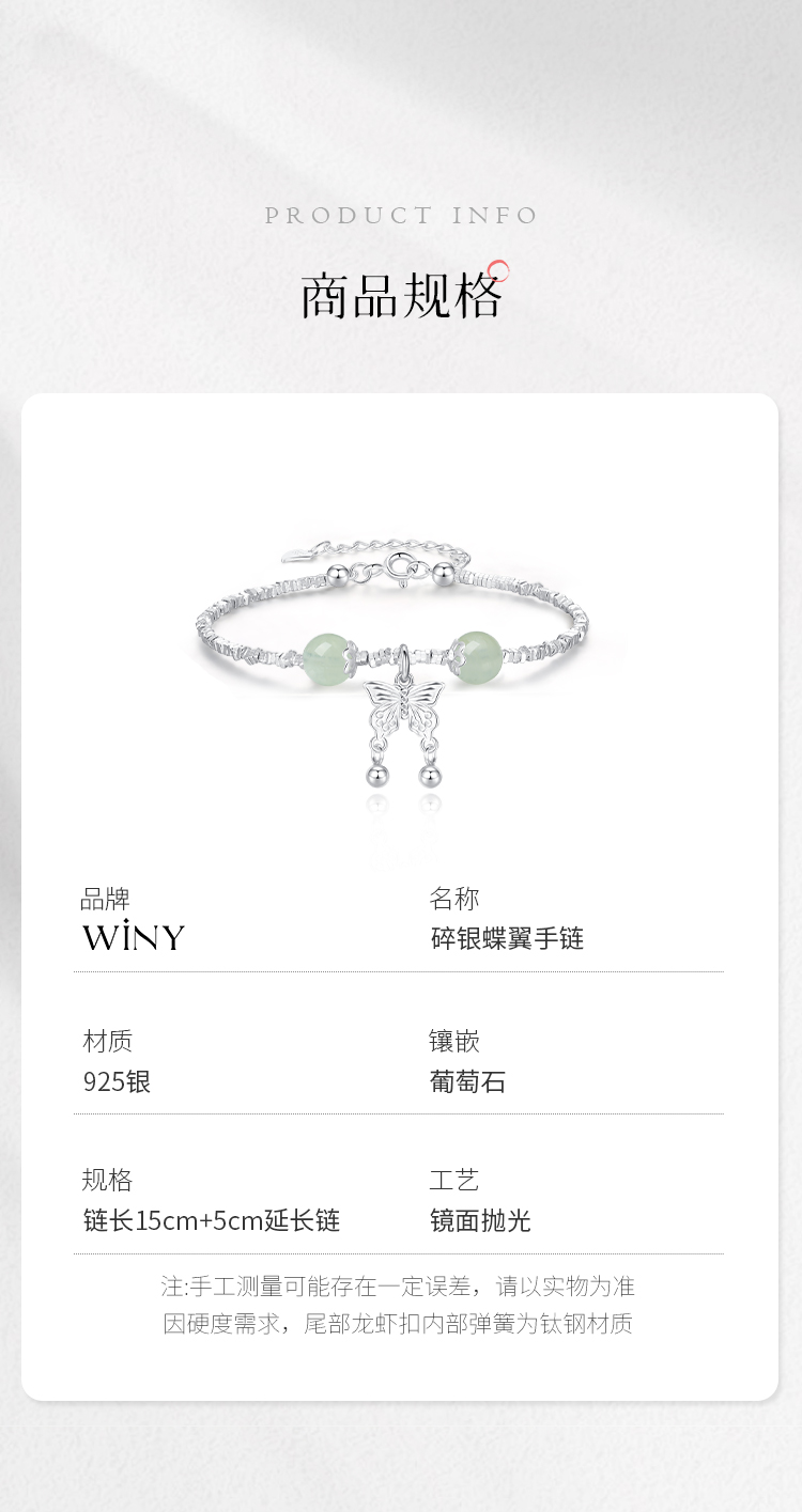 Winy925纯银碎银蝶翼手链送女友闺蜜节日生日礼物