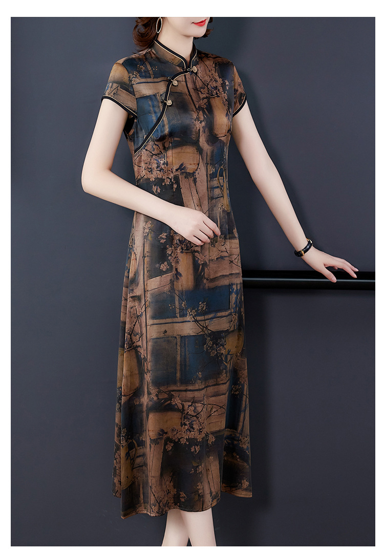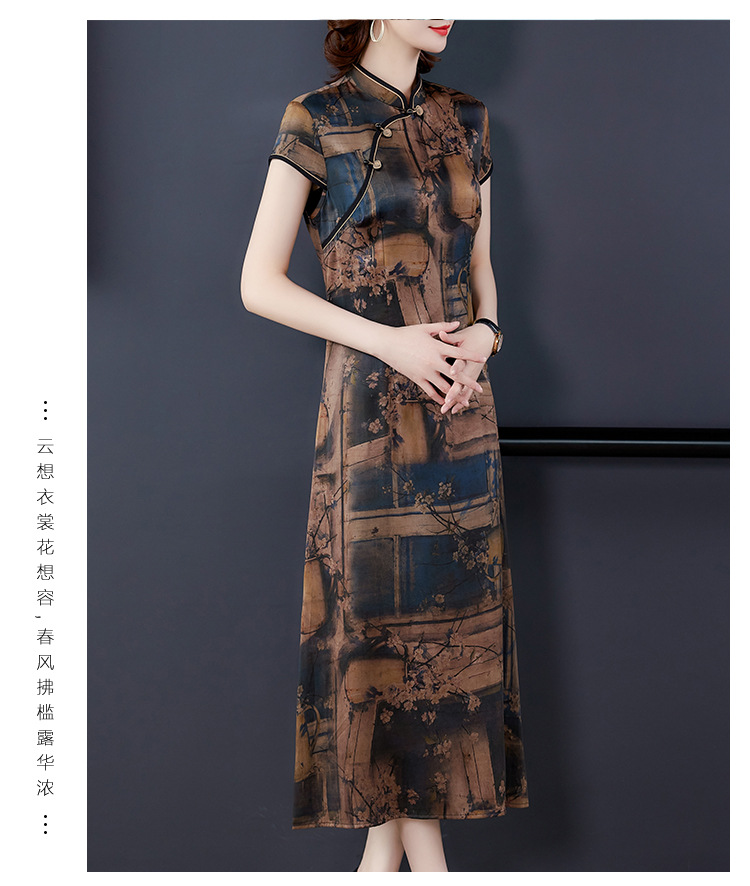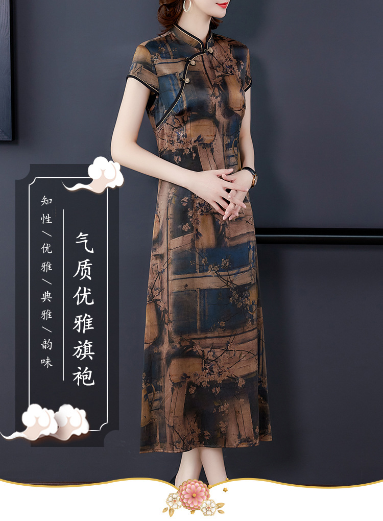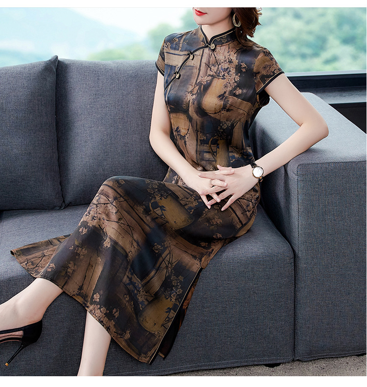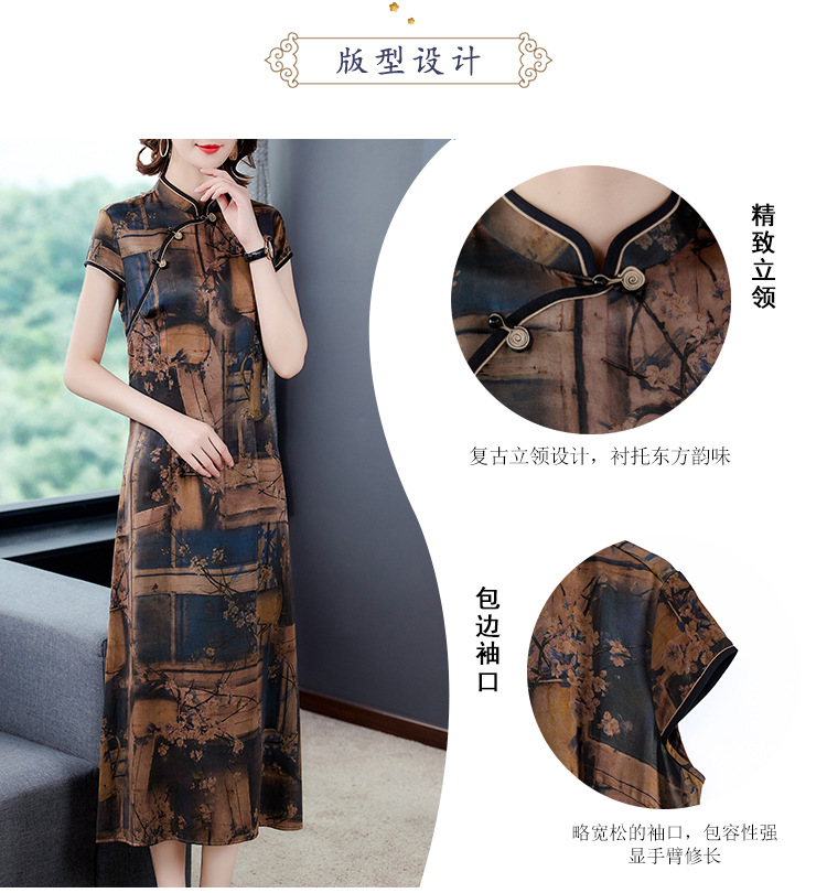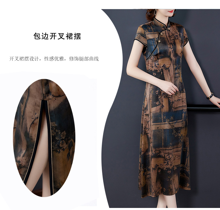 NYL-2591213妈妈装香云纱长款莨绸复古印花裙