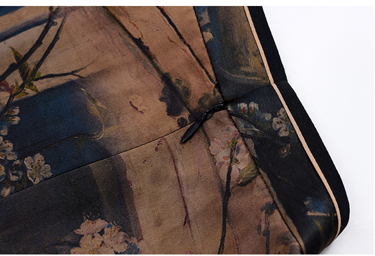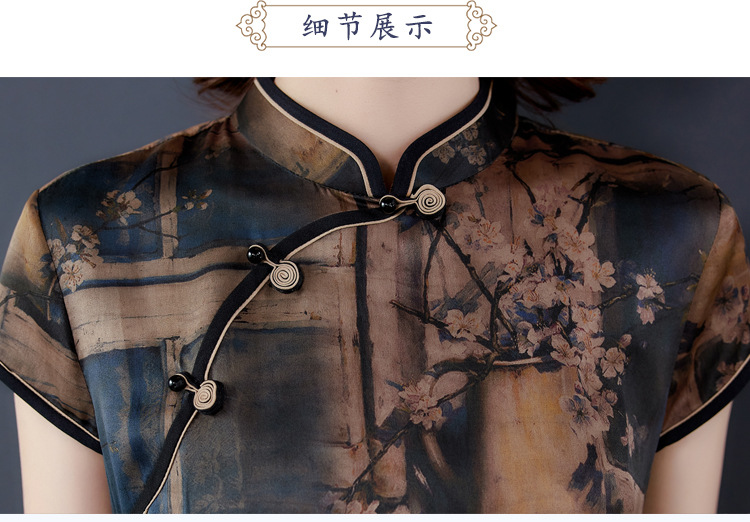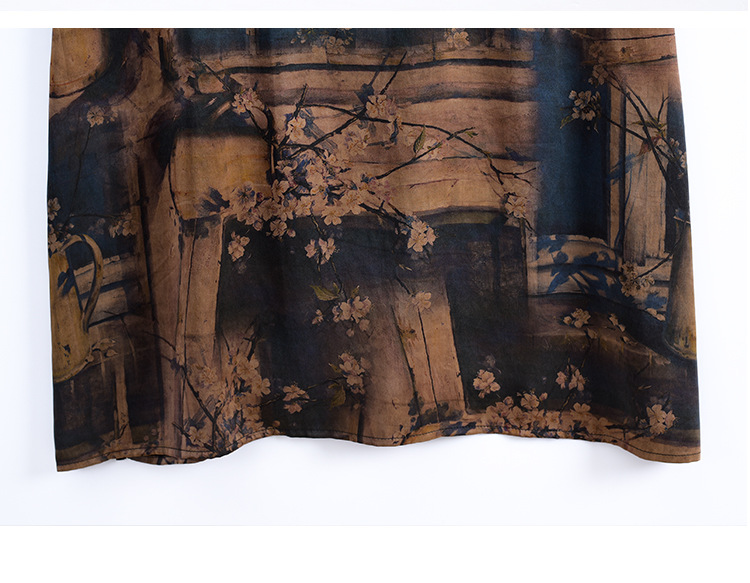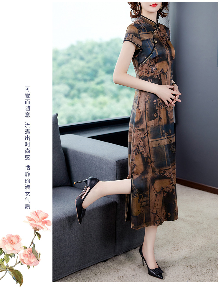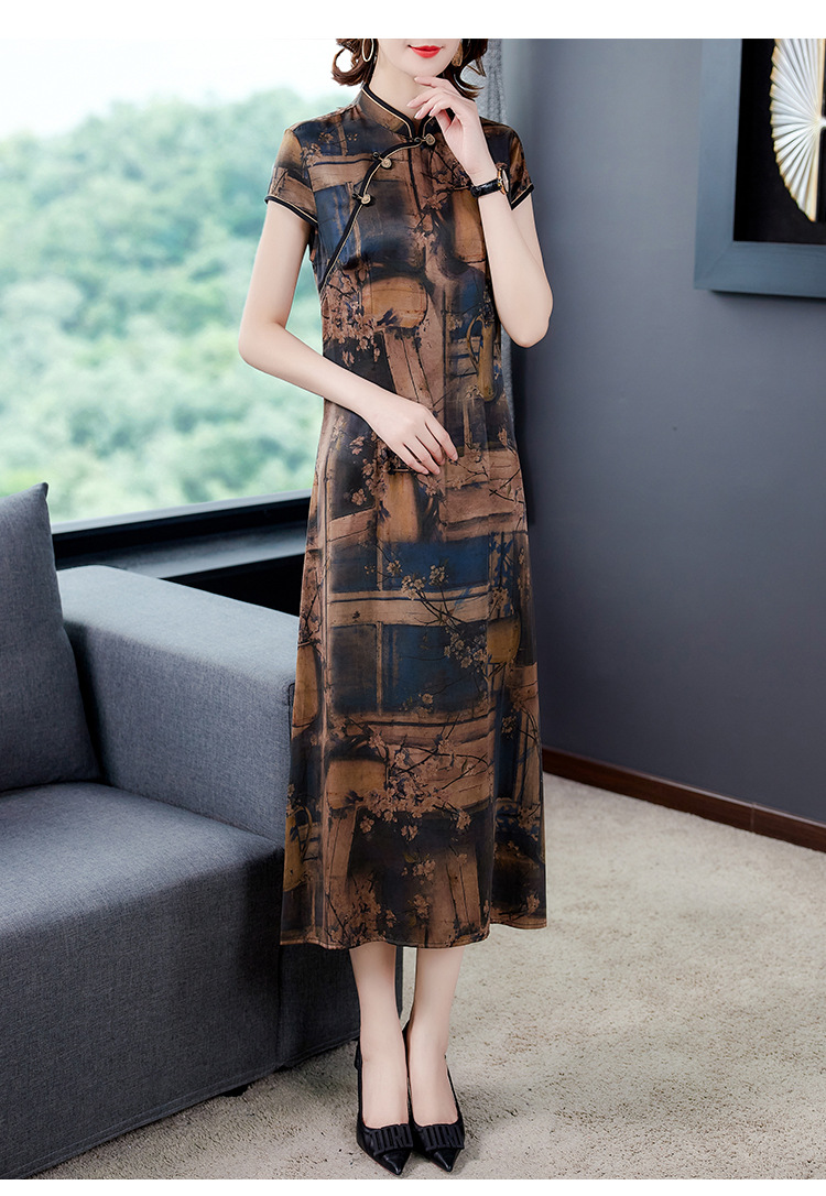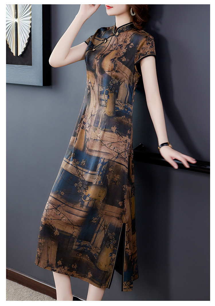 NYL-2591213妈妈装香云纱长款莨绸复古印花裙