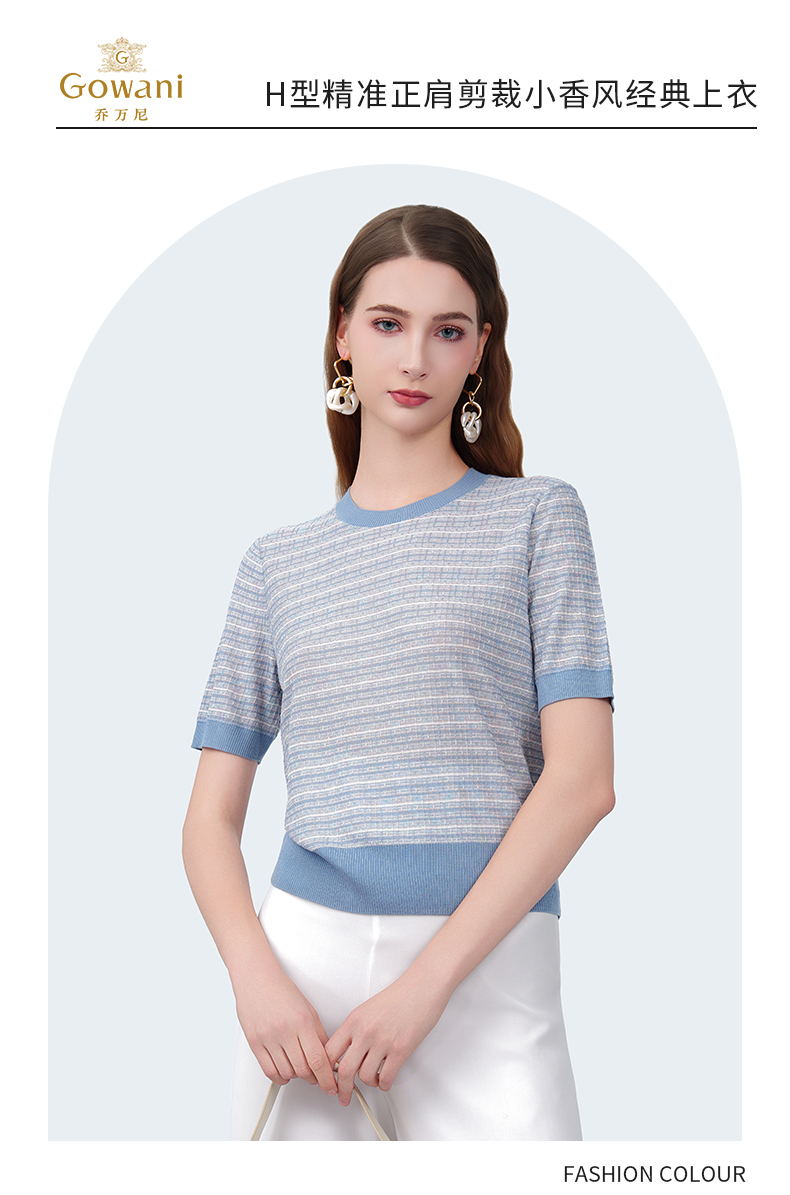 乔万尼混纺亲肤圆领清爽蓝色条纹t恤EZ2M117