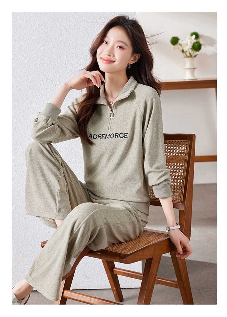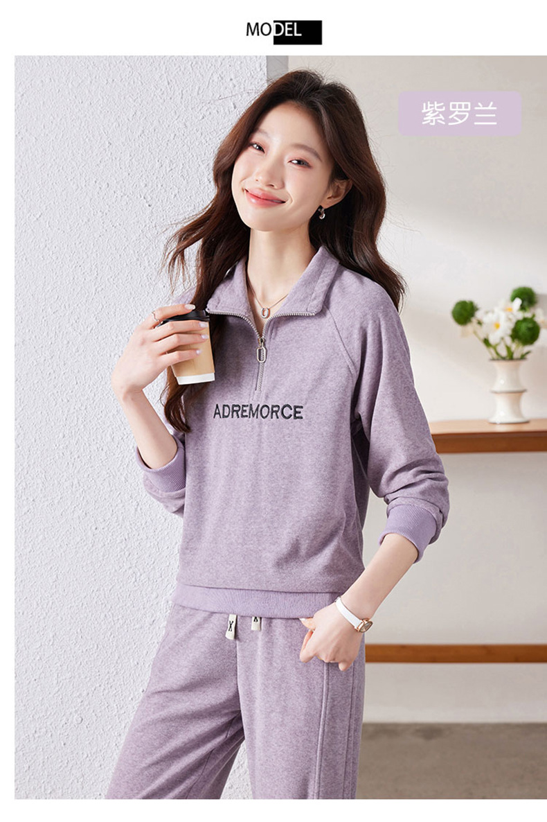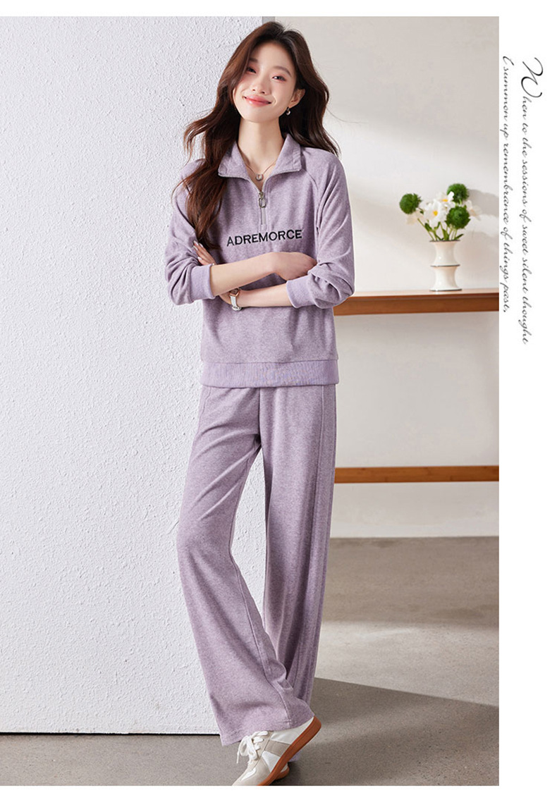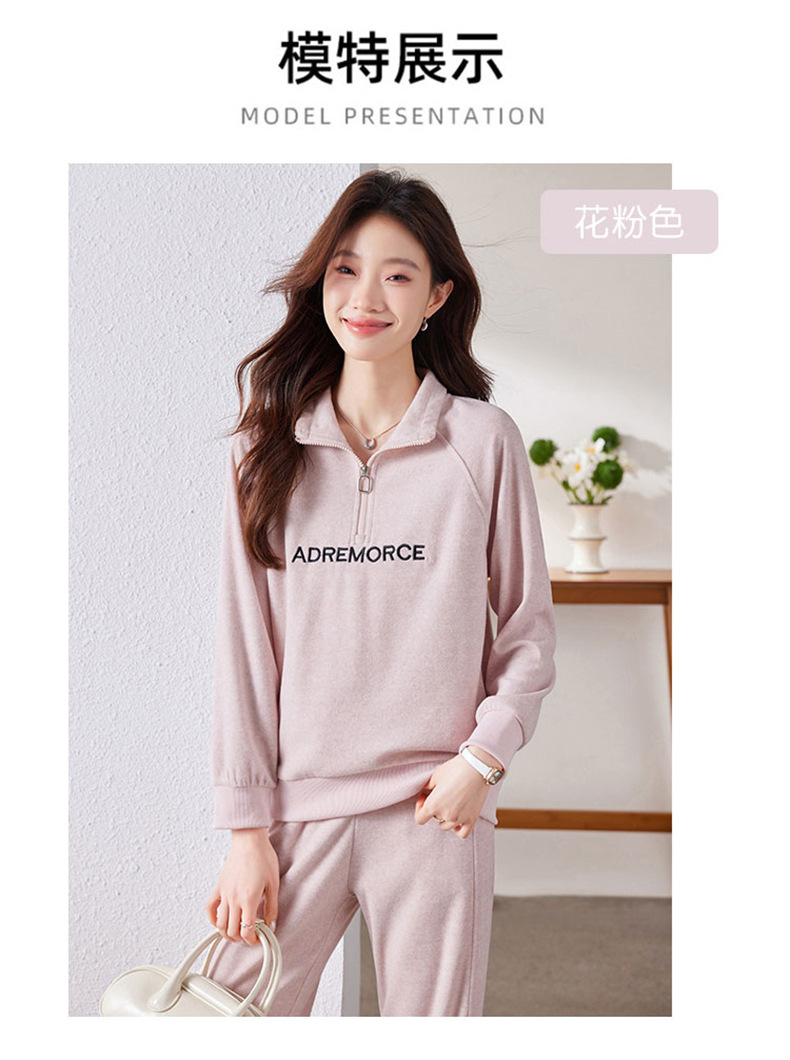 百媚生 仿羊绒运动套装女半拉链卫衣阔腿裤 A361