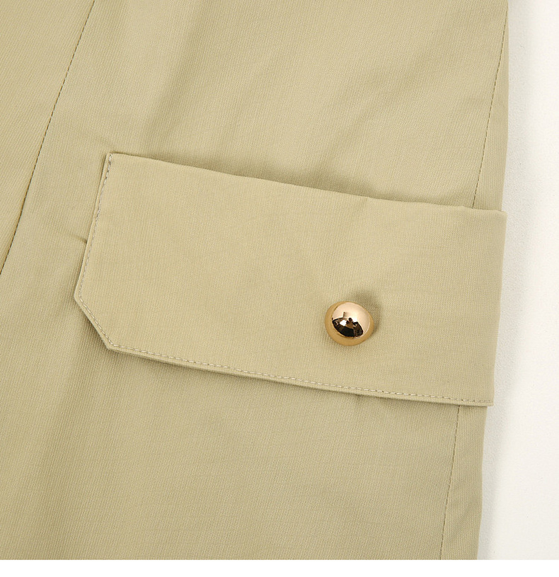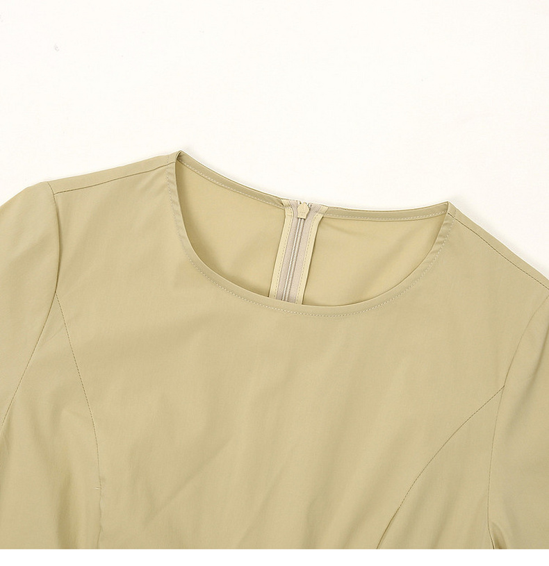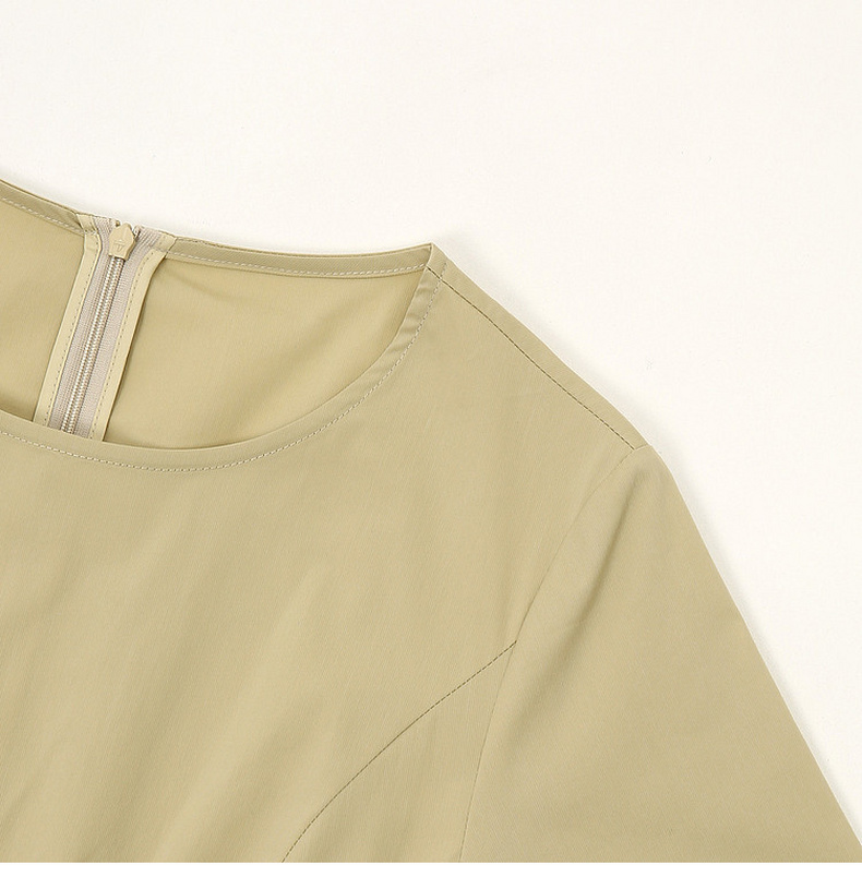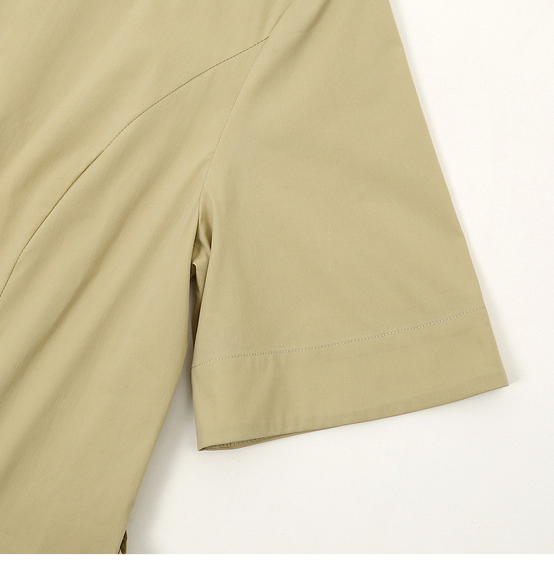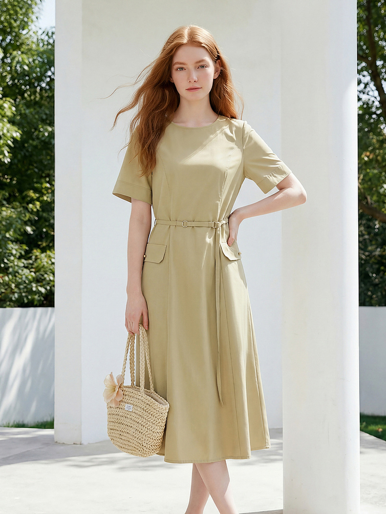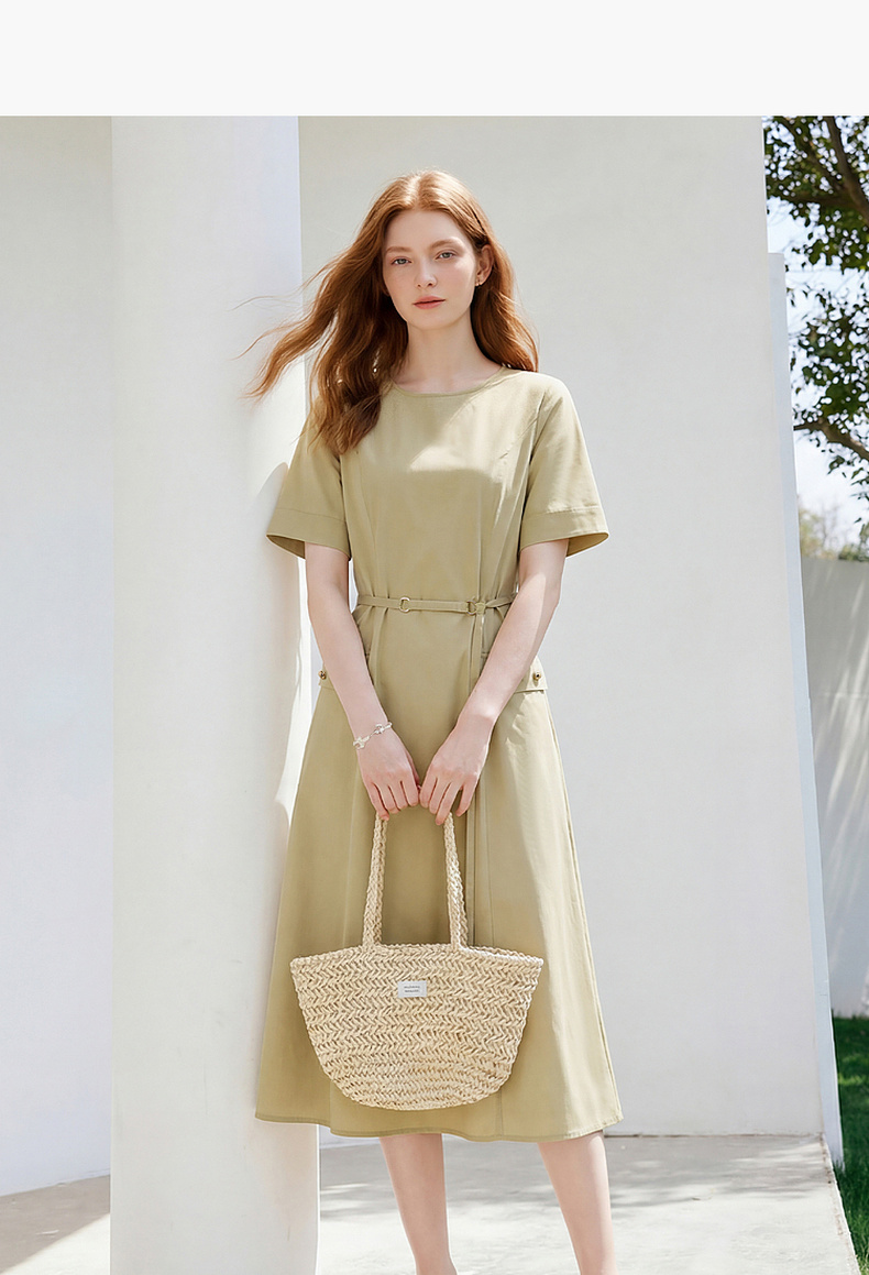 天猫同步【高端品质】拉夏贝尔/La Chapelle圆领纽扣双口袋短袖连衣裙新款流行女神御姐风连衣裙女