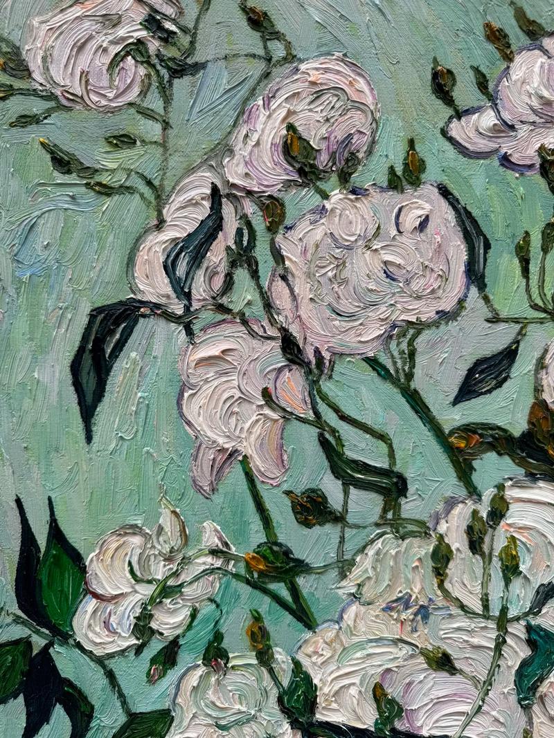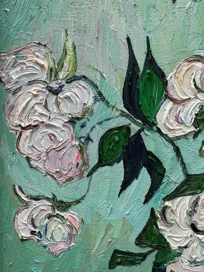 整枚戒指化作梵高笔下的白玫瑰,