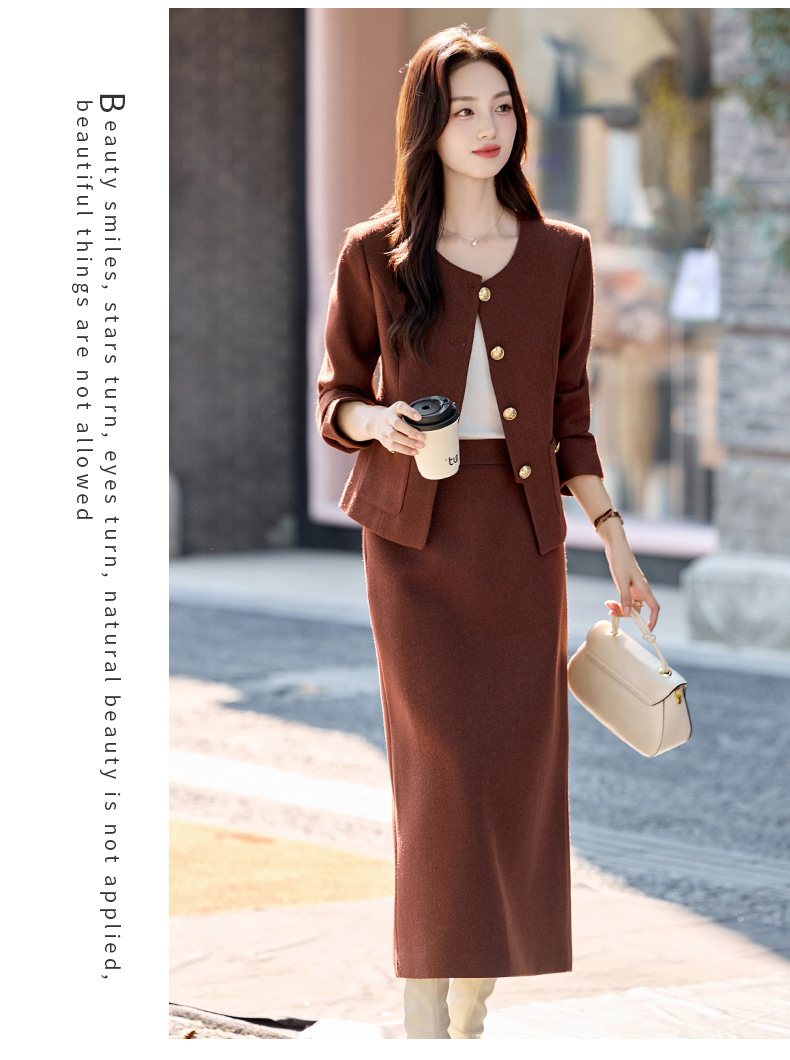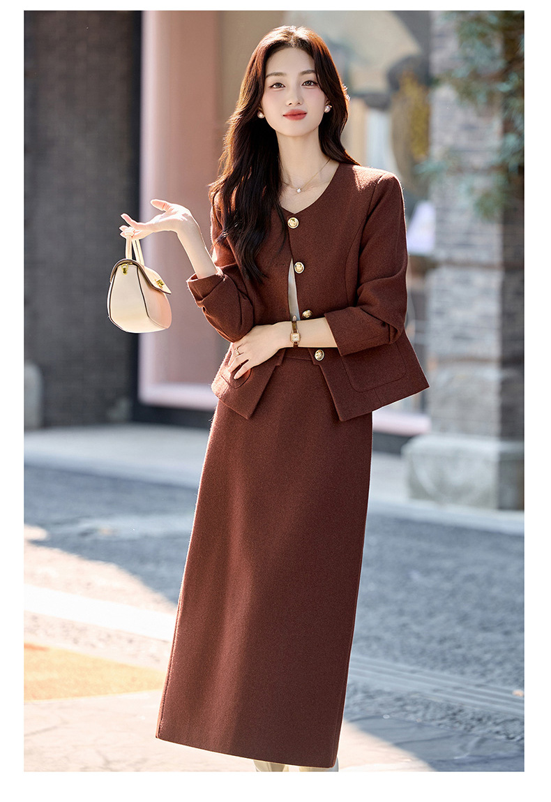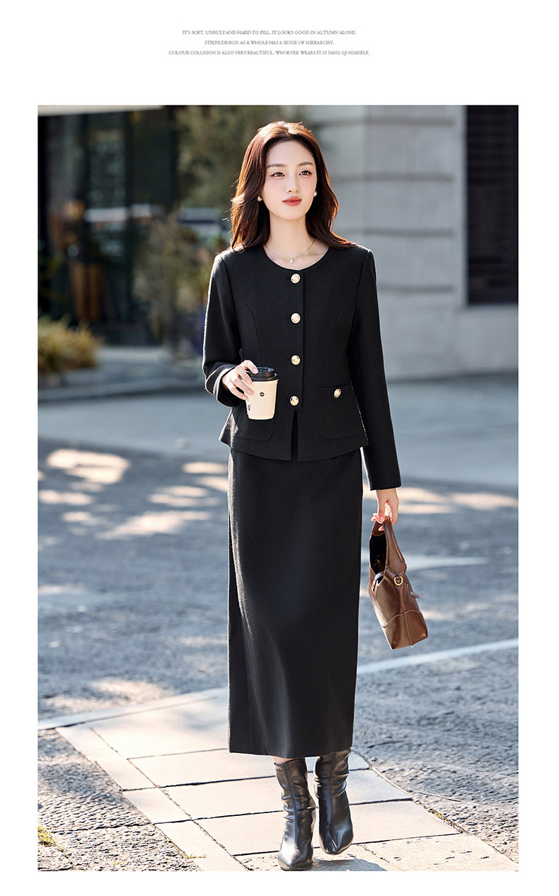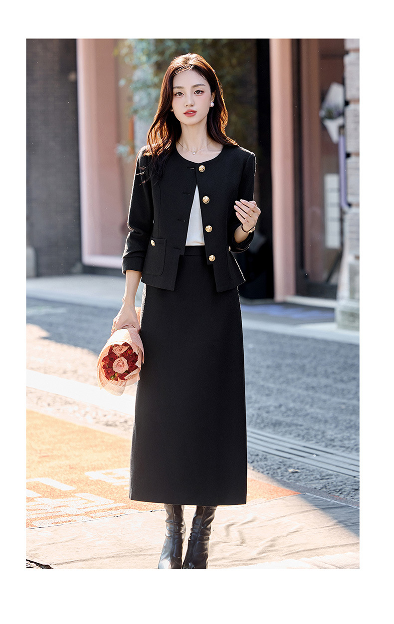 小香风毛呢套装裙,名媛气质洋气外套半身裙两件套HR-8938