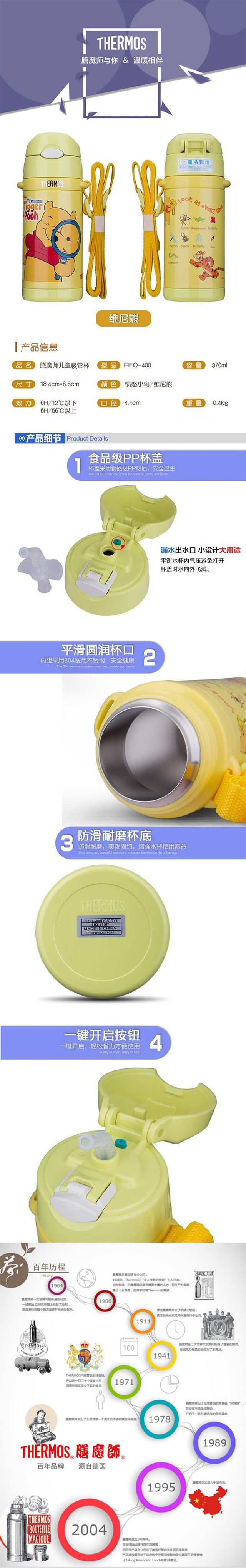 膳魔师不锈钢保温杯卡通系列维尼熊FEQ-400DS CRY