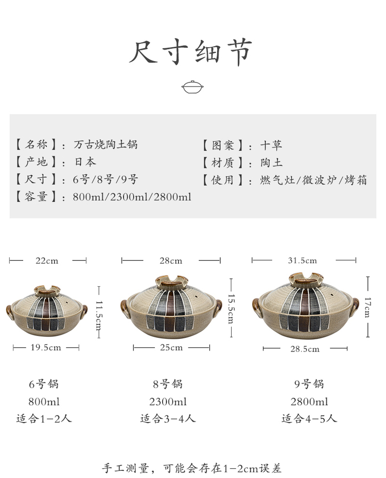 日本原产sajitoki佐治陶器万古烧陶土锅砂锅炖锅汤锅煮锅9号