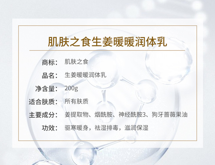 肌肤之食生姜暖暖润体乳 滋润保湿 200ml