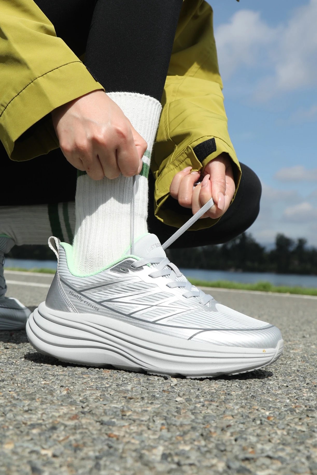 吸收脚部落地冲击力,持续释放回弹能量,感受每一步的助推感,缓解腿部关节压力!