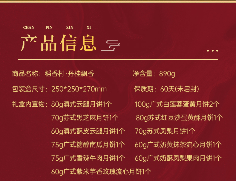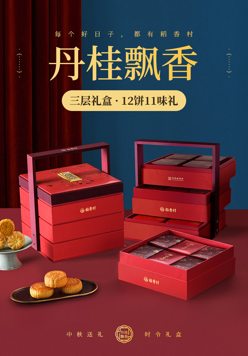 稻香村月饼礼盒装丹桂飘香890g月饼老式中式小吃点心送礼长辈