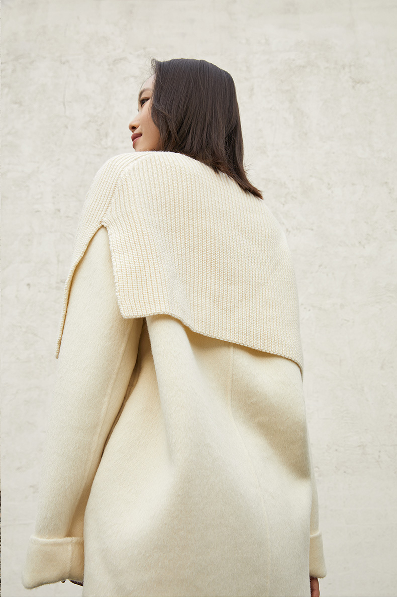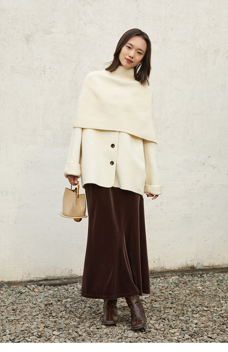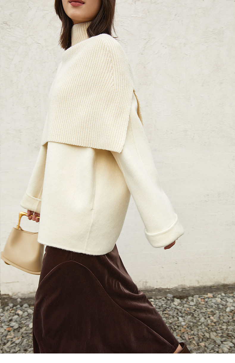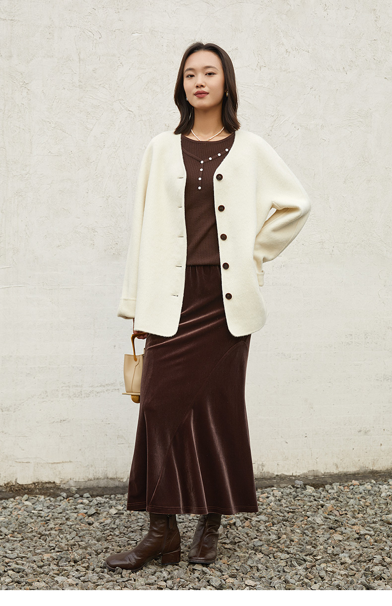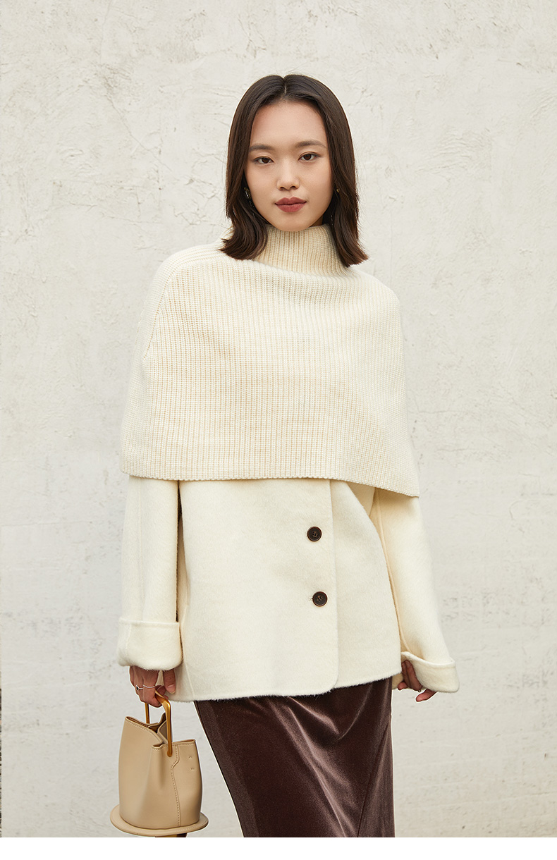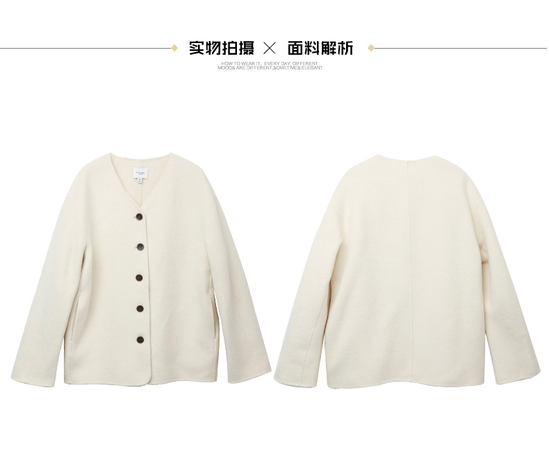 V 领单排扣米白色毛呢外套 宽松休闲短款夹克 秋冬复古质感毛呢上衣