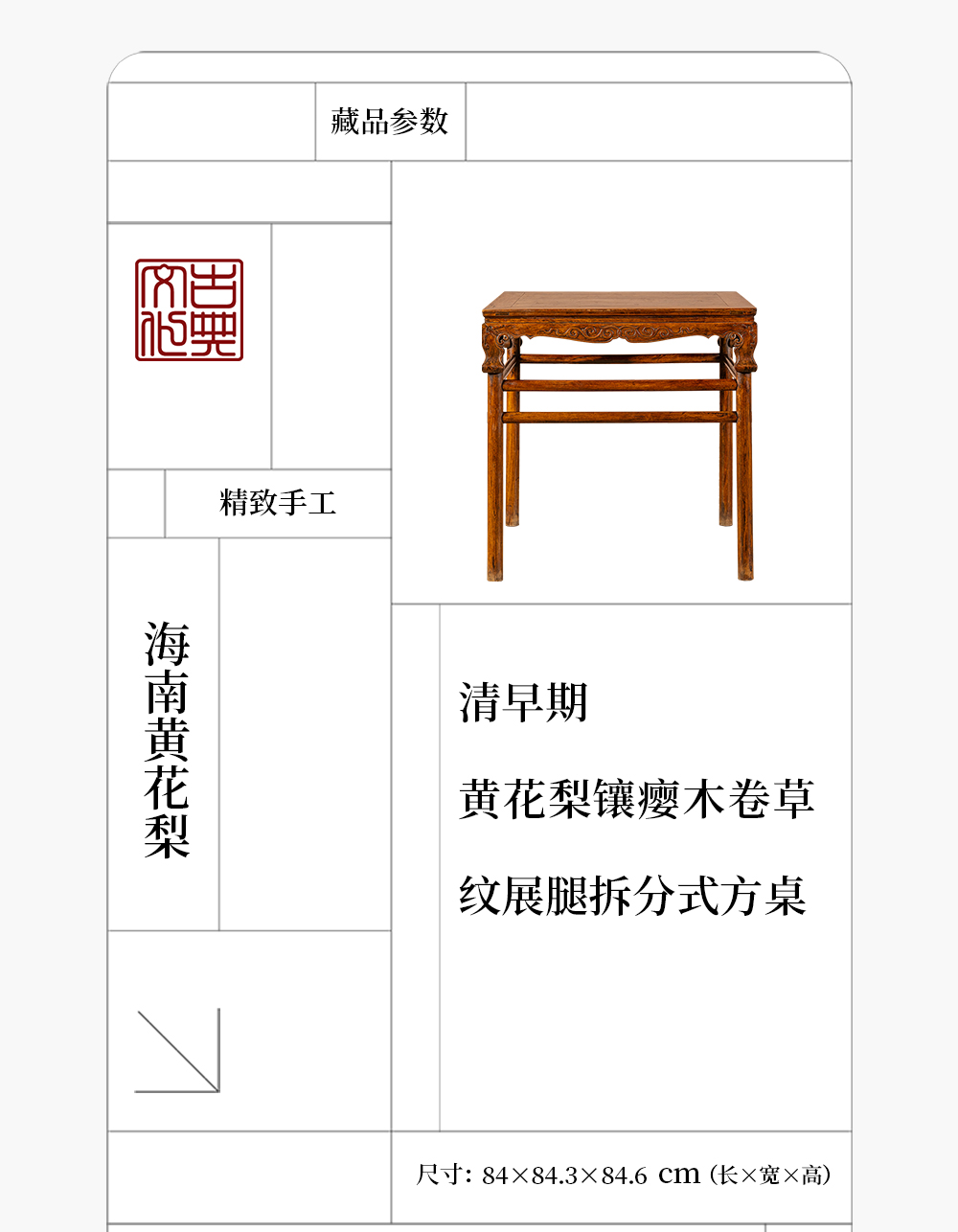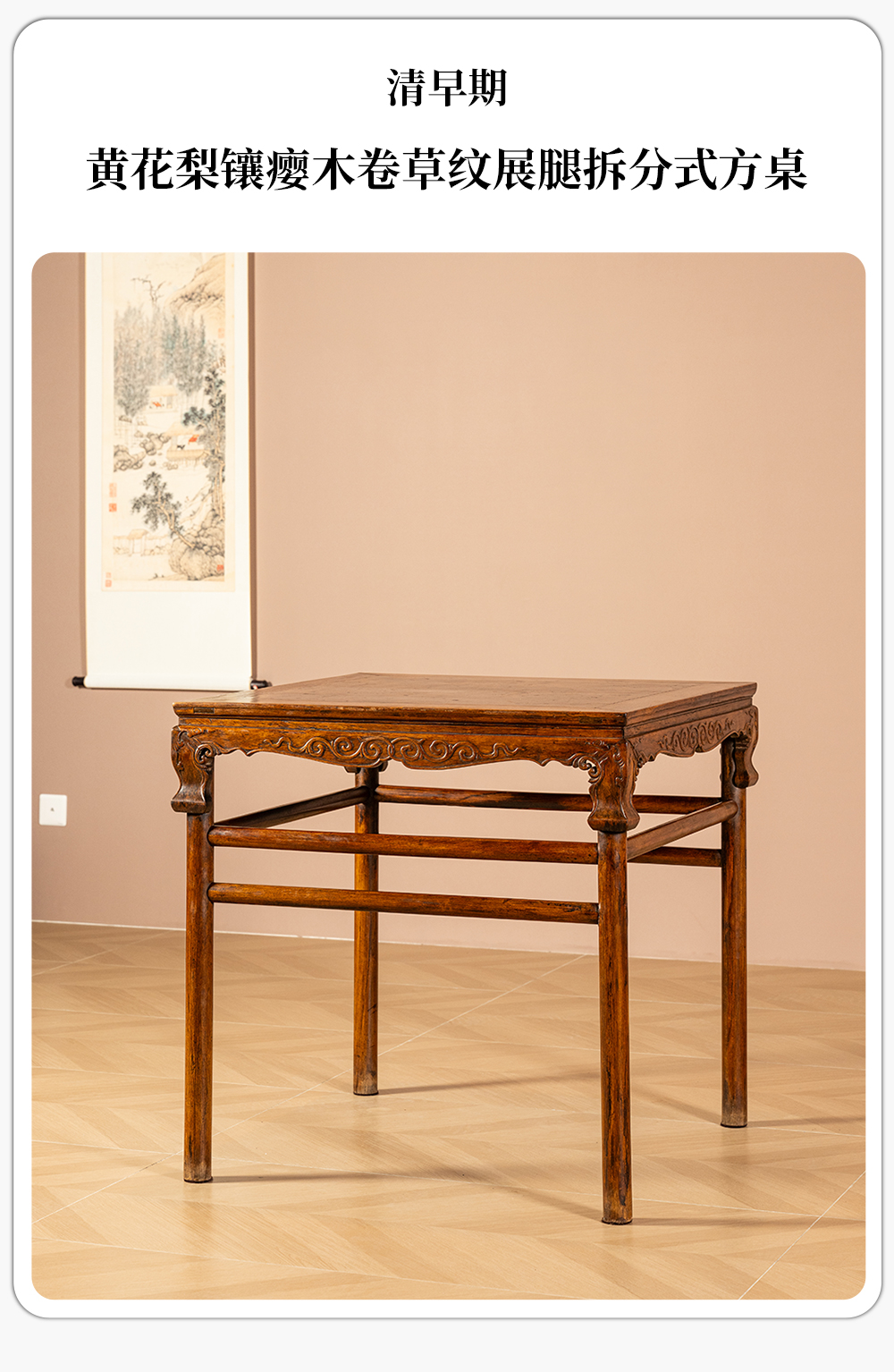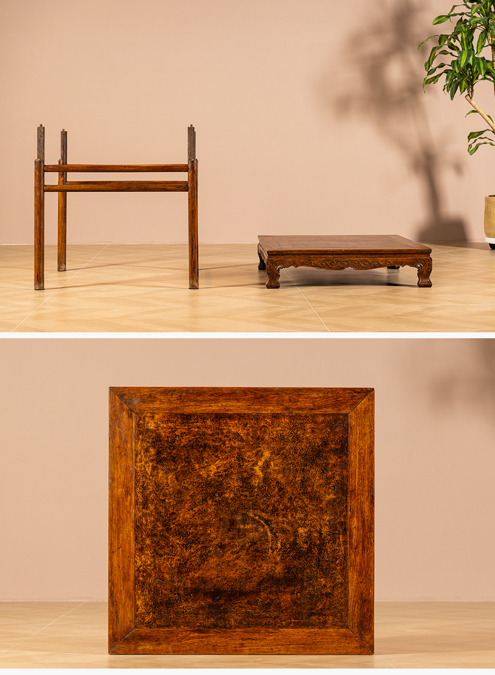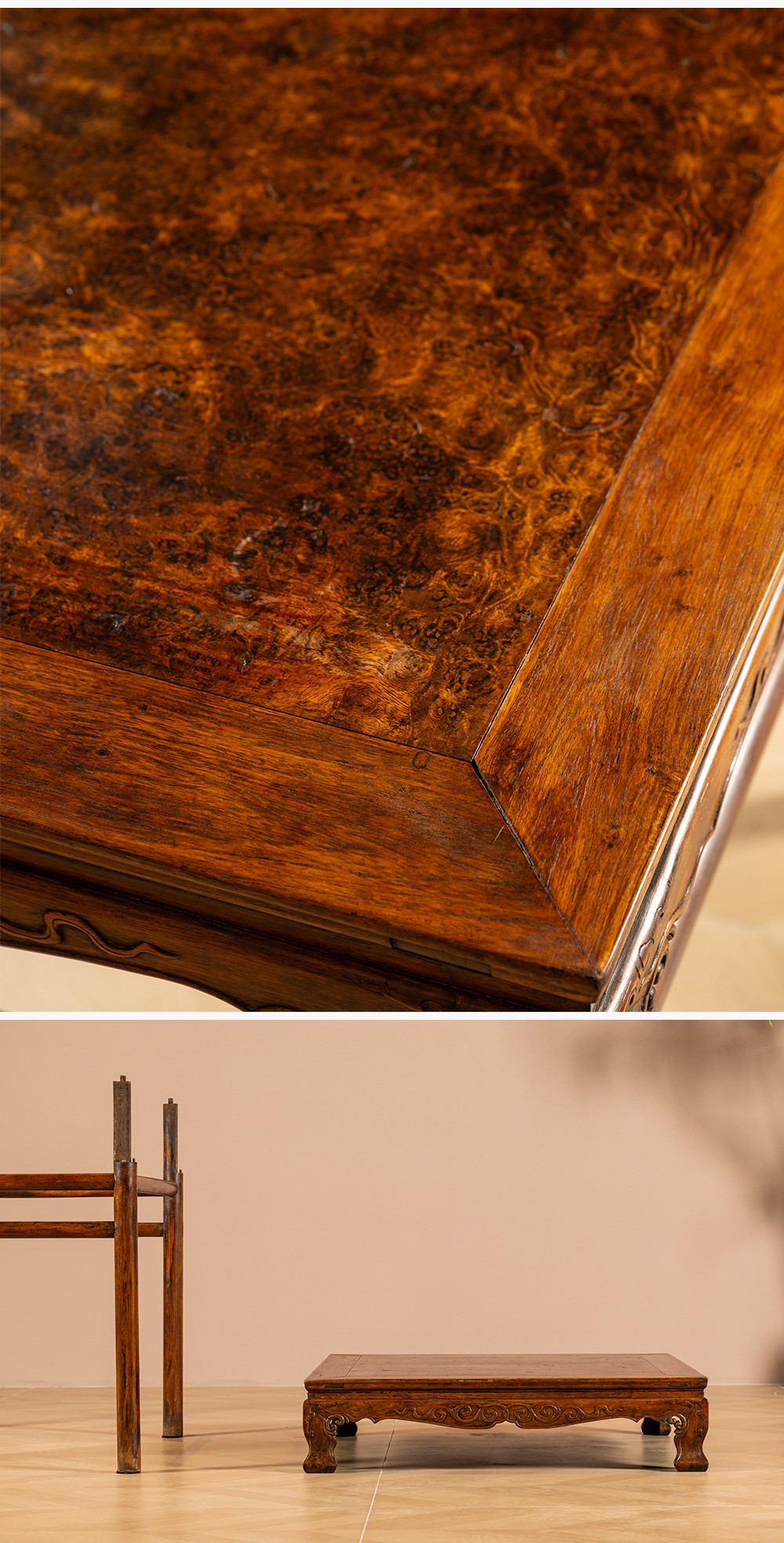 清早期 黄花梨镶瘿木卷草纹展腿拆分式方桌
