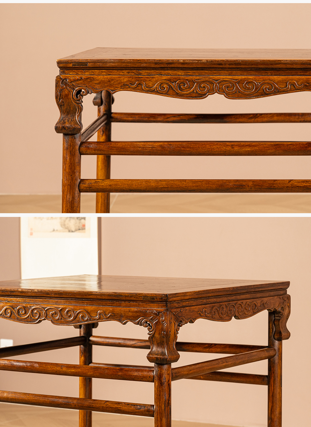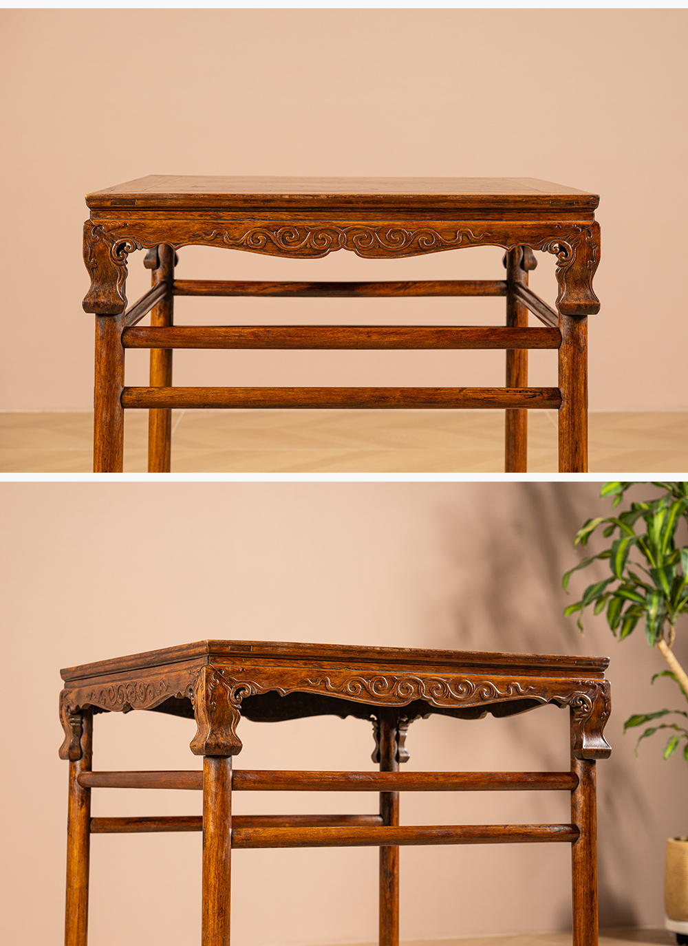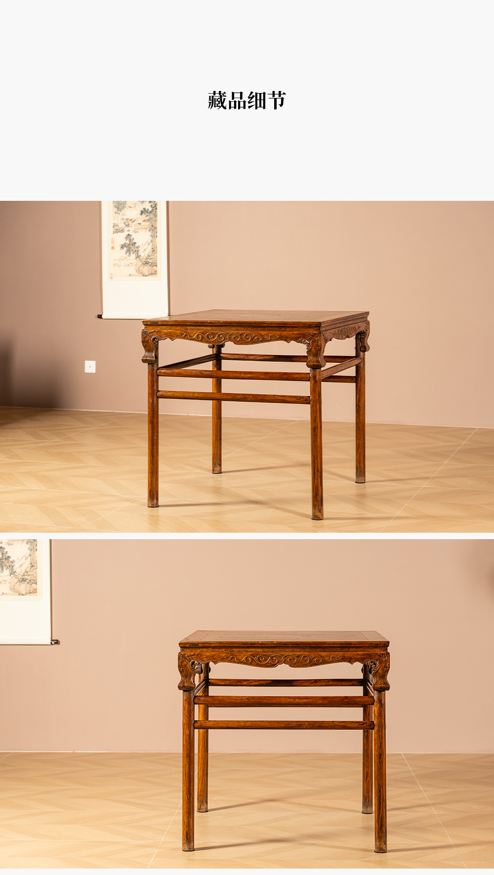 清早期 黄花梨镶瘿木卷草纹展腿拆分式方桌