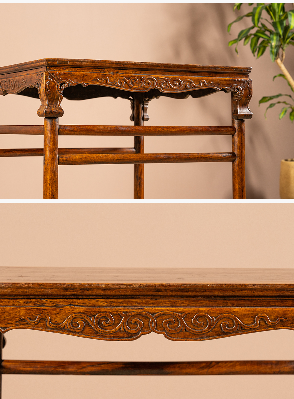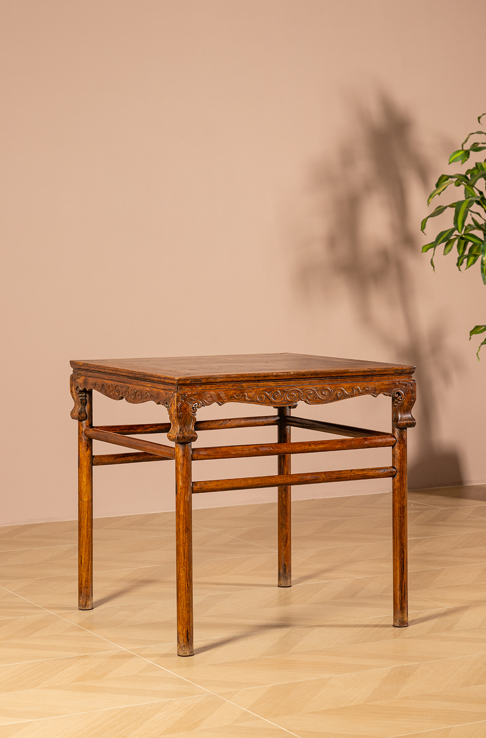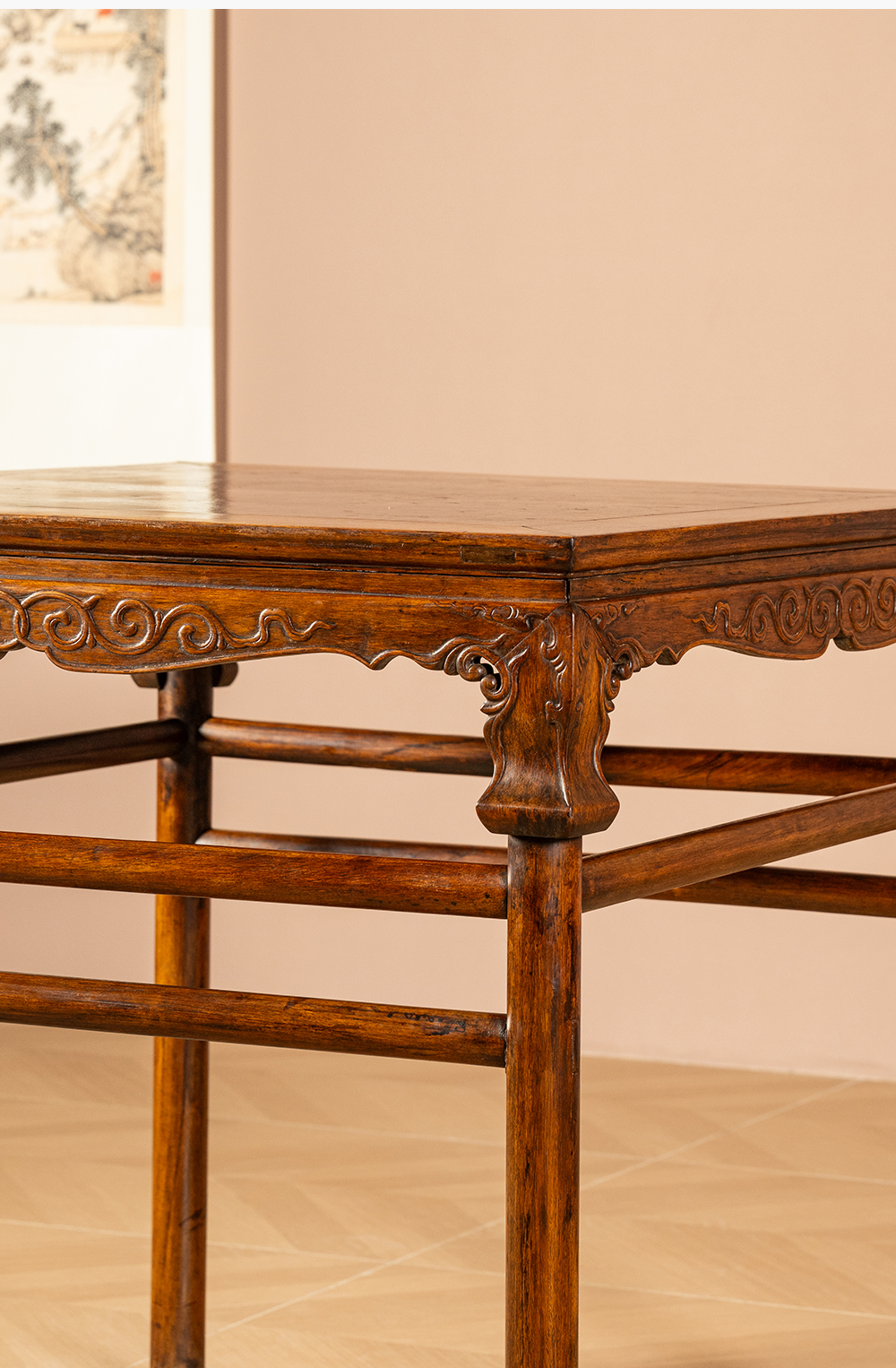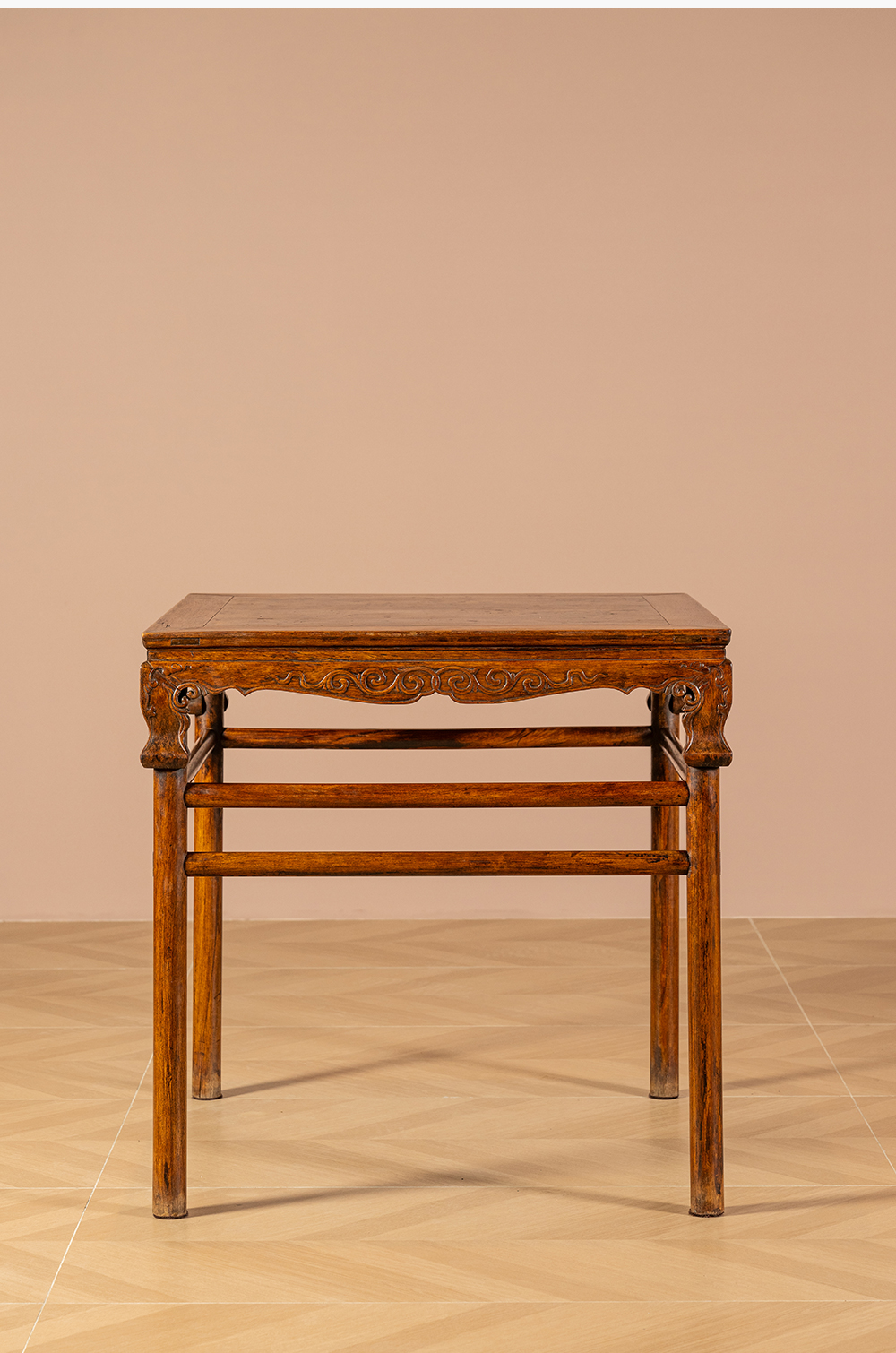 清早期 黄花梨镶瘿木卷草纹展腿拆分式方桌