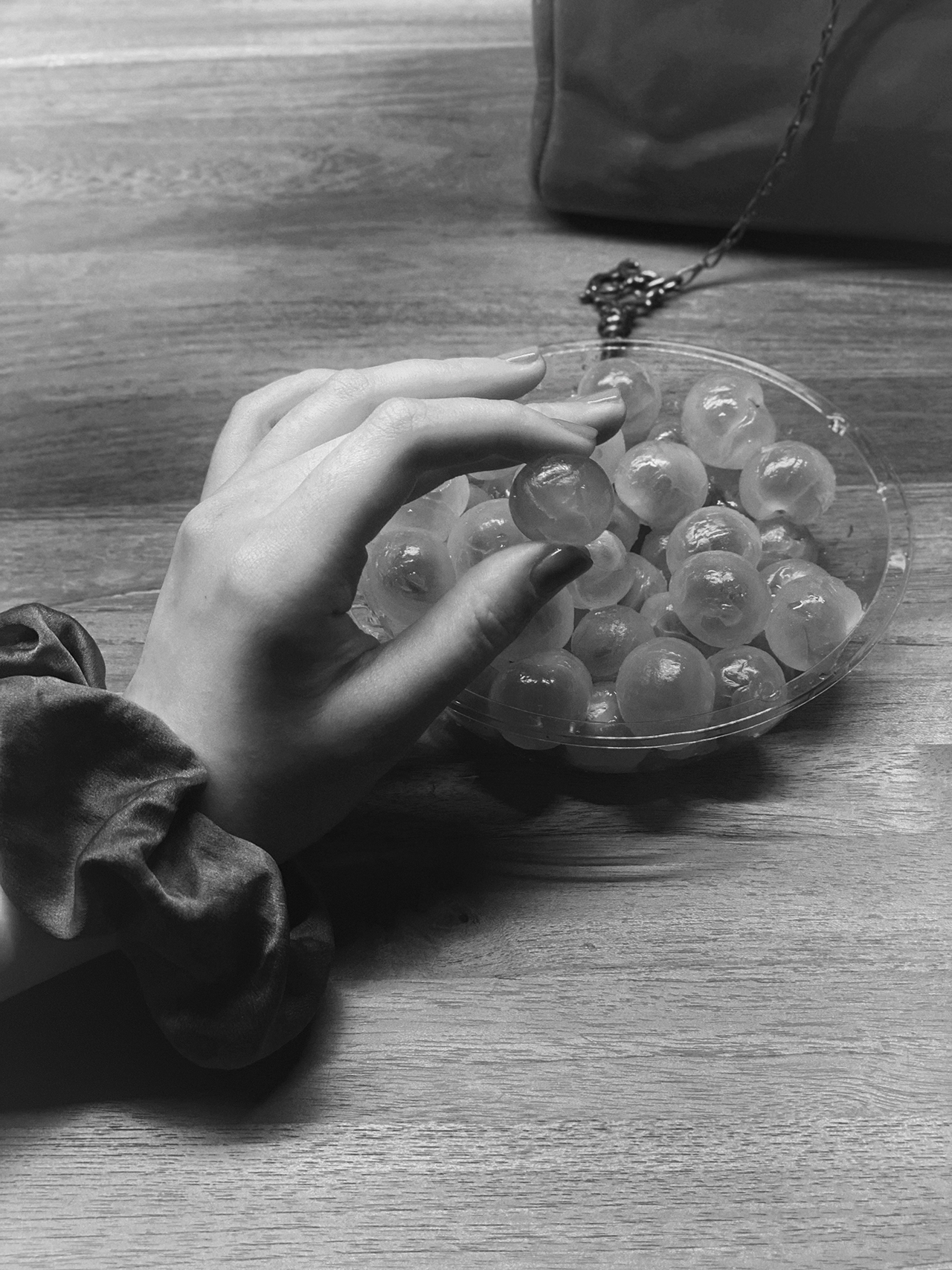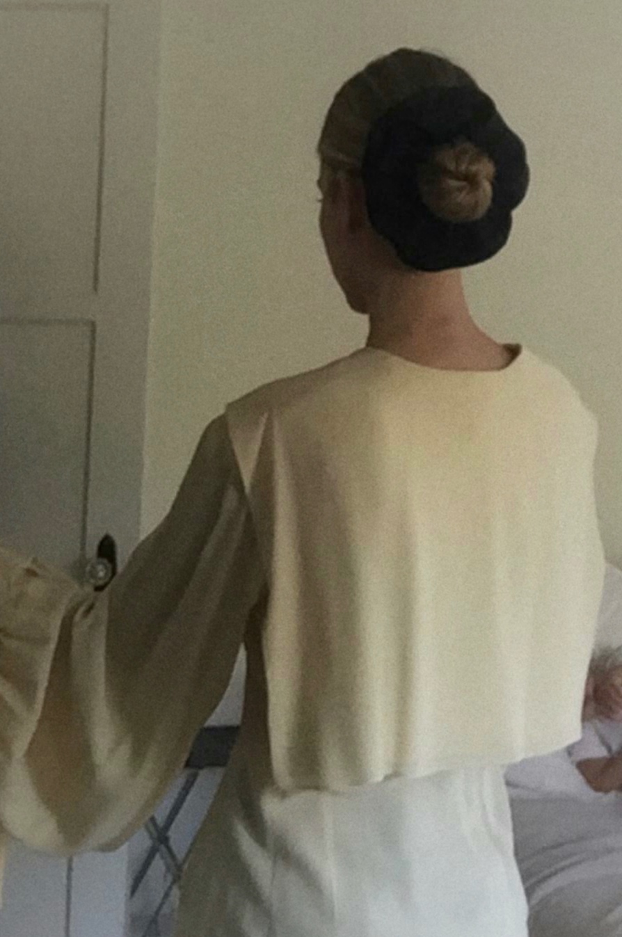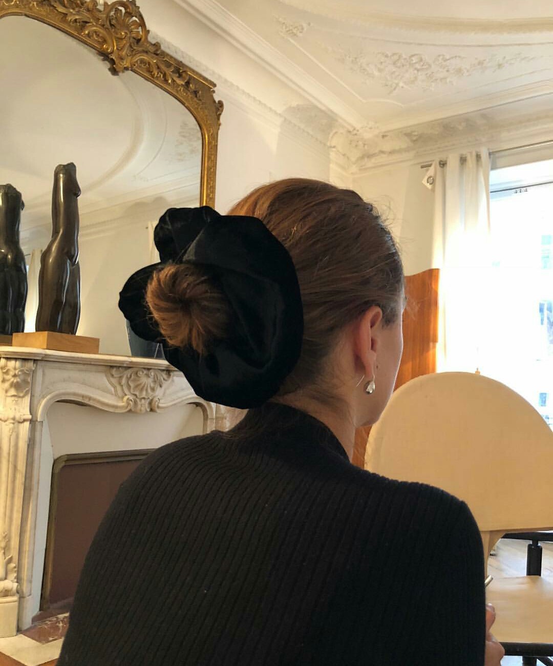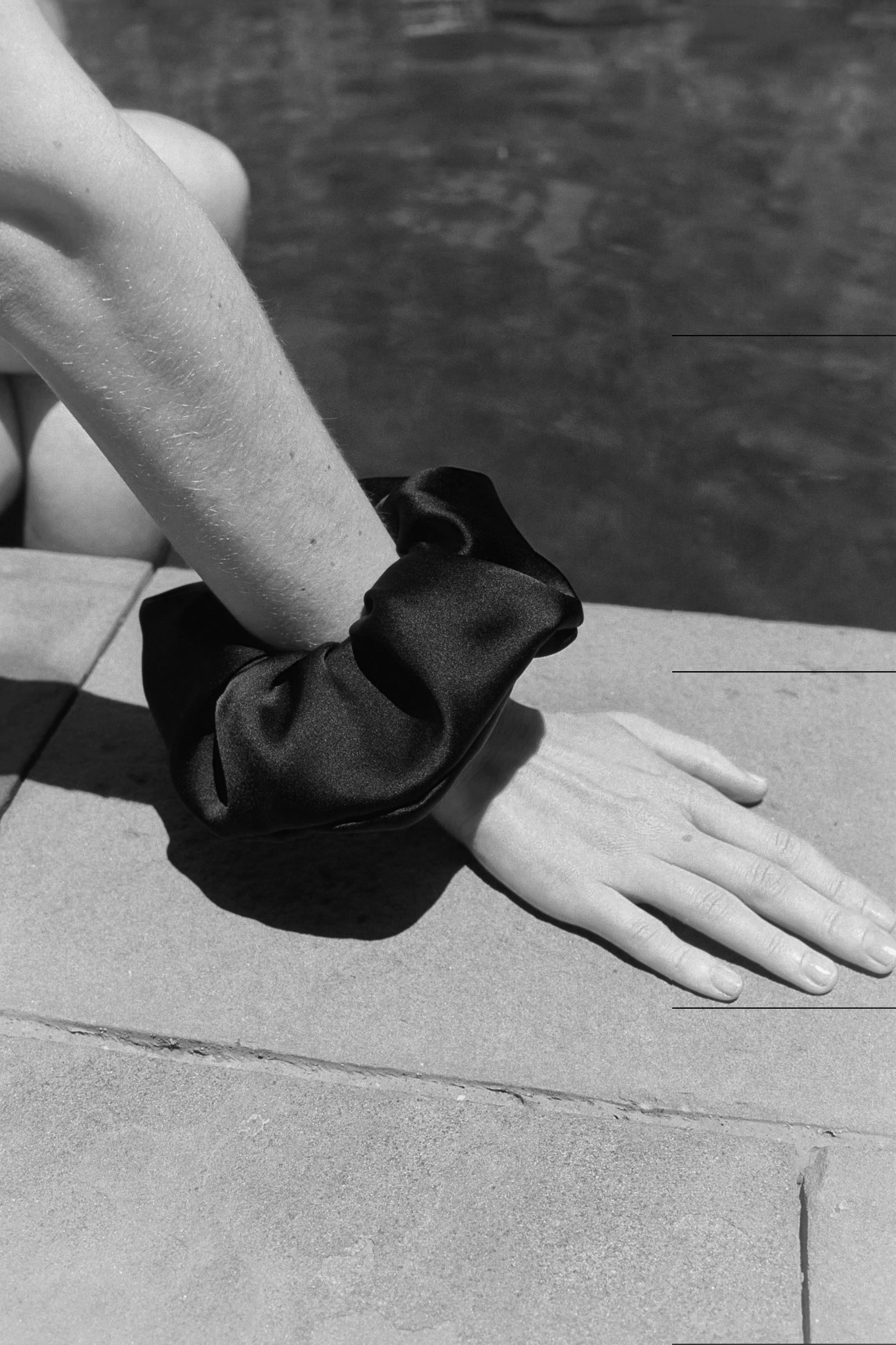 采用真丝手工制作,质地柔顺而富有光泽。可作发圈或袖口装饰佩戴,花苞状的造型带来优雅的复古气息。