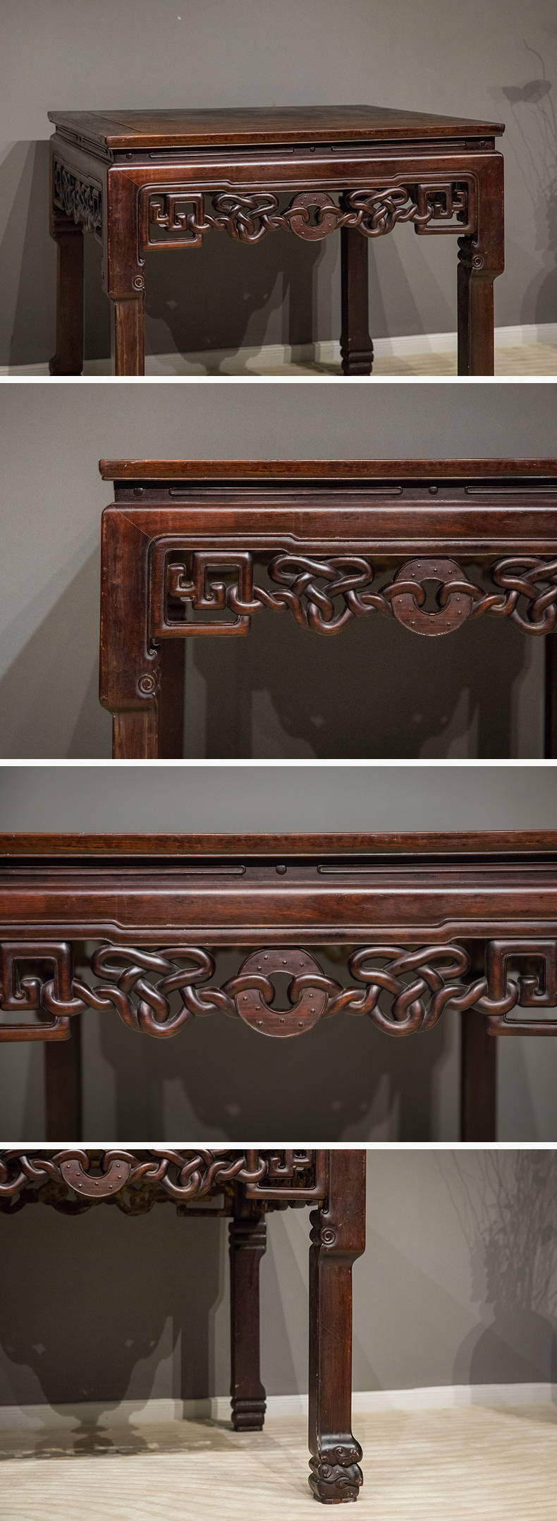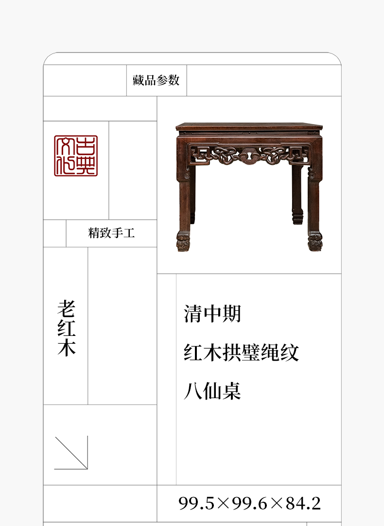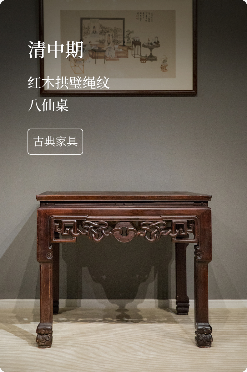 清中期 红木拱璧绳纹八仙桌