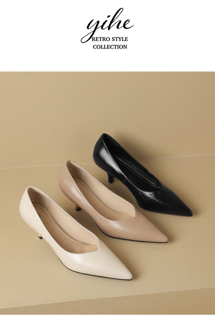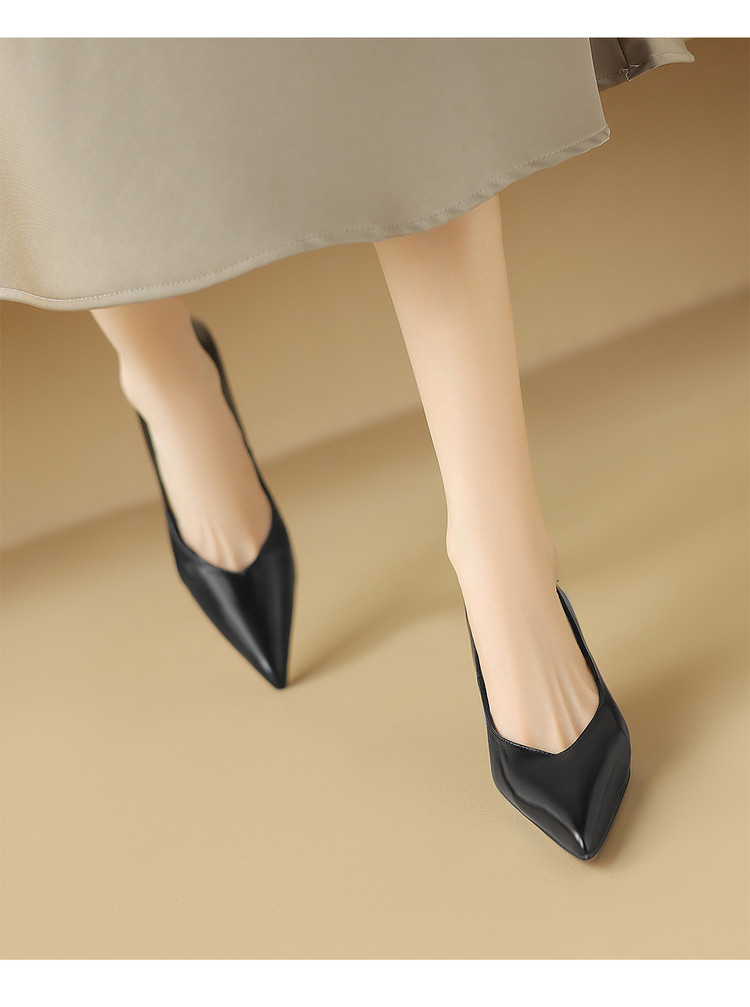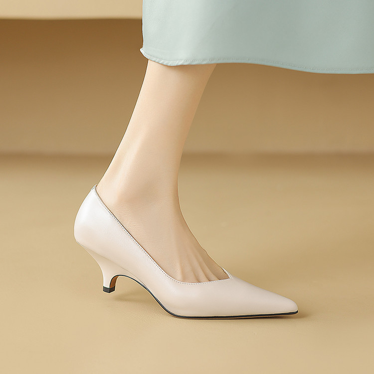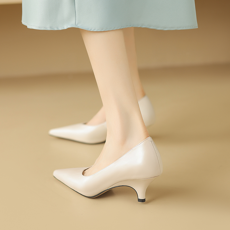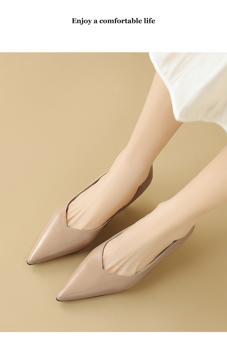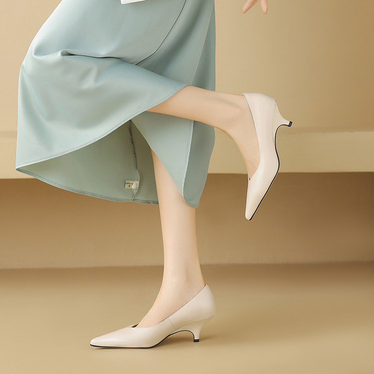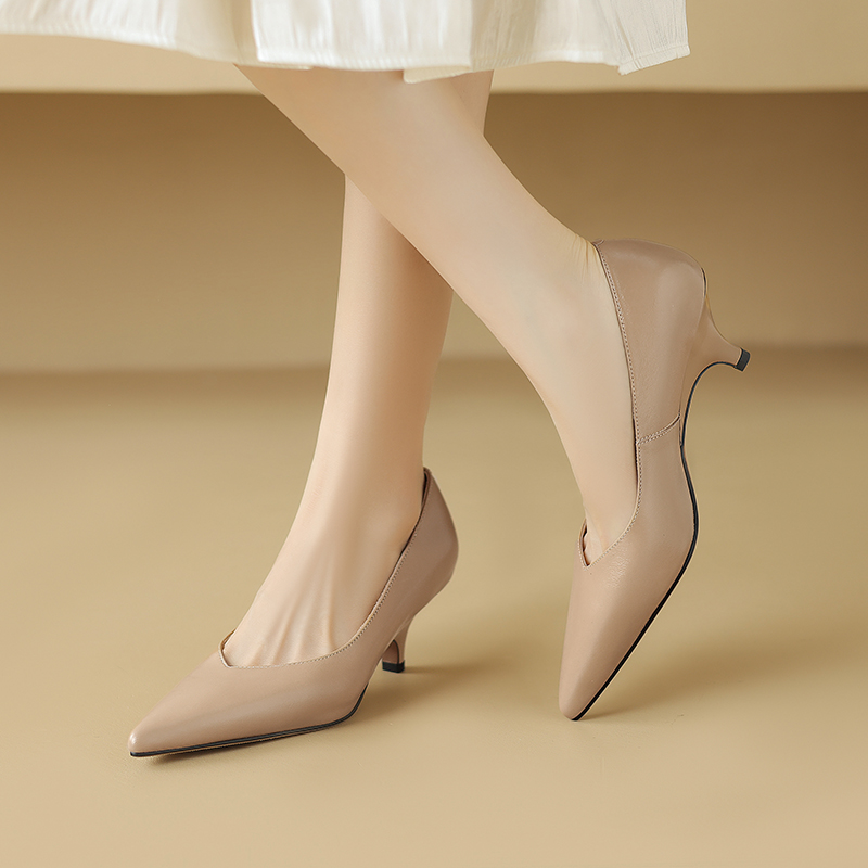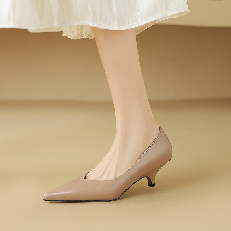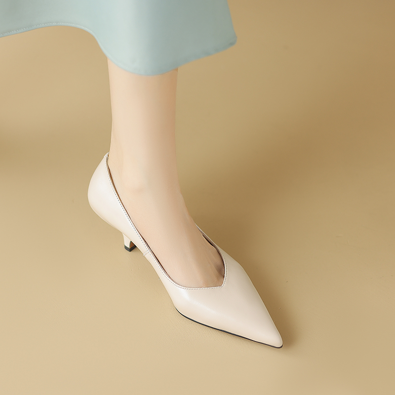 【预售5天】不累脚高跟鞋女新款气质法式通勤职业上班工作鞋尖头细跟米色单鞋NDXC&7082