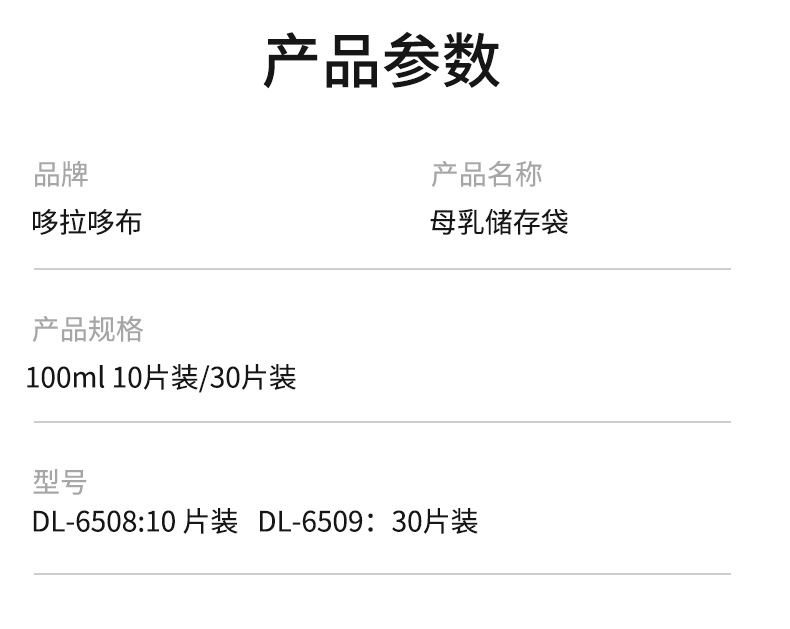 【壶嘴设计,轻松倒奶不易洒~】哆拉哆布储奶袋母乳储存袋 奶水保鲜袋100ml小容量母乳袋 10片/30片规格盒装-QQ