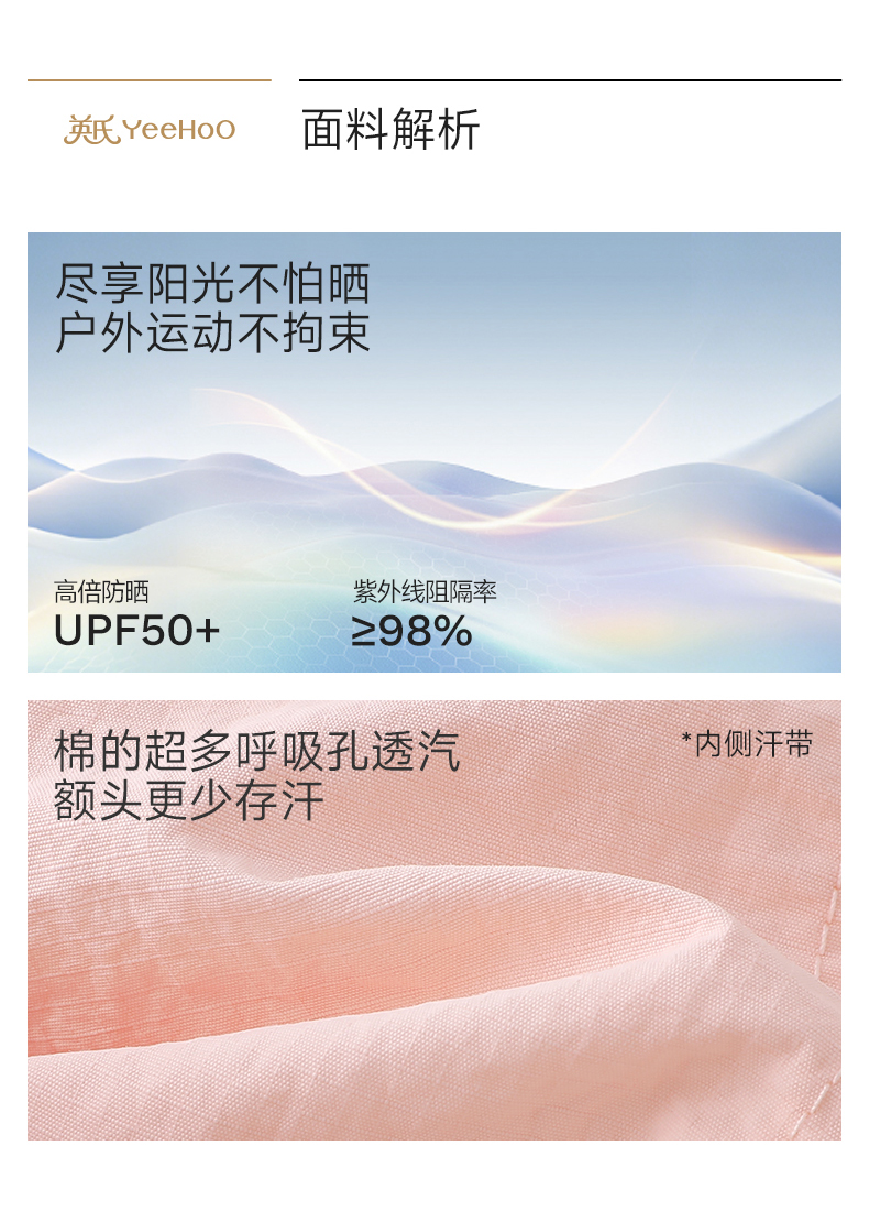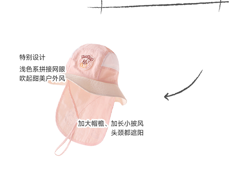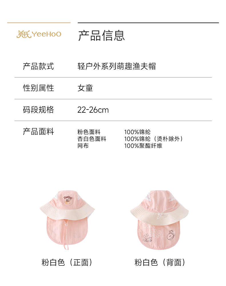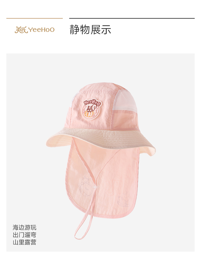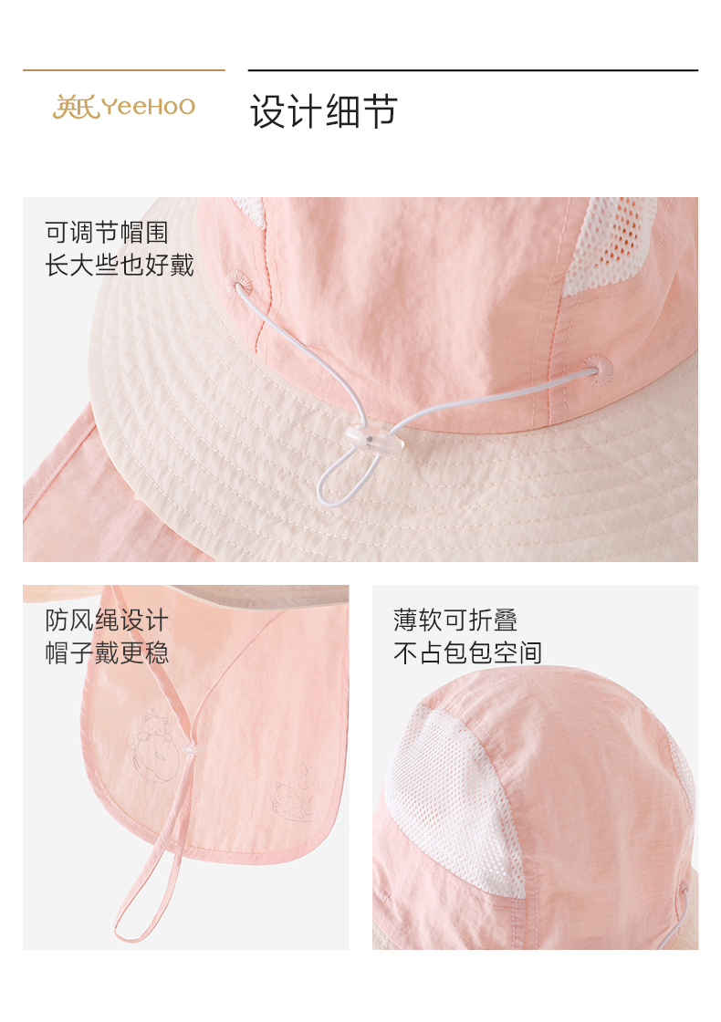 【UPF50+】英氏儿童帽子夏季渔夫帽防晒透气网兜女宝户外防晒帽子渔夫帽女