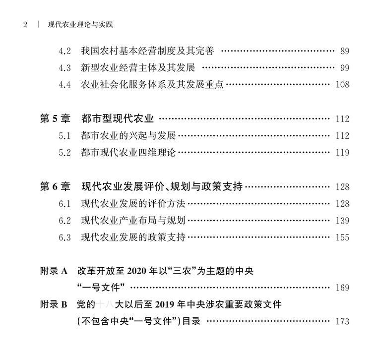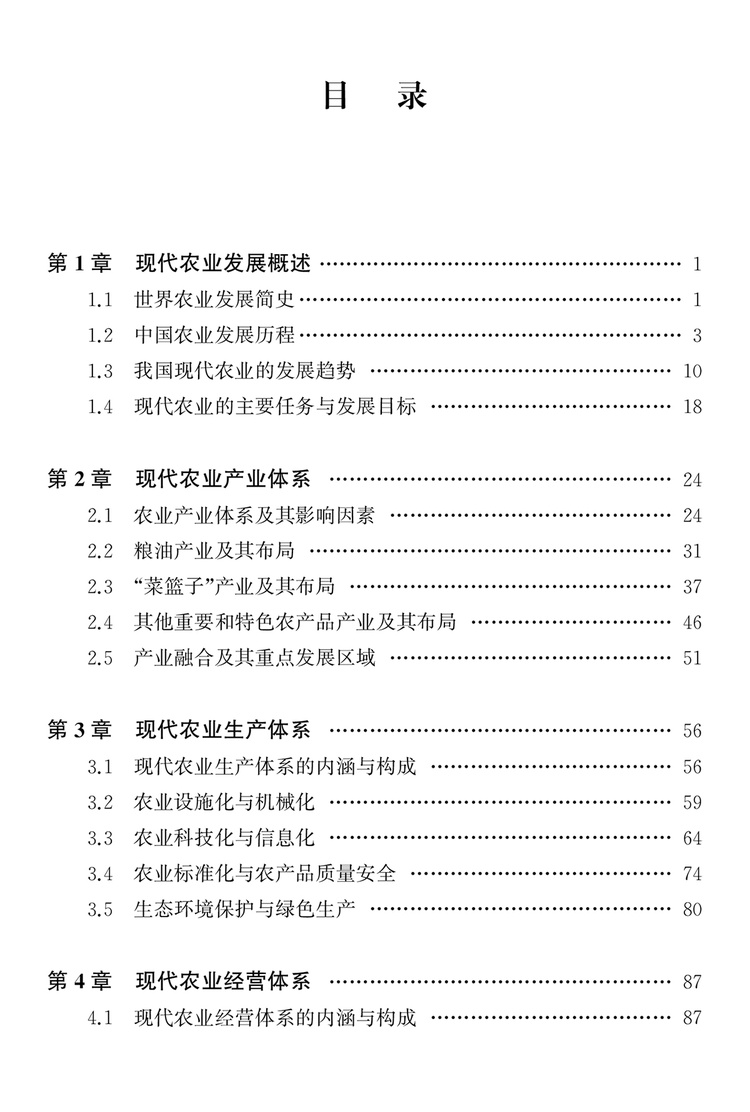 2016年4月,习近平总书记在安徽小岗村农村改革座谈会上强调,要以构建现代农业产业体系、生产体系、经营体系为抓手,加快推进农业现代化。习近平总书记关于加快构建现代农业“三大体系”的重要讲话明确了现代农业建设的重点任务,为新时代我国现代农业发展指明了方向路径。遵照习近平总书记关于“三农”工作的一系列重要讲话精神和关于推进现代农业发展的要求,结合十八大以来中央出台的关于“三农”工作的政策和文件,本书以现代农业“三大体系”建设为主体,从现代农业发展概述、现代农业产业体系、现代农业生产体系、现代农业经营体系、发展都市型现代农业,以及现代农业发展评价、规划与政策支持等六方面阐述现代农业基本理论和实践。此教材旨在帮助读者进一步懂得农业、懂得农村和懂得农民,做一名新时代中国特色社会主义事业的建设者和接班人。本书可作为高校农科学生的专业基础课教材和非农科学生全面系统地了解我国现代农业发展的选修课教材,也可以作为“三农”干部的培训教材。
