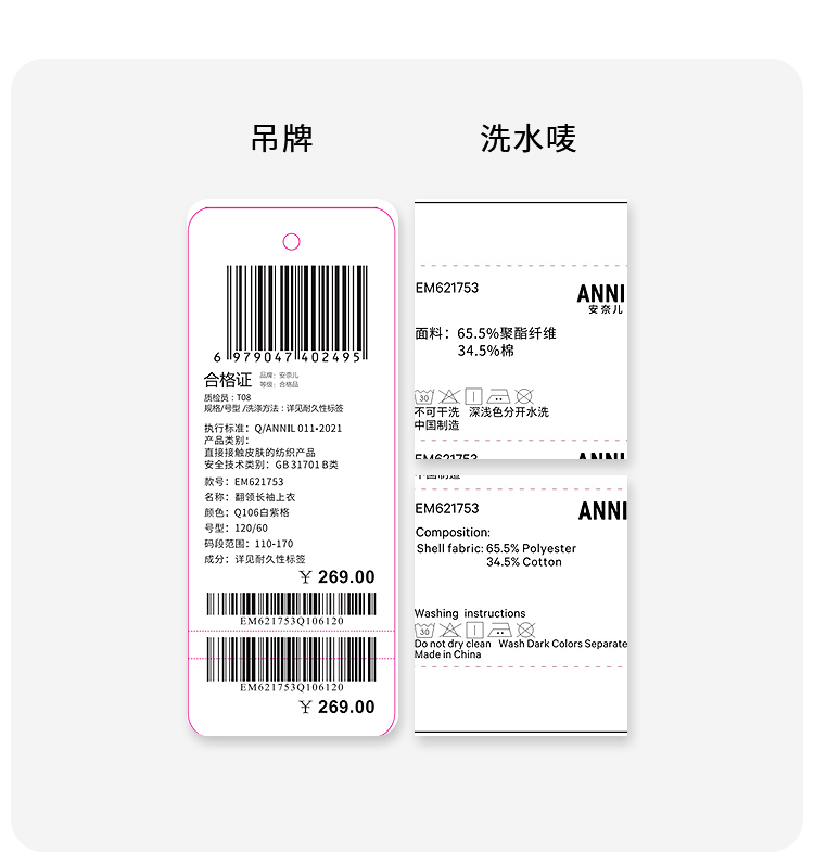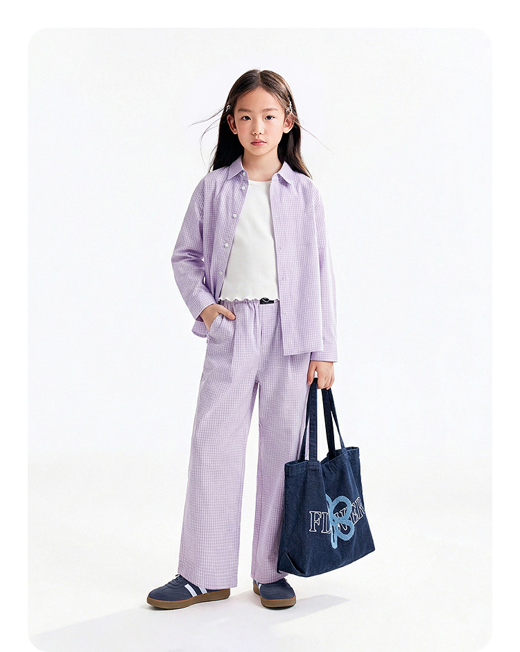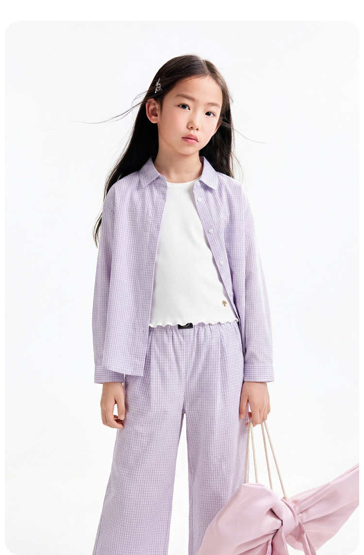 男女童翻领长袖上衣夏季新款安奈儿童装EM621753