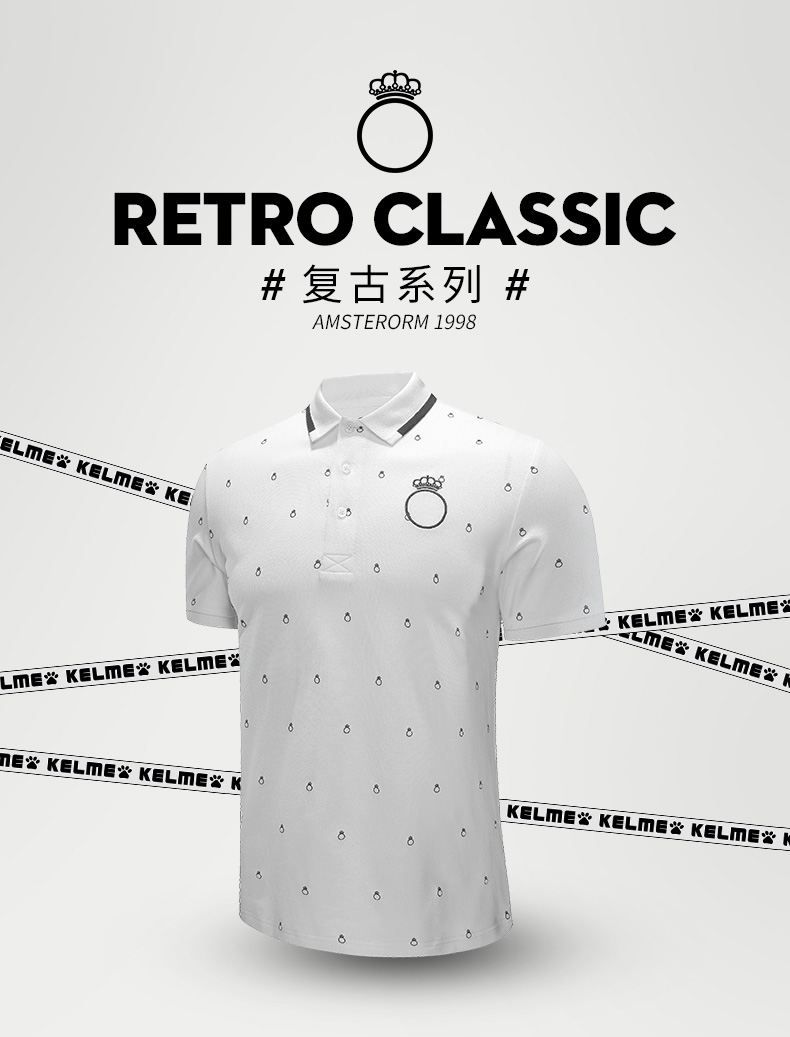 Kelme 卡尔美休闲棉质夏季新款男士短袖POLO衫复古刺绣翻领短T恤