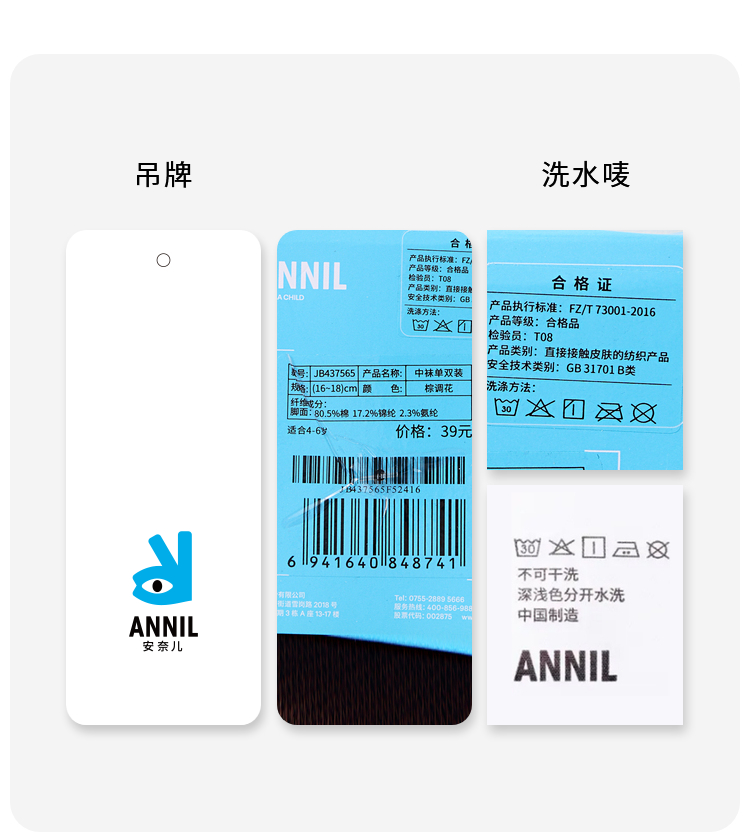 【5A级抗菌】男童潮趣迷彩中袜单双装袜子安奈儿童装实体店同款JB437565