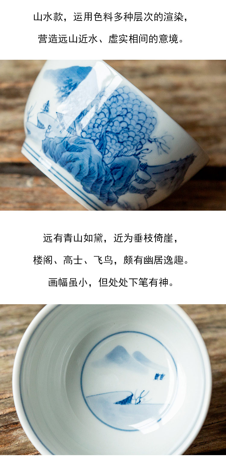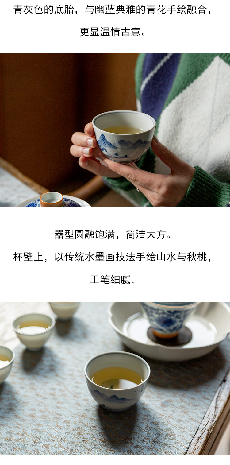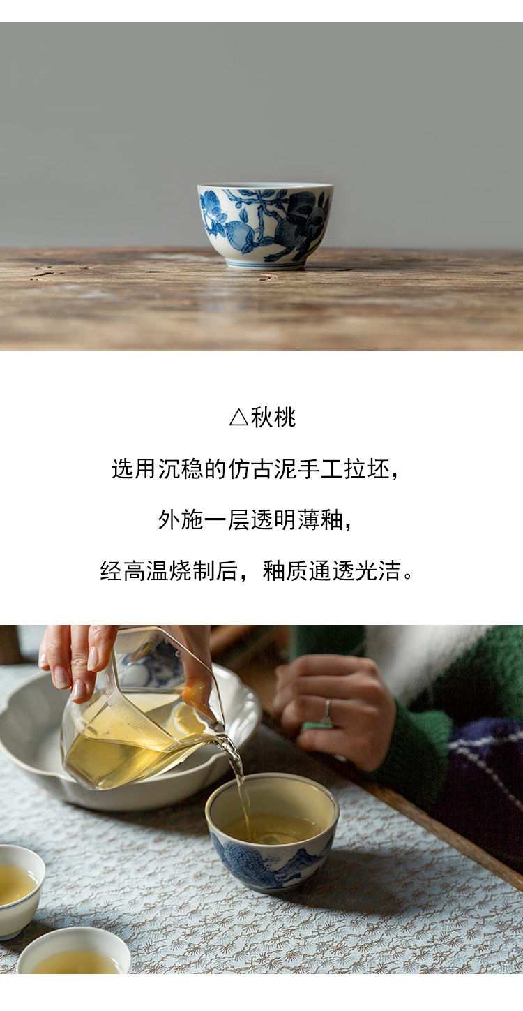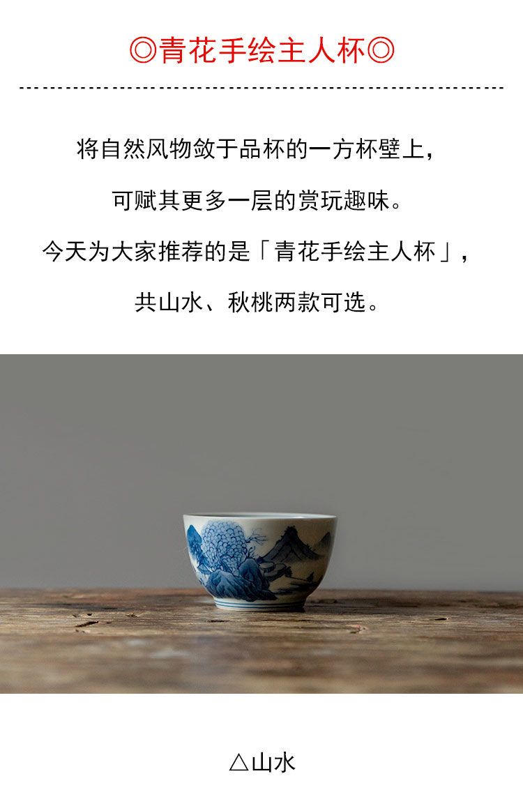 茶香记 壹物堂青花手绘主人杯秋桃山水110ml典雅古韵精湛手绘品杯