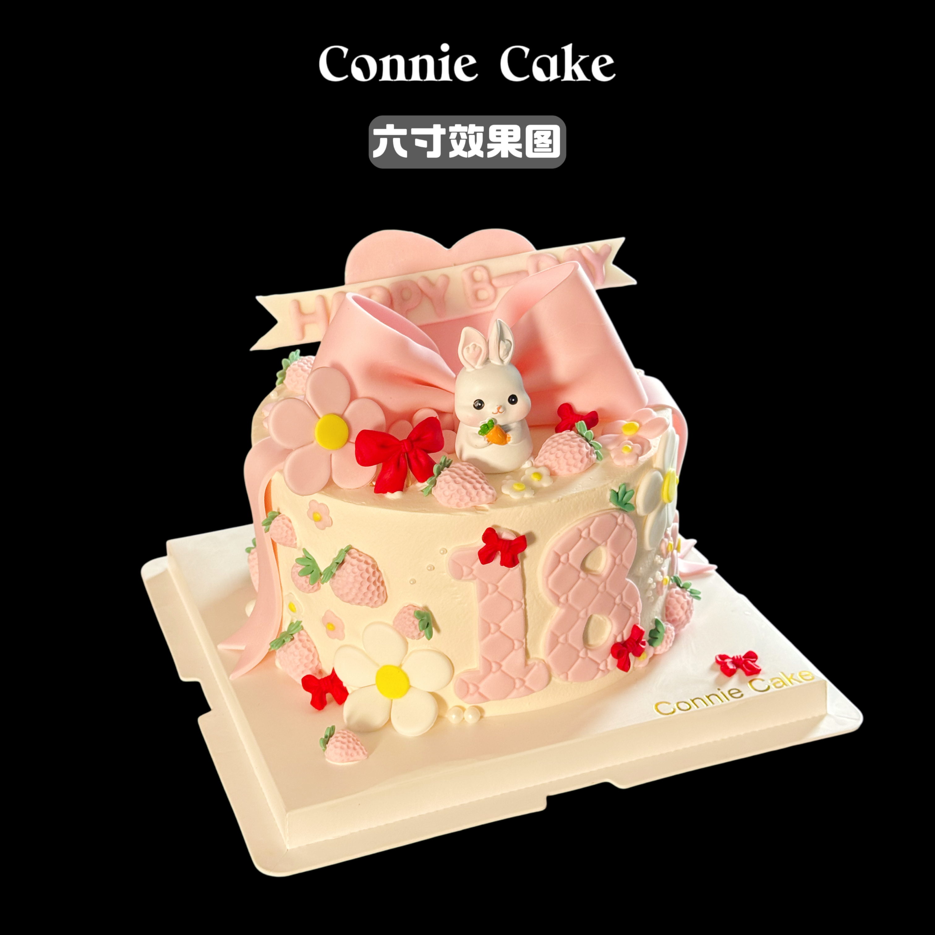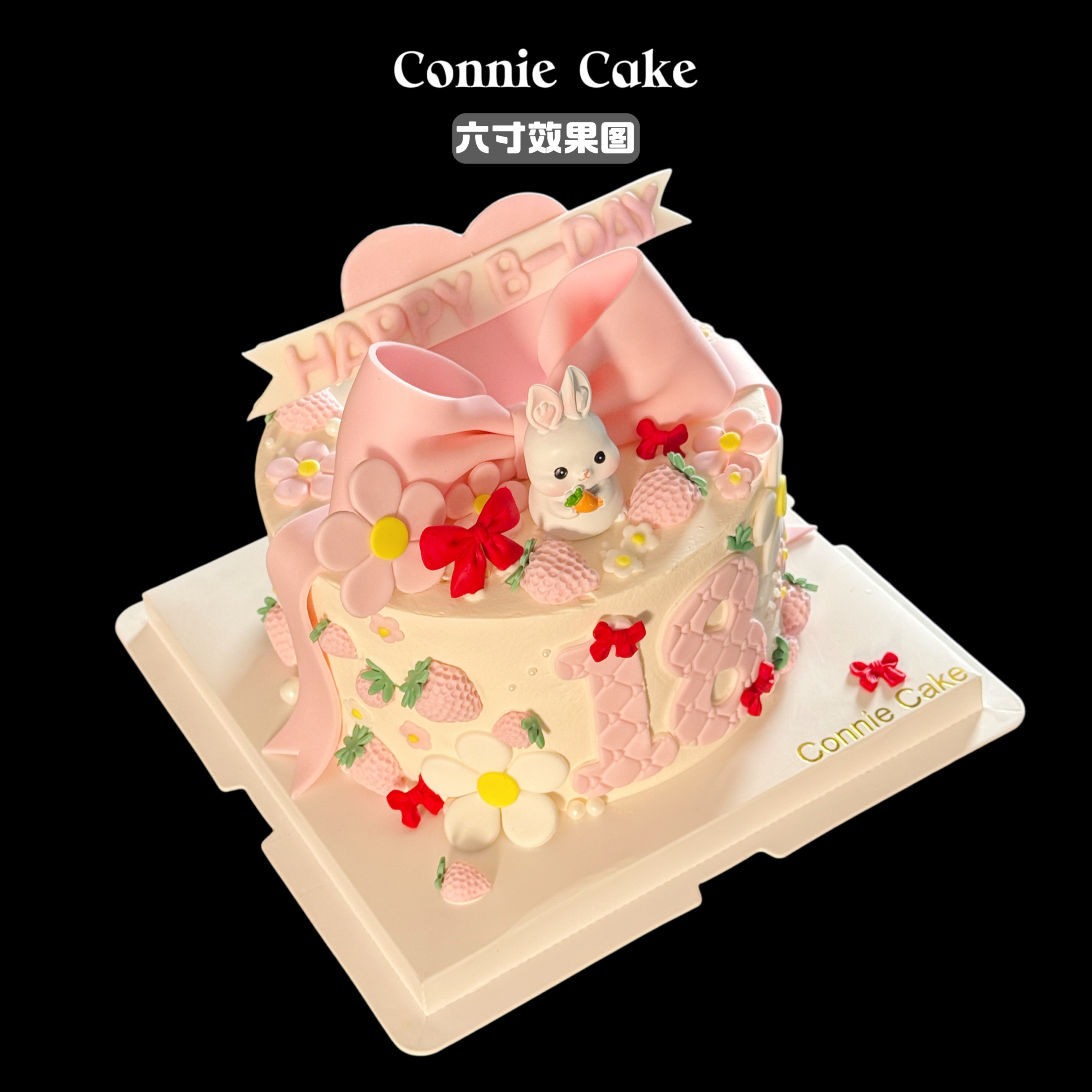 一眼沦陷!【小兔子翻糖蝴蝶结草莓蛋糕】