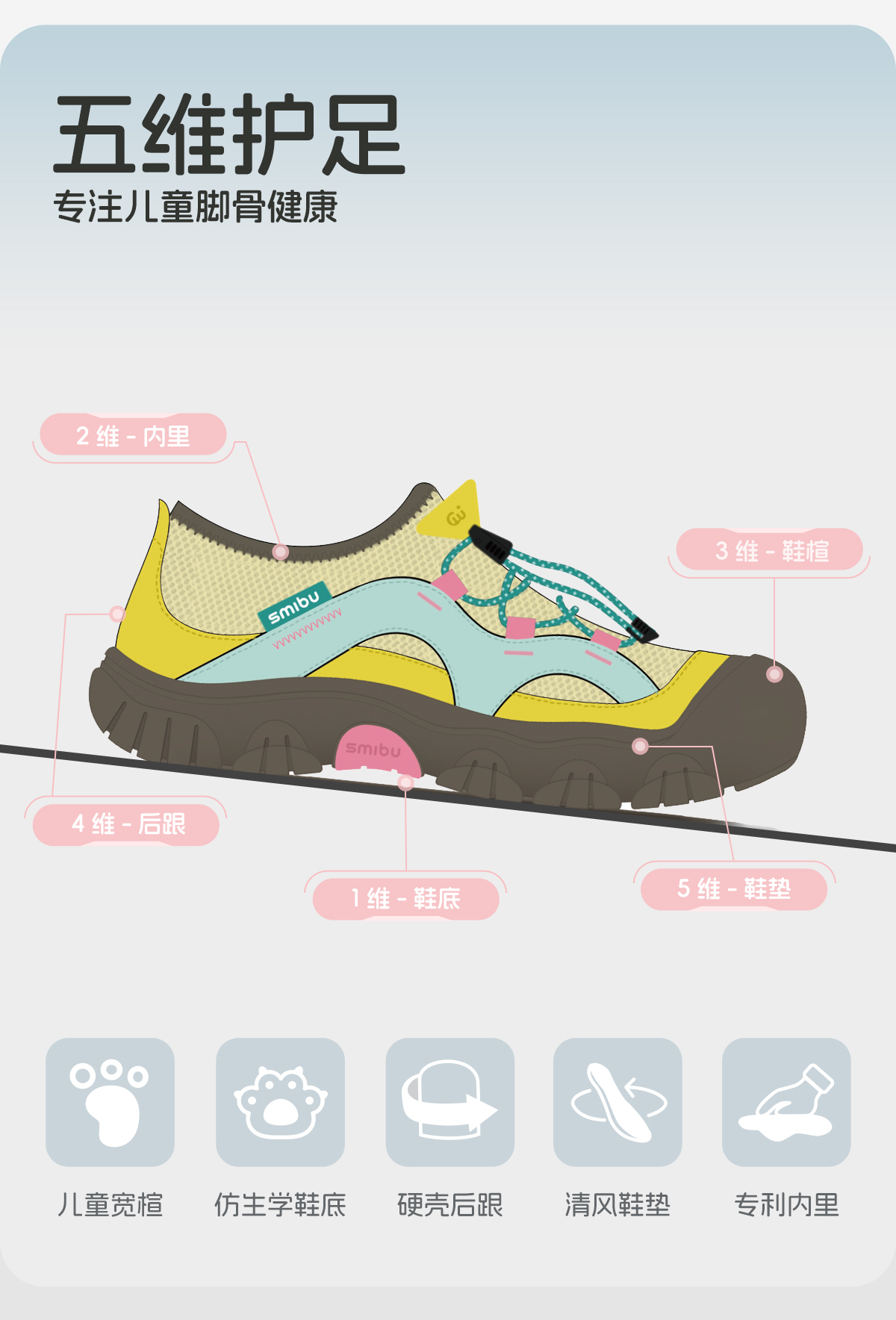 【猫爪徒步系列】SMIBU男女中大童夏款舒适运动户外鞋登山徒步鞋Z52FY3403【CC爸妈团购】