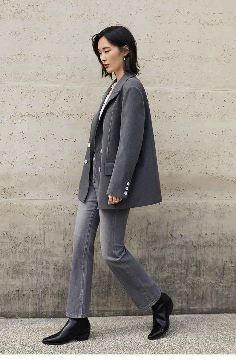 灰色魅力!这款微喇牛仔裤,打造干练又时髦的职场造型