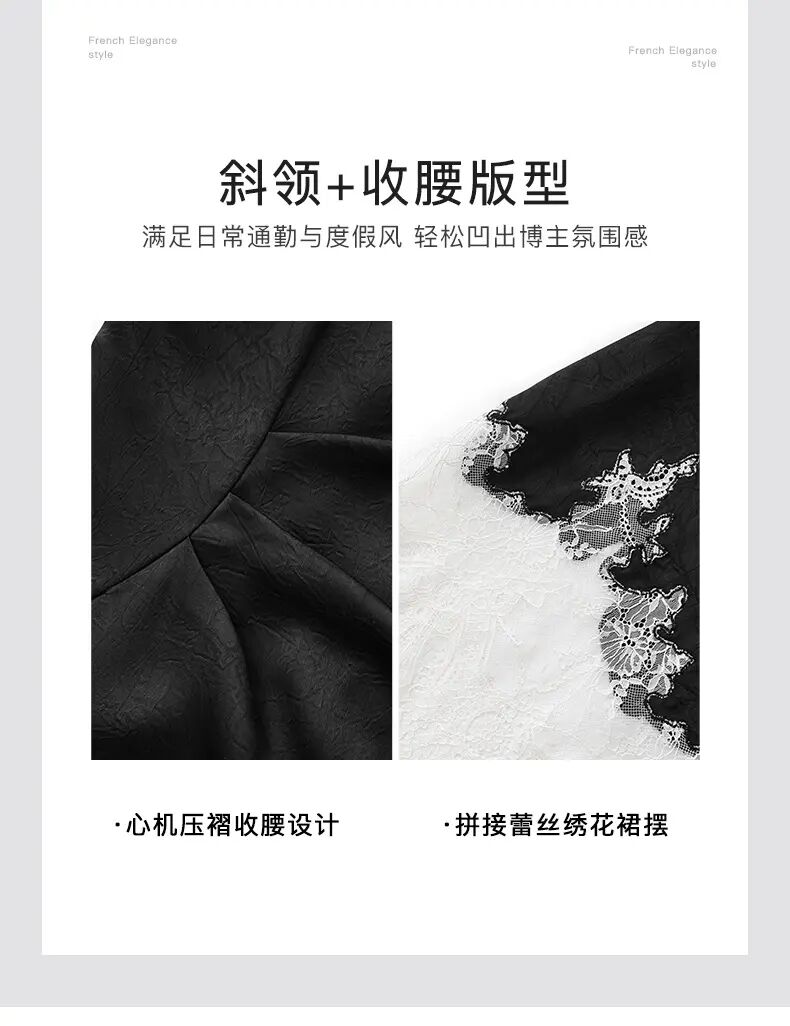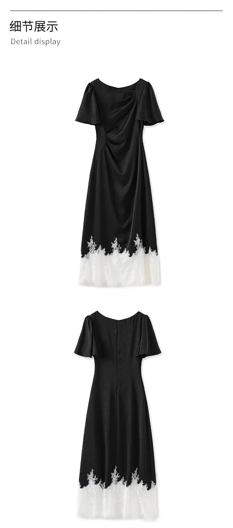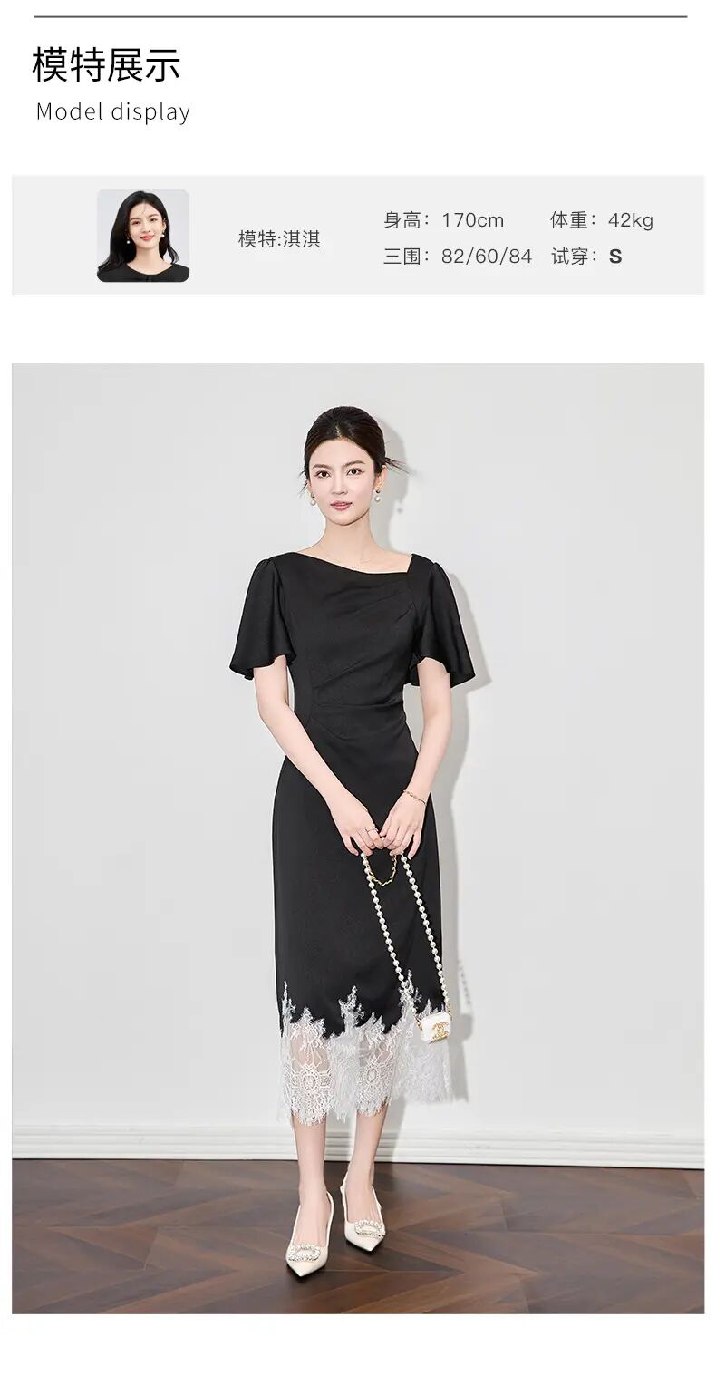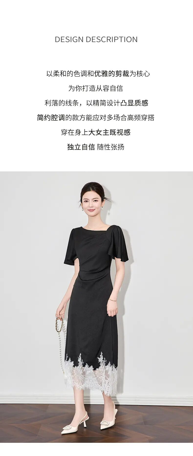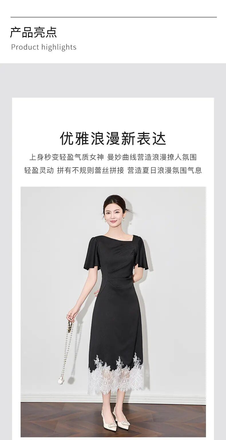 【高货wl】全新升级【铂金会员330/天猫449/差价119】(15846) 洛诗琳高品质轻盈垂感醋酸缎提花睫毛蕾丝优雅短袖连衣裙