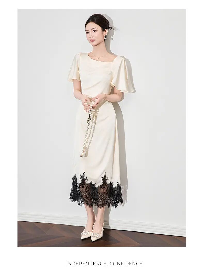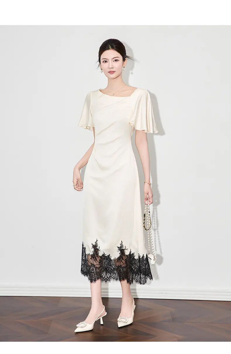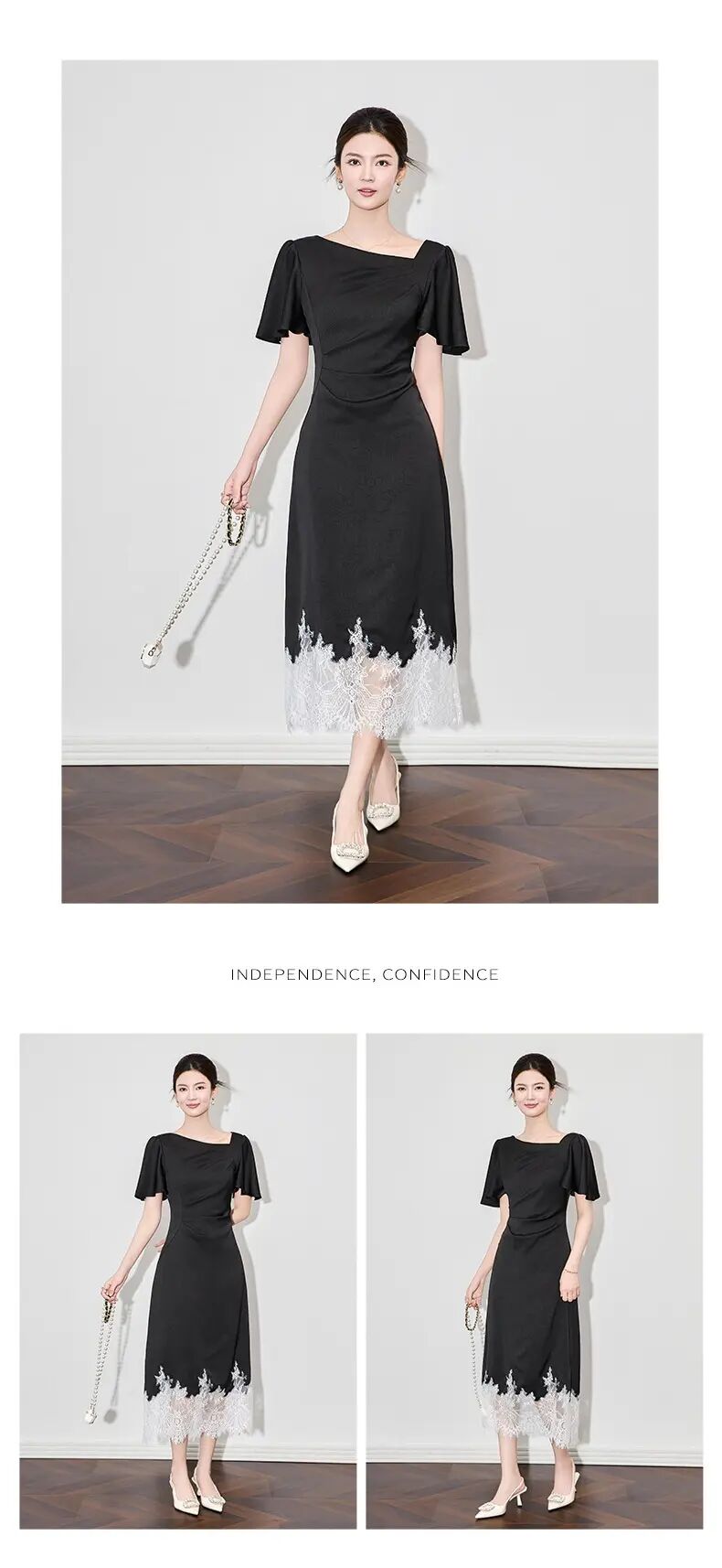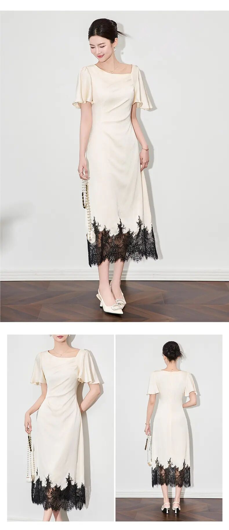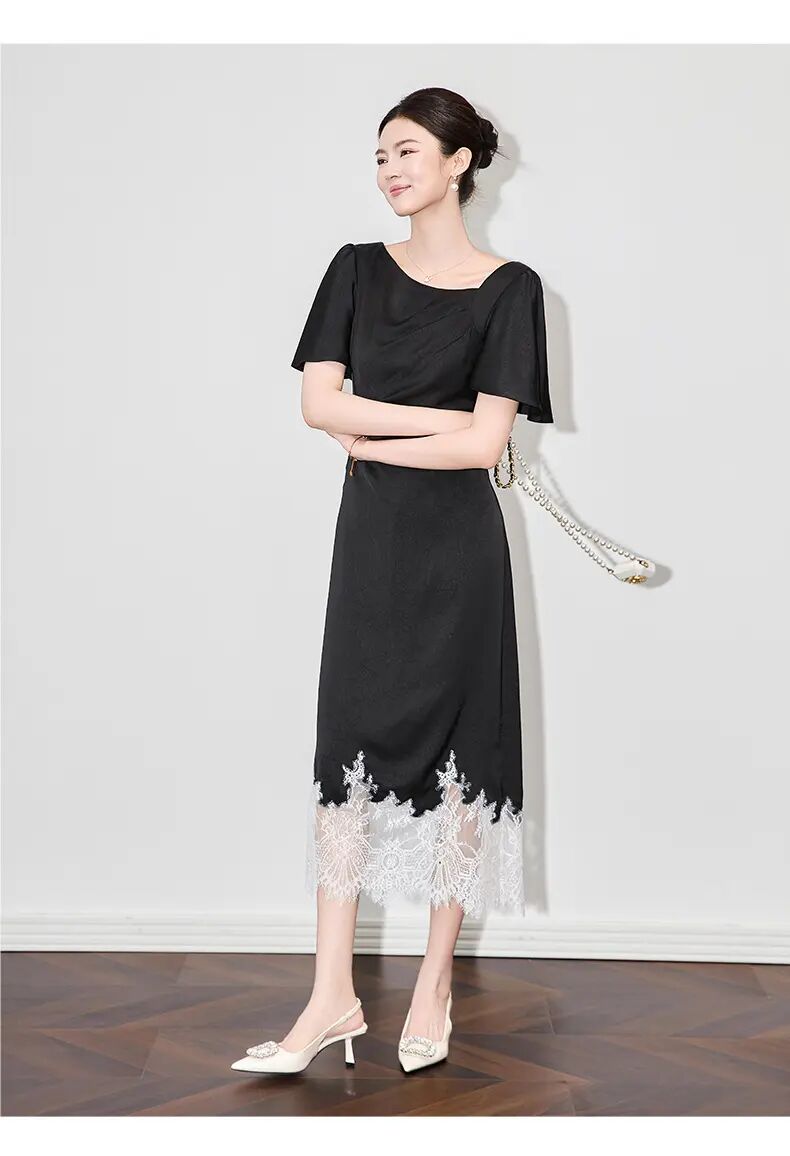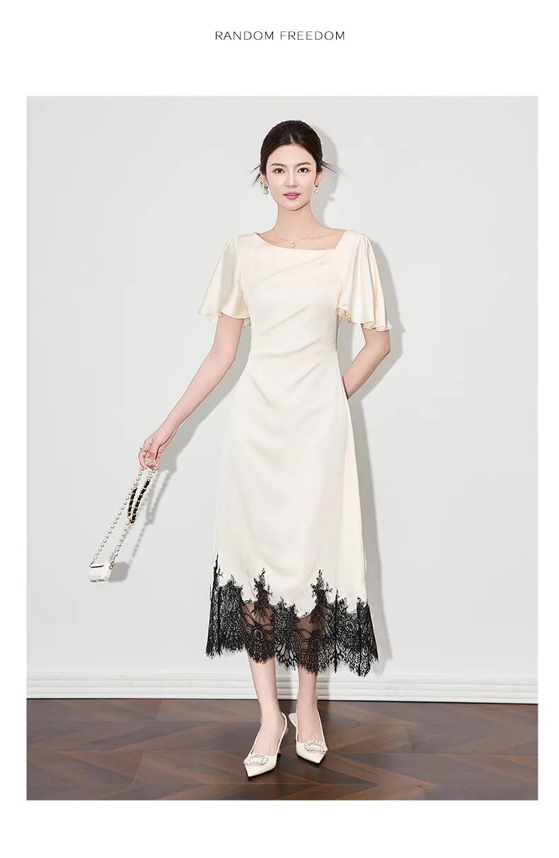【高货wl】全新升级【铂金会员330/天猫449/差价119】(15846) 洛诗琳高品质轻盈垂感醋酸缎提花睫毛蕾丝优雅短袖连衣裙