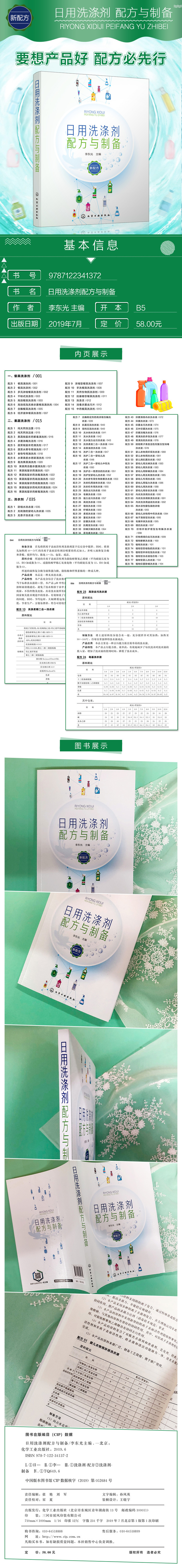 为了满足读者需要,我们在化学工业出版社的组织下编写了本书《日用洗涤剂配方与制备》,书中收集了220种环保、新颖的配方与工艺,旨在为读者提供实用的、可操作的实例,方便读者参考。