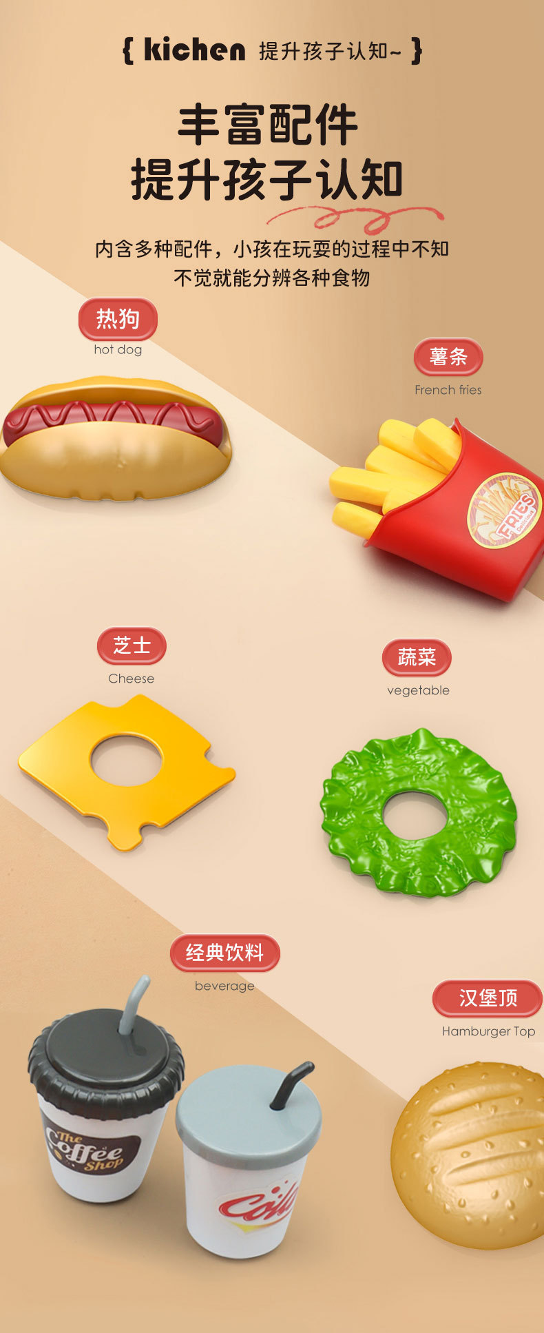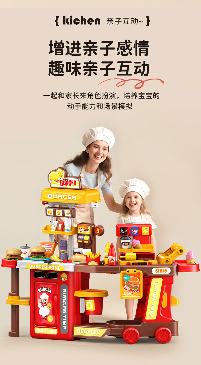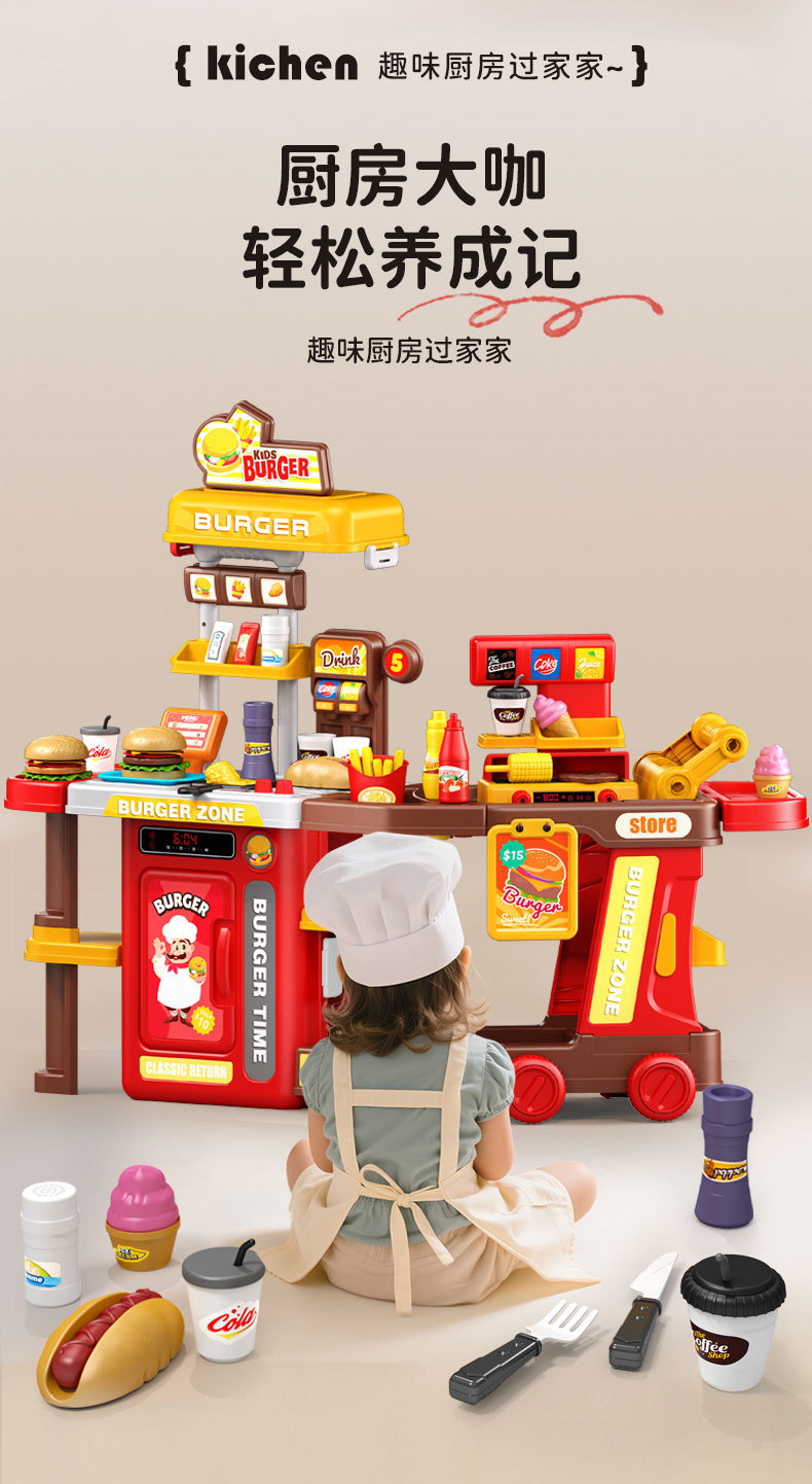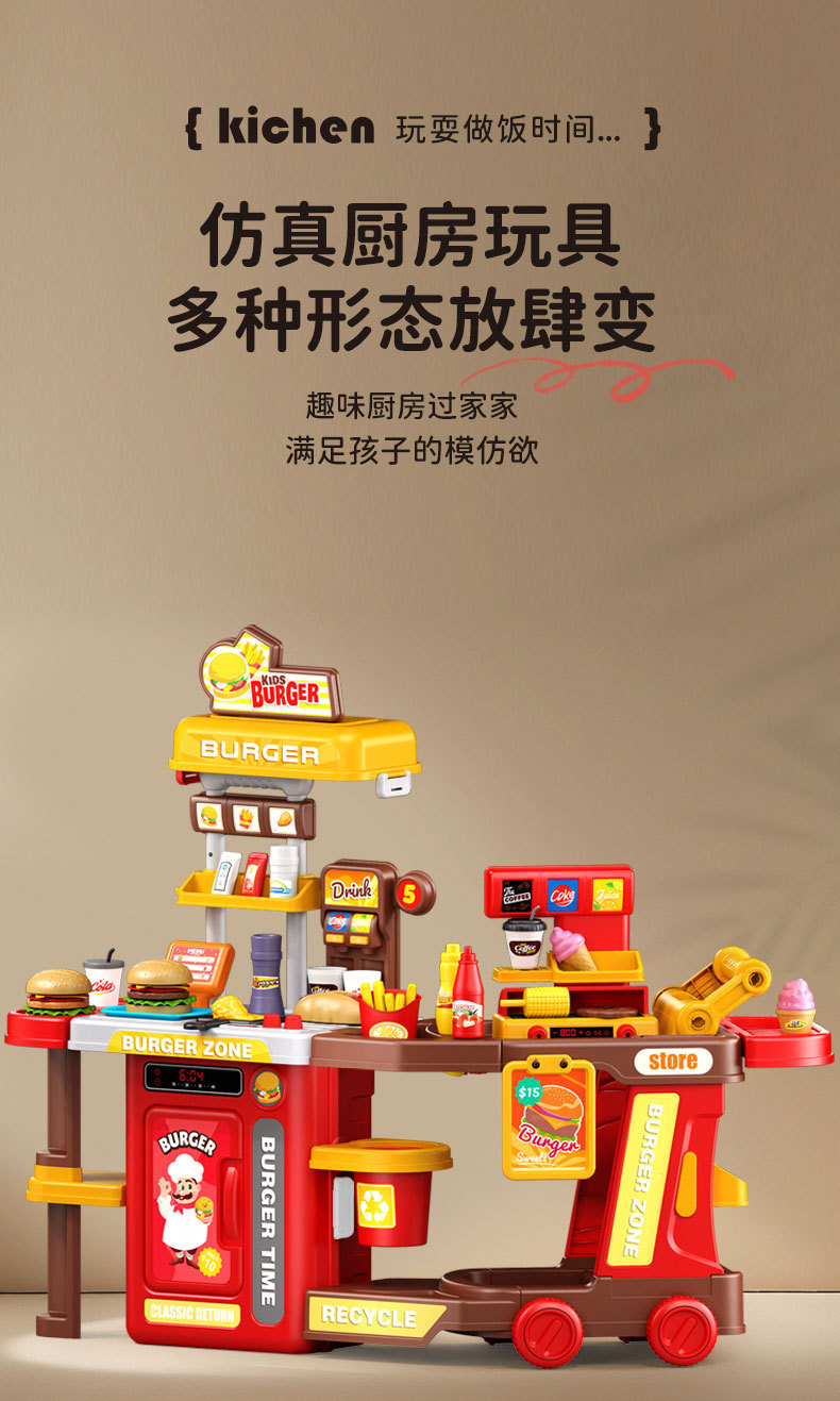 【趣味厨房过家家,满足孩子的模仿欲~】仿真水果蔬菜披萨 宝宝汉堡过家家 厨房套装益智礼物 儿童推车玩具-QQ