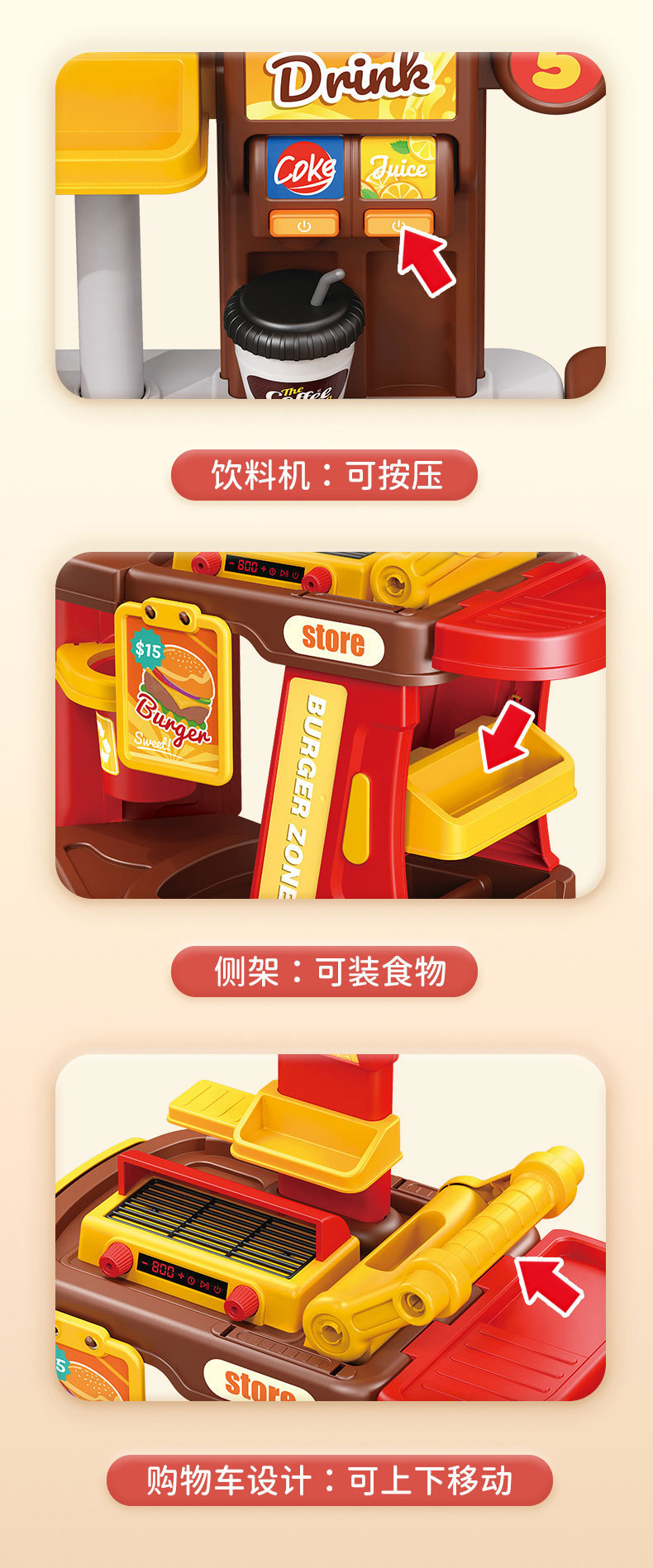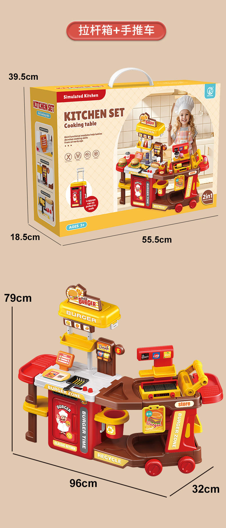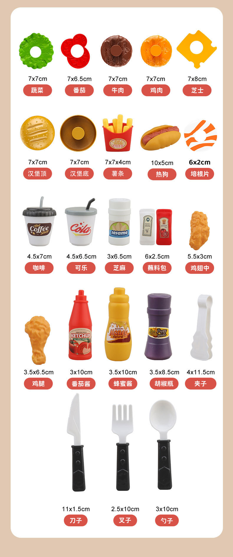 【趣味厨房过家家,满足孩子的模仿欲~】仿真水果蔬菜披萨 宝宝汉堡过家家 厨房套装益智礼物 儿童推车玩具-QQ