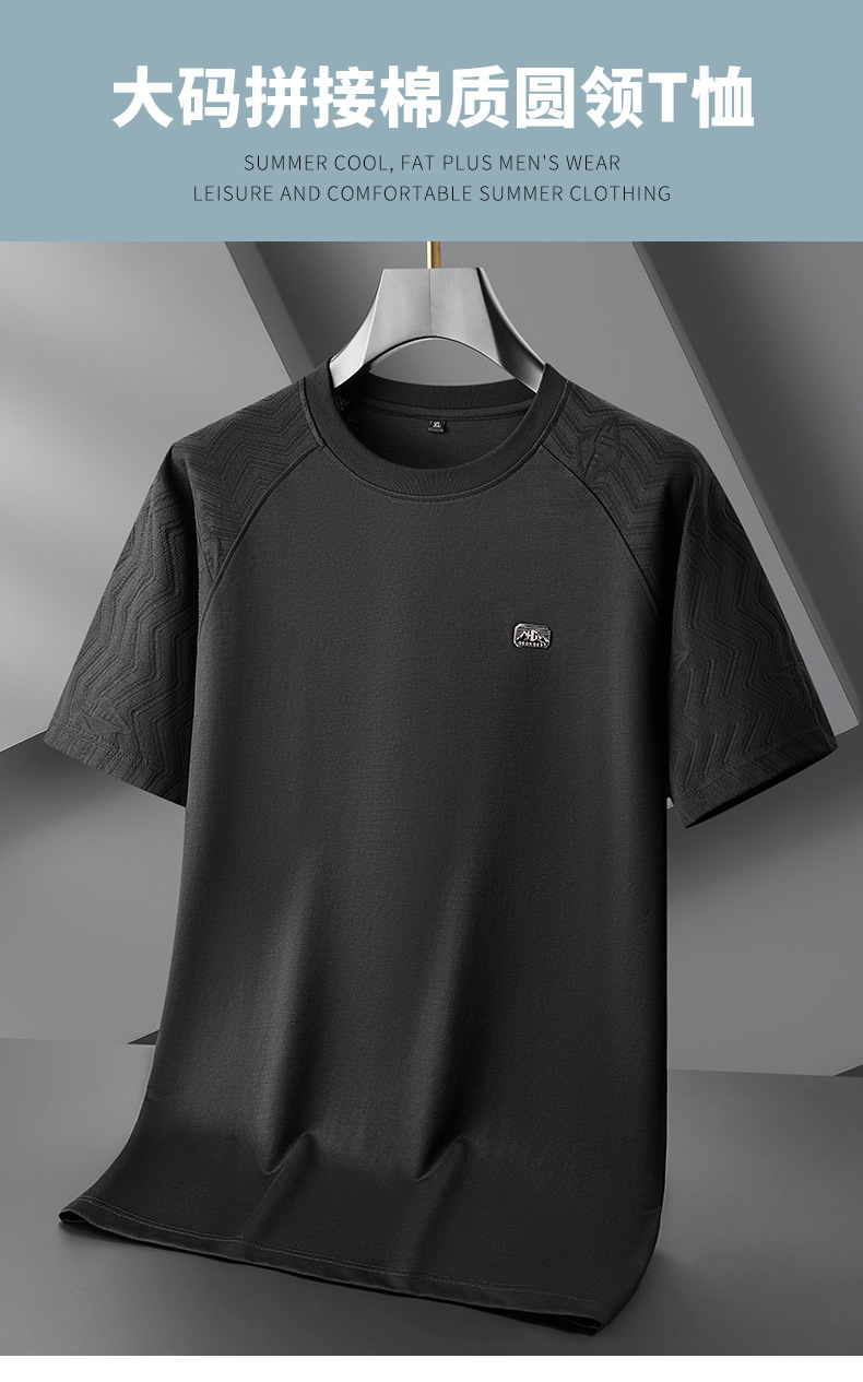 【DPF】大依优型大码短袖T恤潮流拼接棉质汗衫加肥大码男士夏季薄款半袖打底上衣