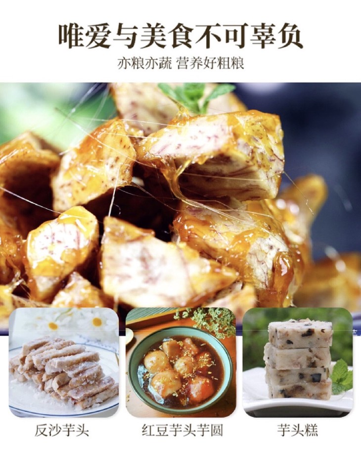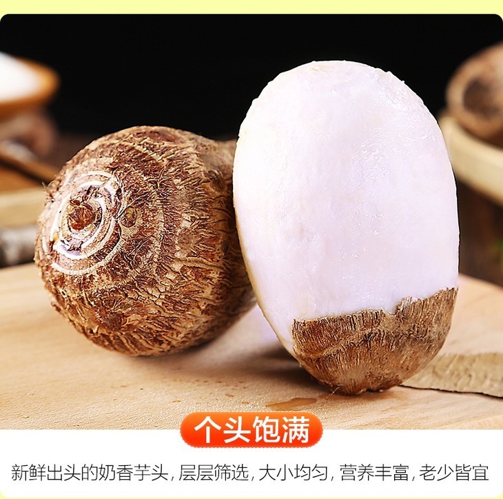 温馨提示:芋头因为产品自身特性分为芋母和芋子,芋母食用起来口感可能会稍微硬一点,介意者慎拍。