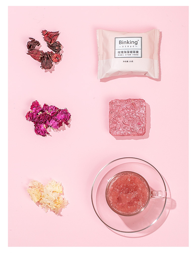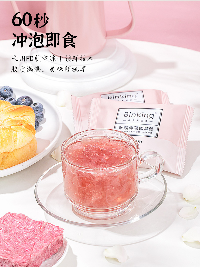 【喝出嘭润美肌】BinKing玫瑰海藻银耳羹 养颜玫瑰 深海海藻 高山银耳 妆食同源 低卡低糖 冻干免煮 冲泡即食 90g*6包/盒.01