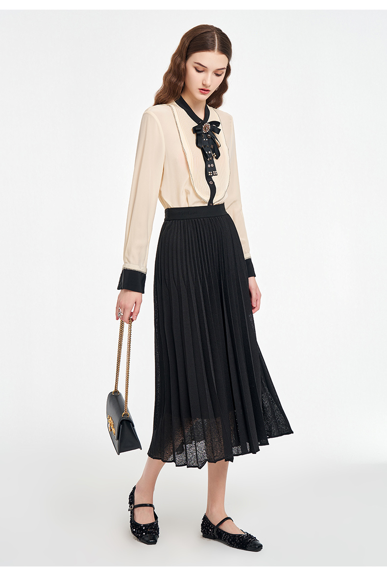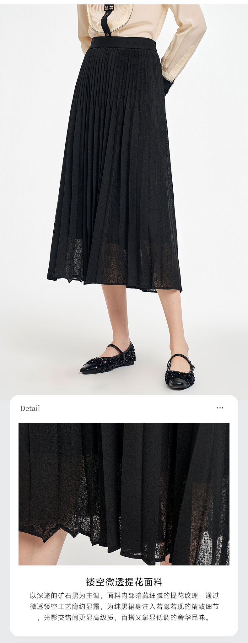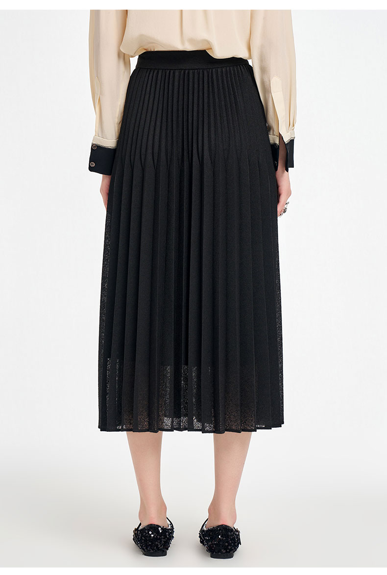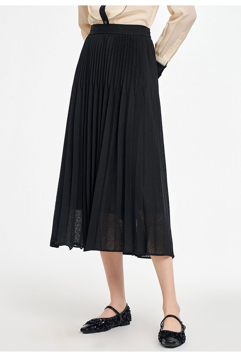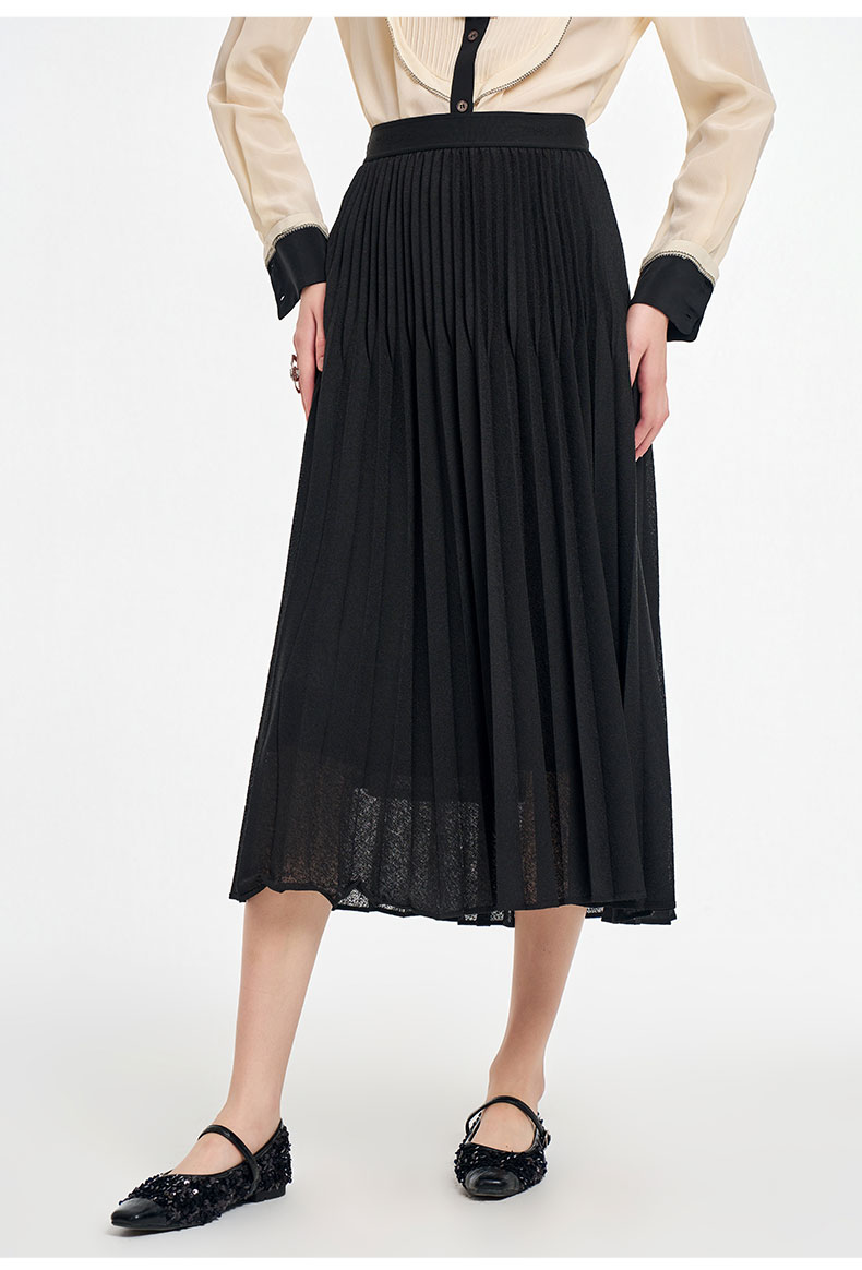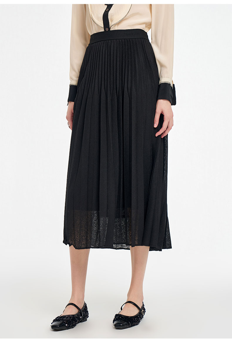 乔万尼2025秋新品镂空提花A字百褶半身裙ED3D302