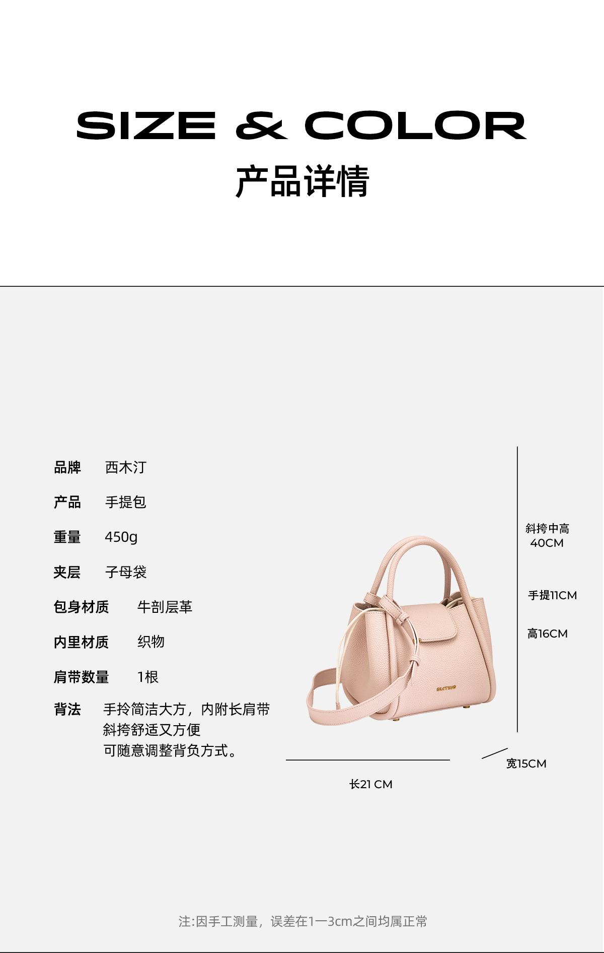 西木汀 少女灼华 牛皮手提菜篮子包女小众单肩斜挎包包