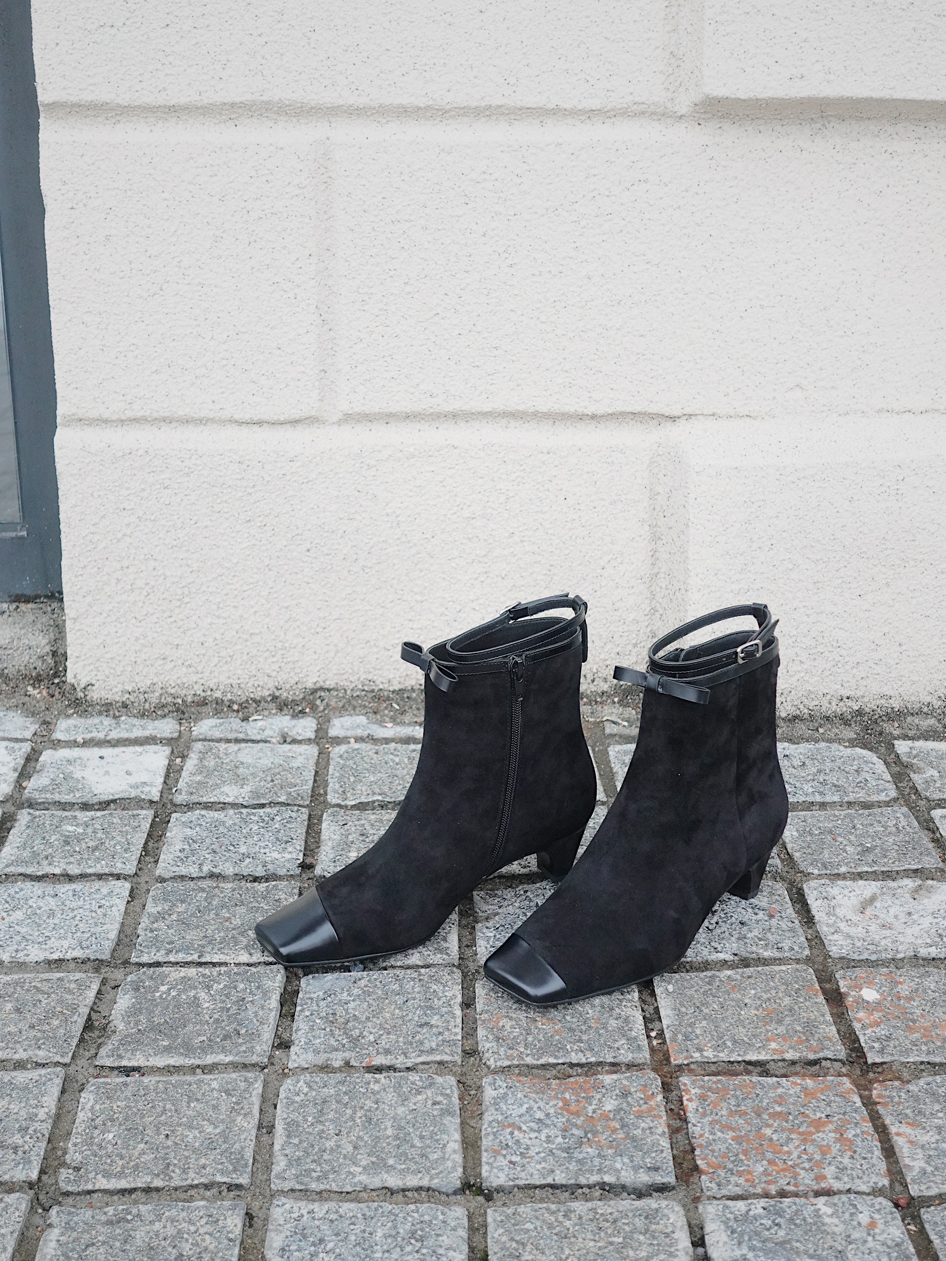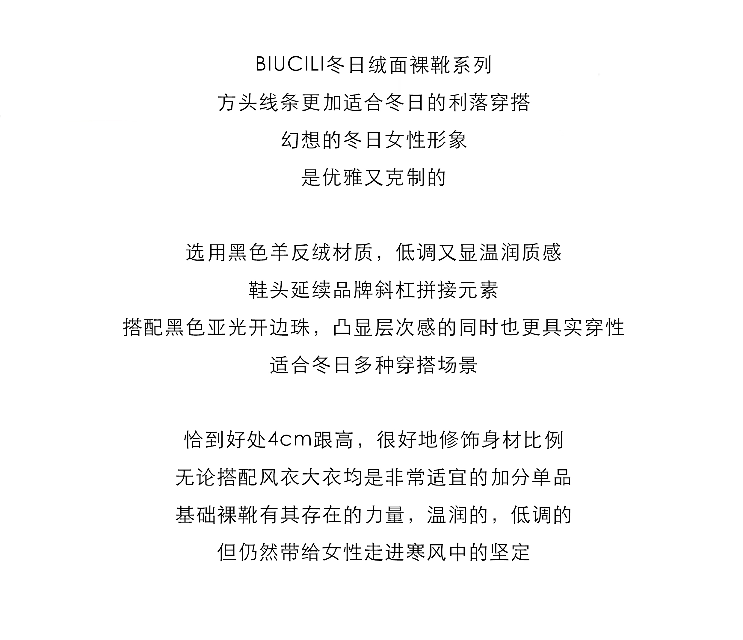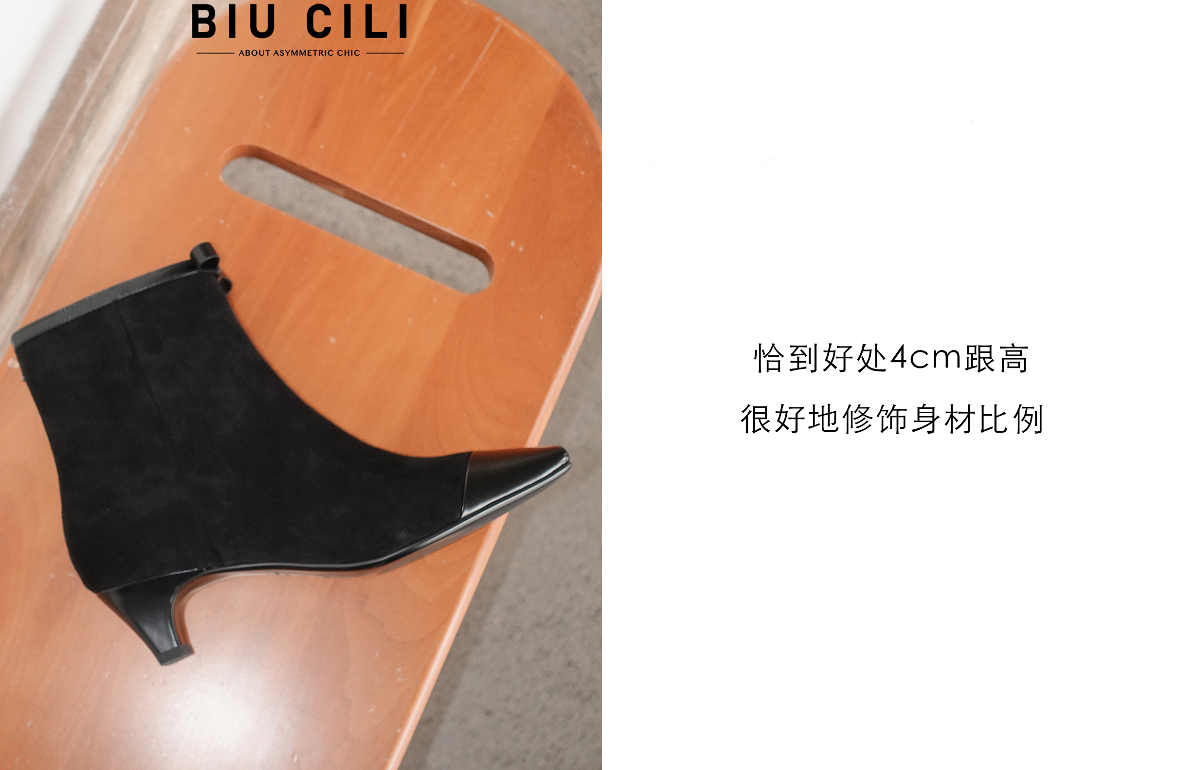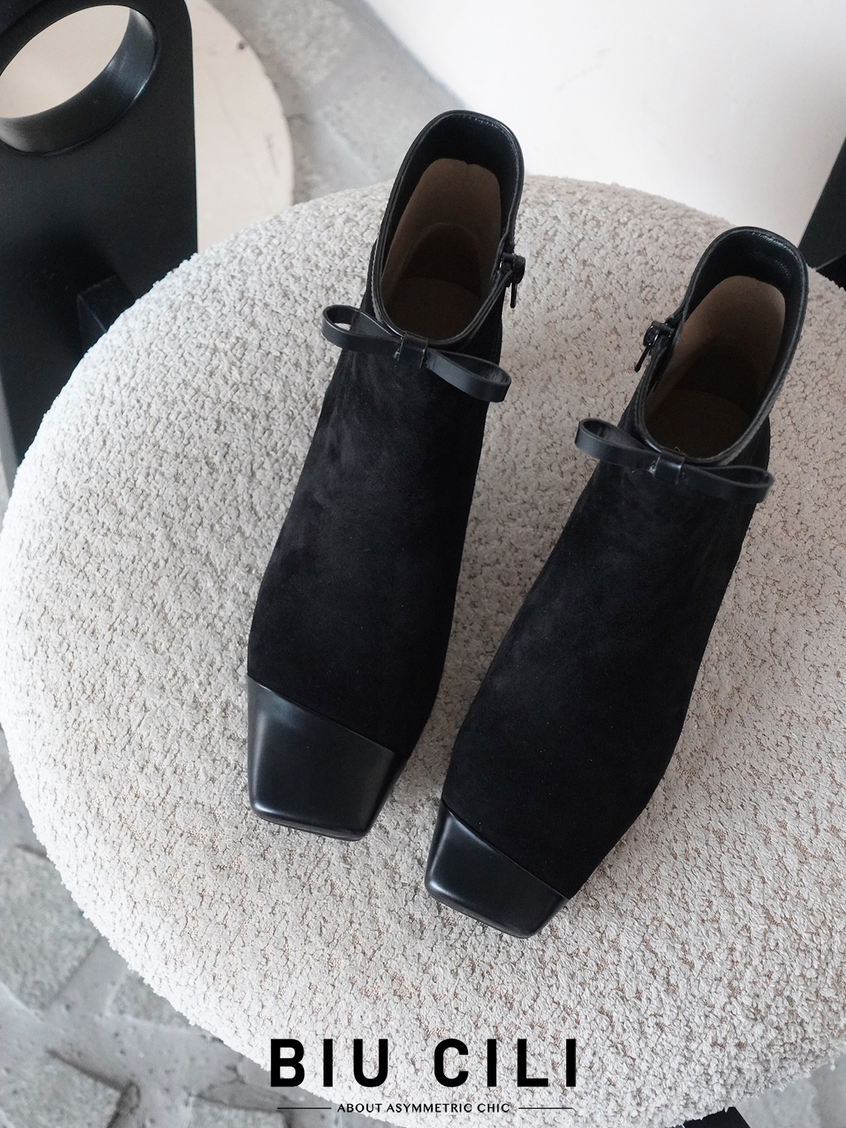 BIUCILI 「莫妮卡」原创设计蝴蝶结法式绒面方头中跟裸靴短靴