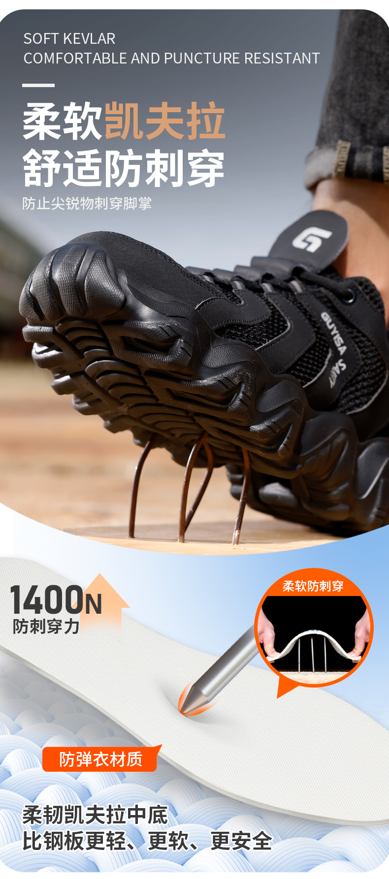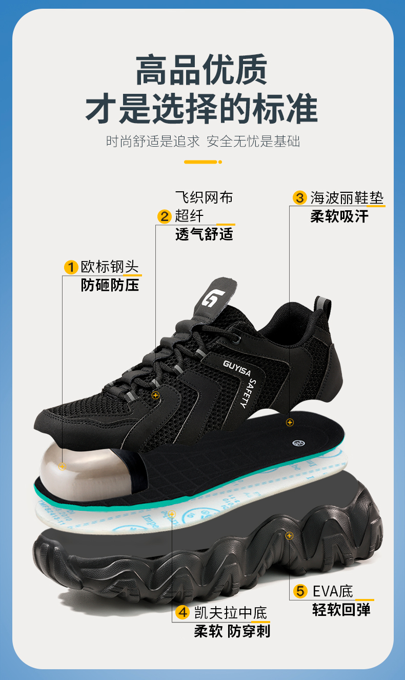 新品夏季透气轻便EVA大底劳保鞋男防砸防刺网布工地安全鞋