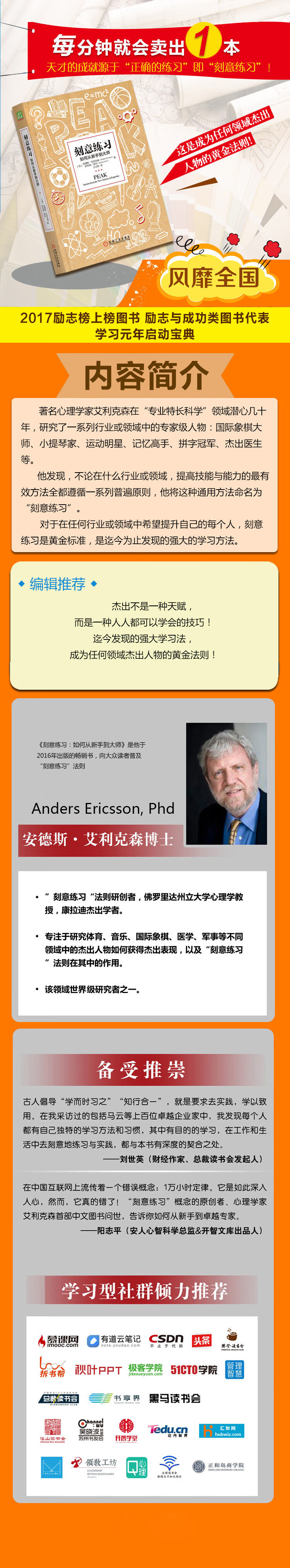 刻意训练针对的是每个有梦想的人,可以帮助每个想学习怎样画画、编程、变魔术、吹萨克斯管、写小说的人。它针对的是所有那些想掌控自己的人生、不甘心于现状的人们。