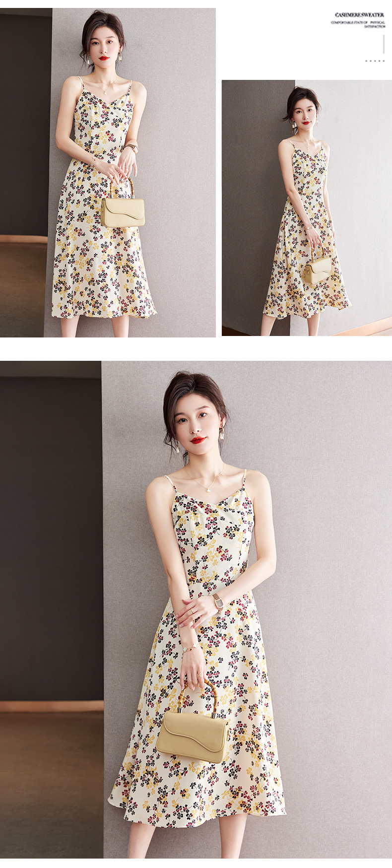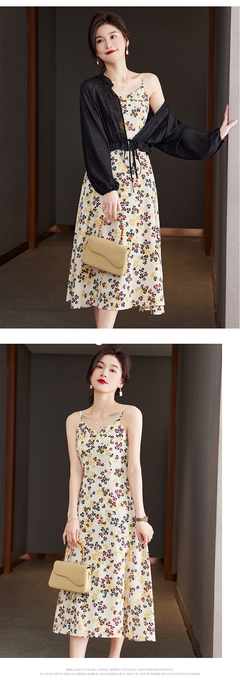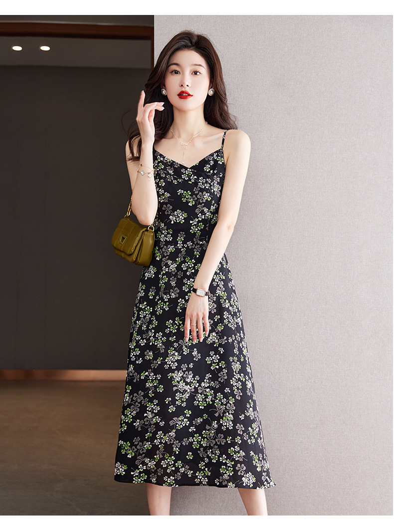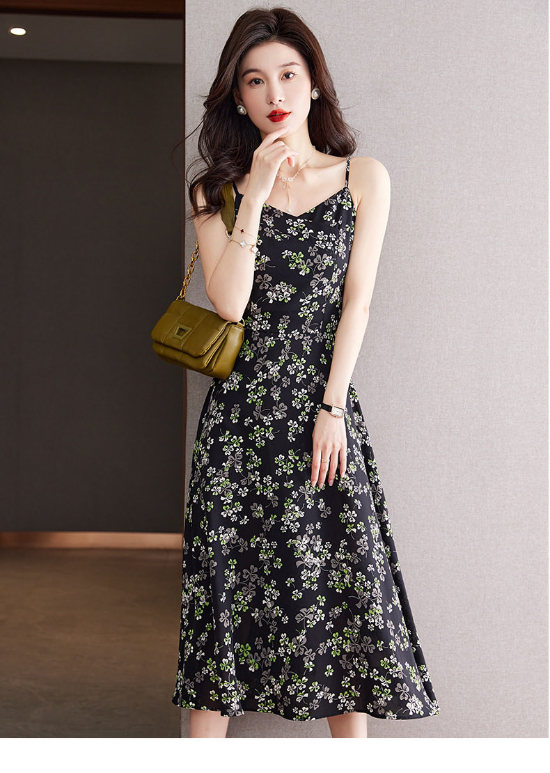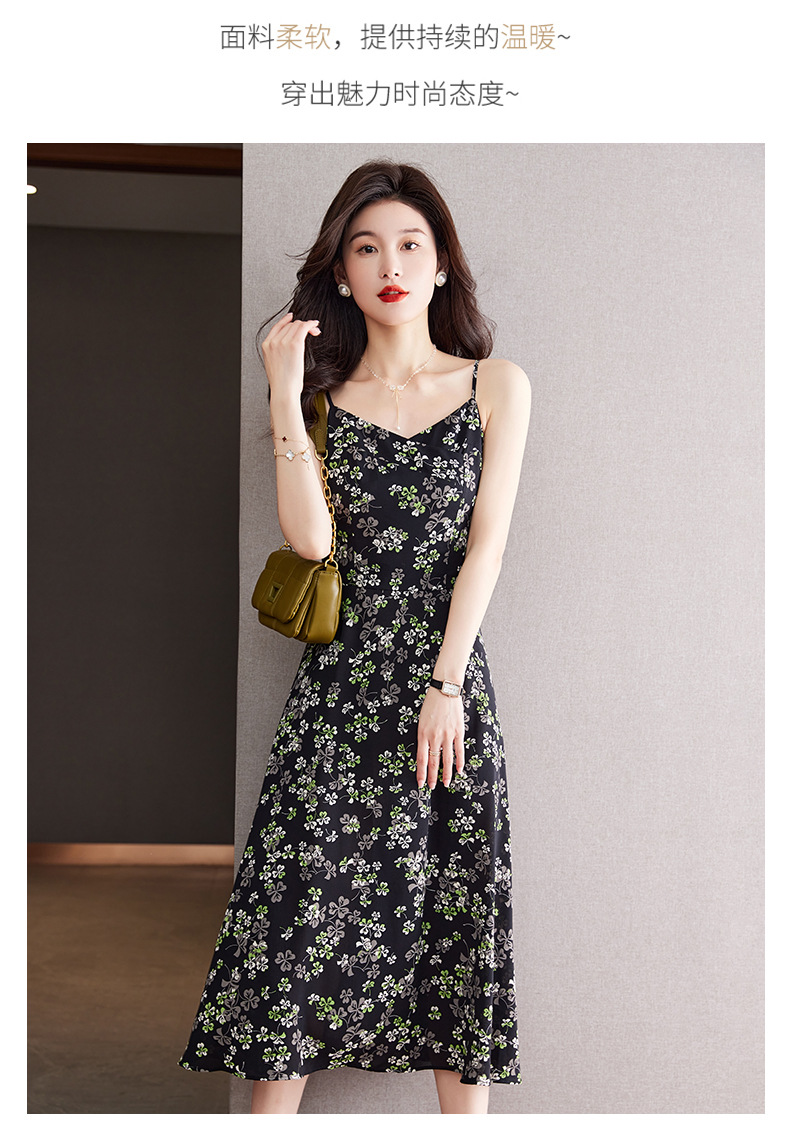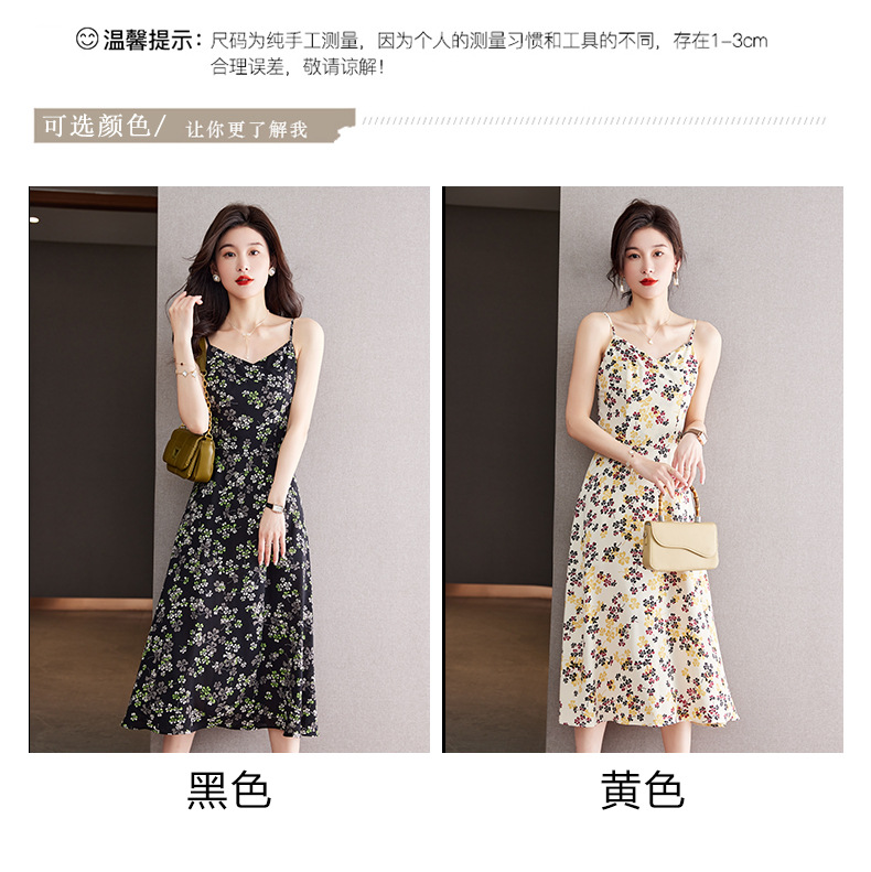 CCJ3400春夏碎花吊带连衣裙小个子气质宽松遮肉雪纺打底内搭长裙2024新款